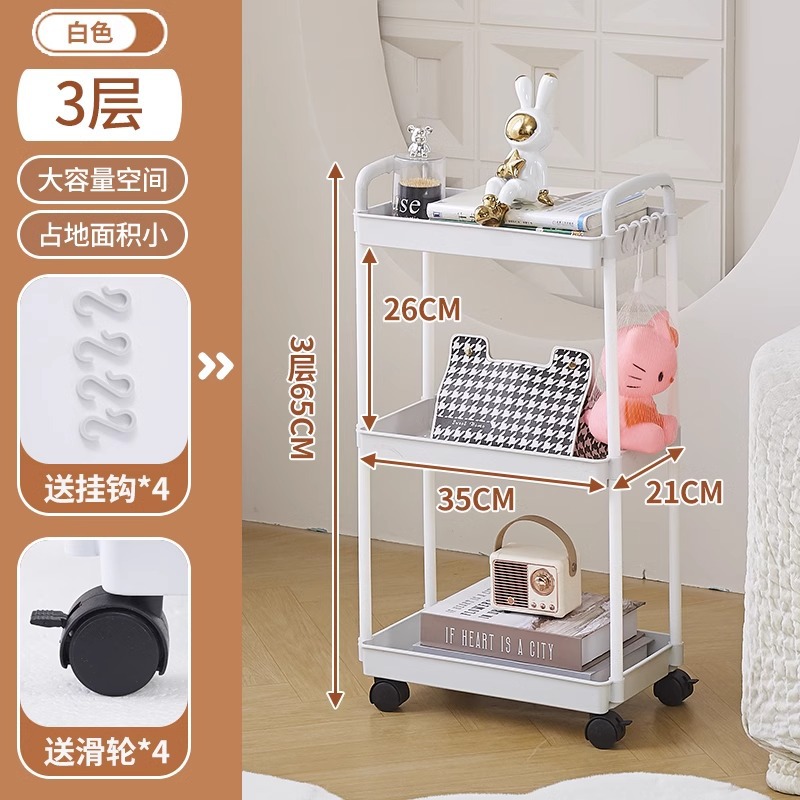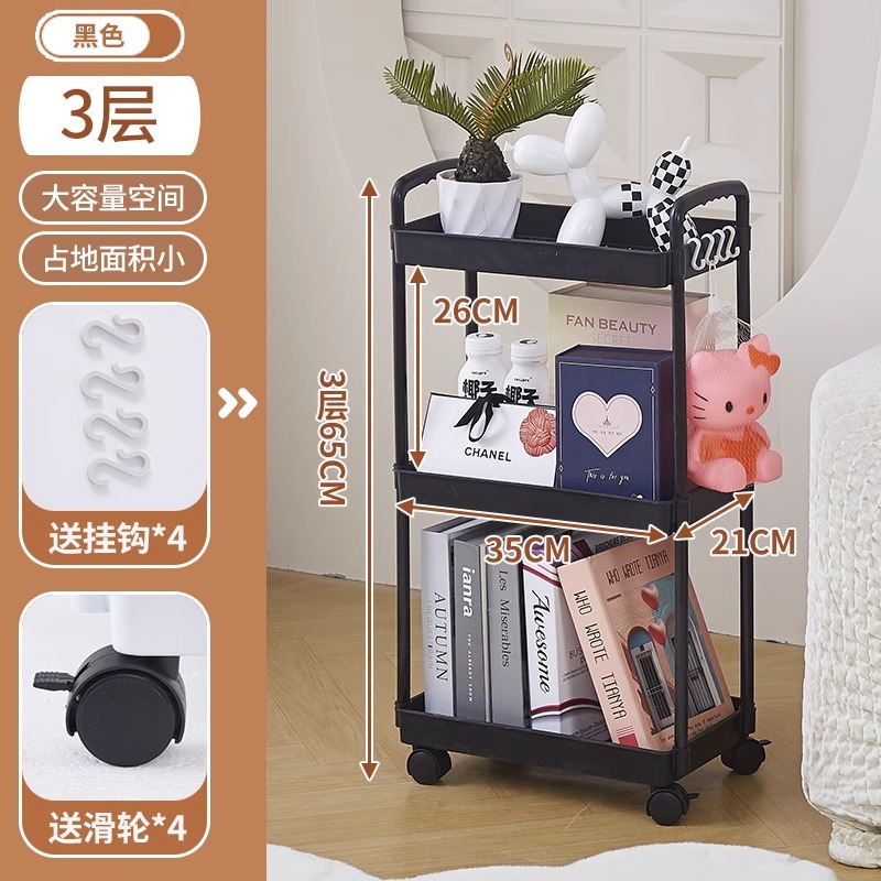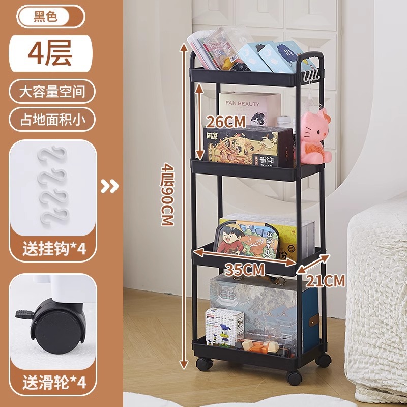 이동식 무타공 바닥 책장 어린이 장난감 수납 선반 가정용 간식 선반 간편한 소형 카트 수납 선반