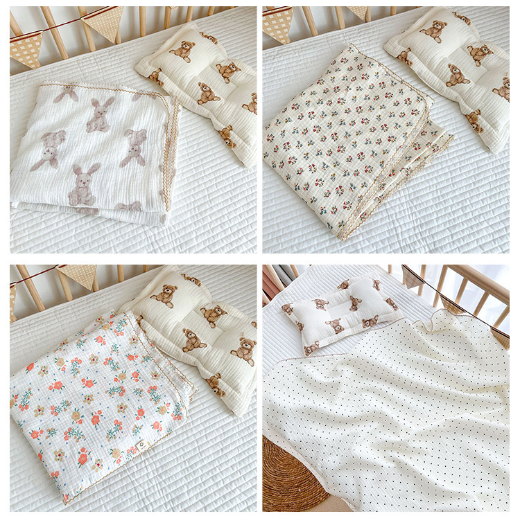 아기의 2 층 코튼 캔디 퀼트 여름 얇은 거즈 베이비 퀼트 부드러운 여름 에어컨 커버 담요 어린이 수건 이불
