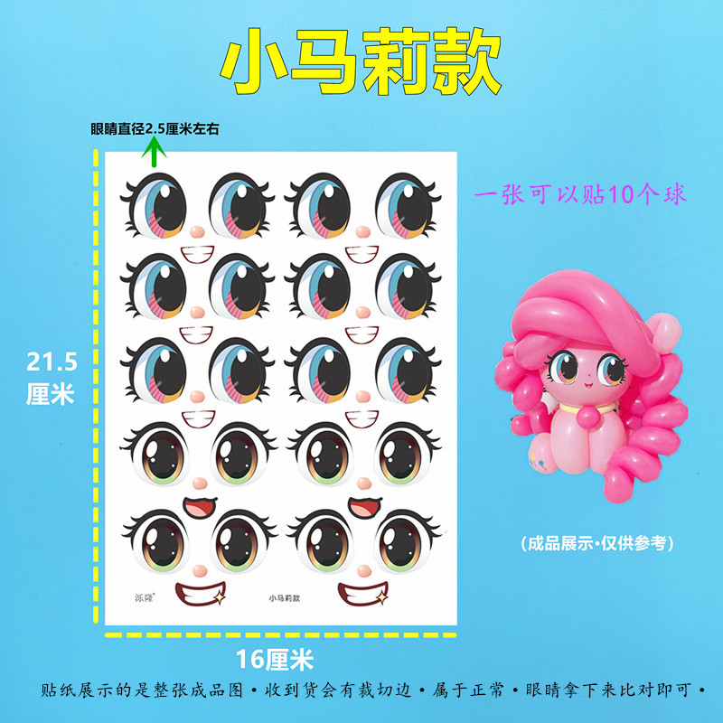 5-10寸气球波波球适合适用·不干胶材质·小号公主眼睛贴纸睫毛处较细·小心撕下·容易造成撕拉·介意慎拍·