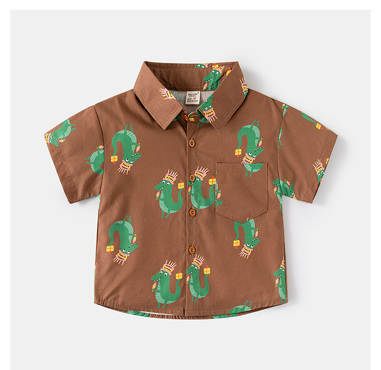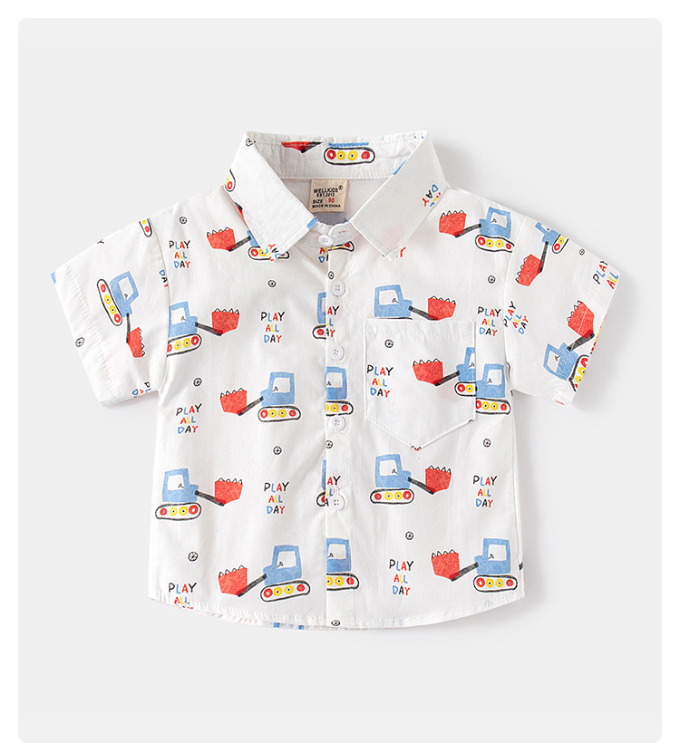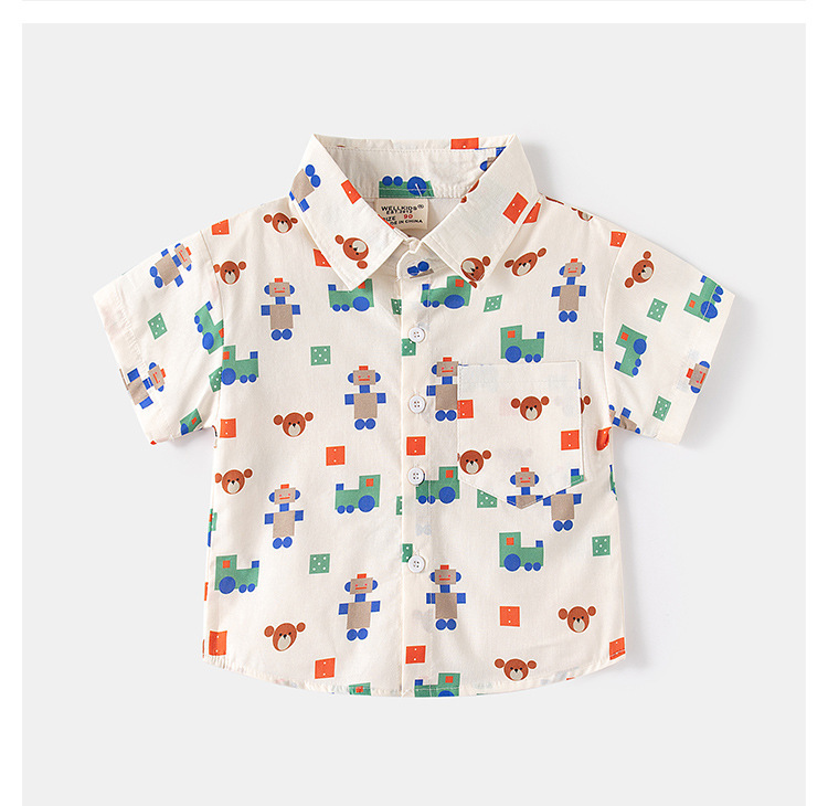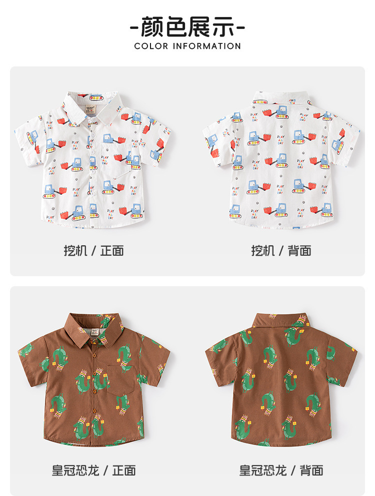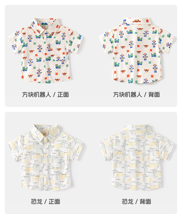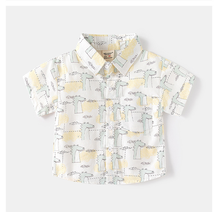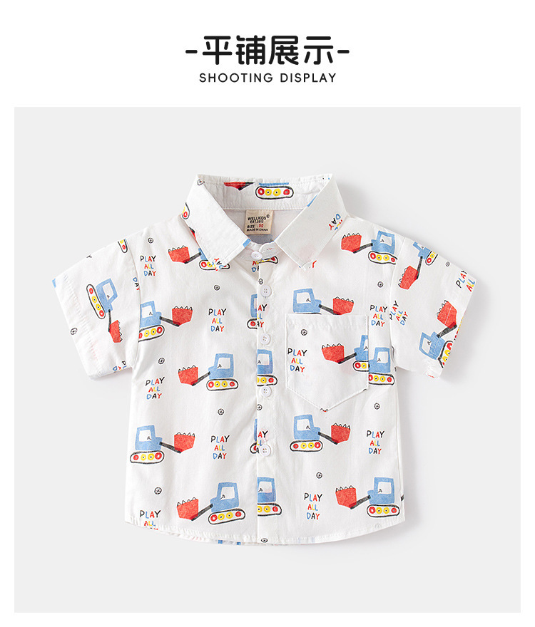 소스 제조 업체 공급 어린이 귀여운 셔츠 캐주얼 아동복 소년 아기 짧은 소매 만화 인쇄 옷깃 탑스토어 가기
