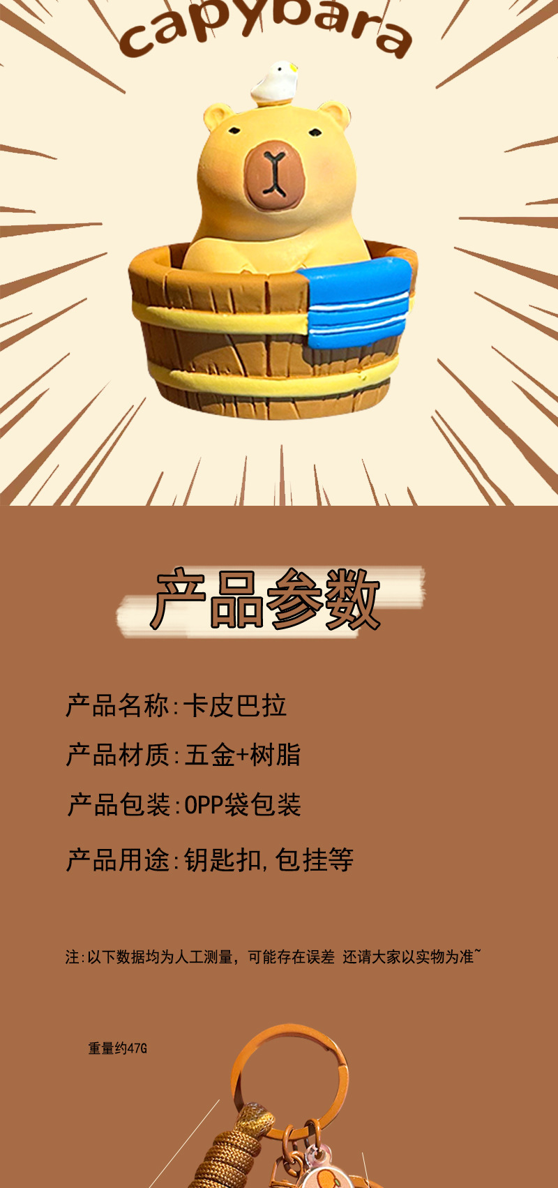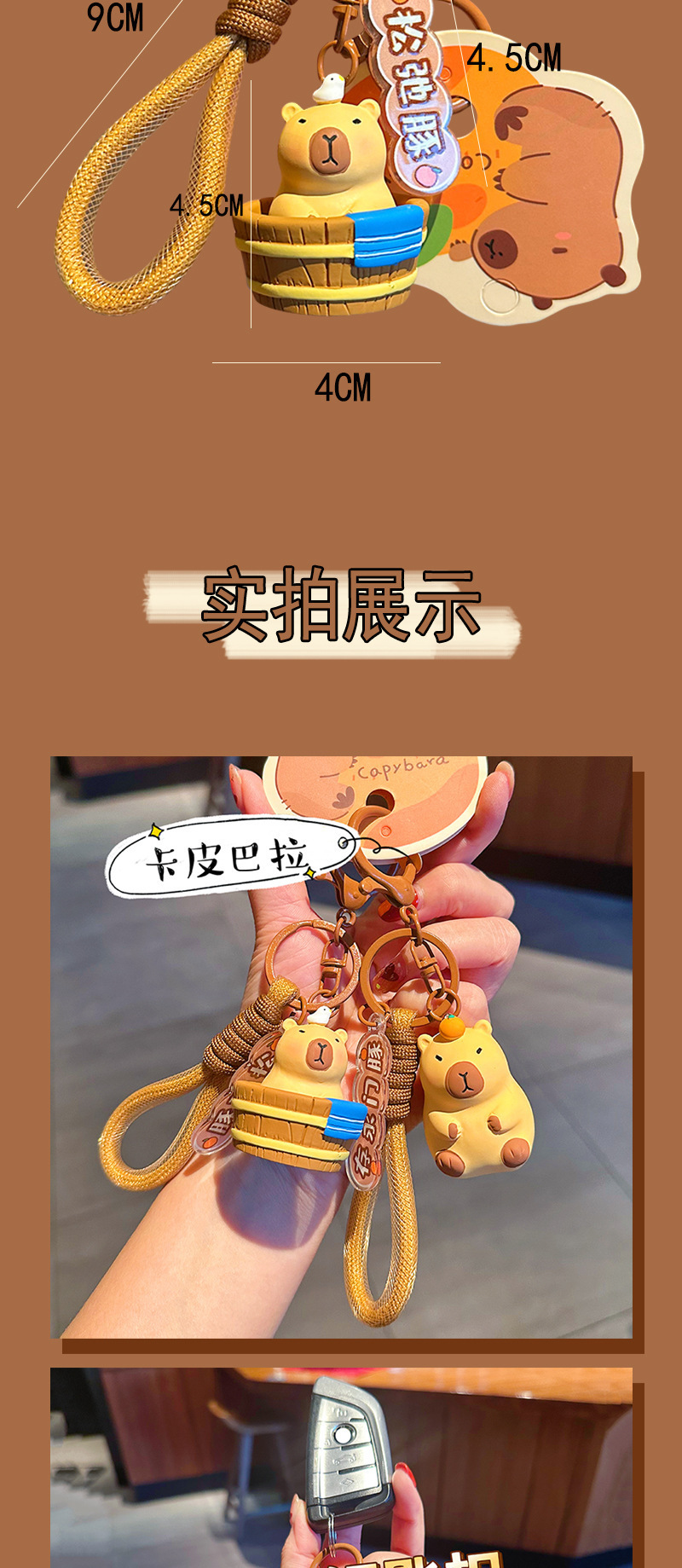 인터넷 레드 카피 발라 키 체인 귀여운 귀여운 작은 카피 바라 가방 교수형 장식품 여성 패션 자동차 키 체인 펜던트