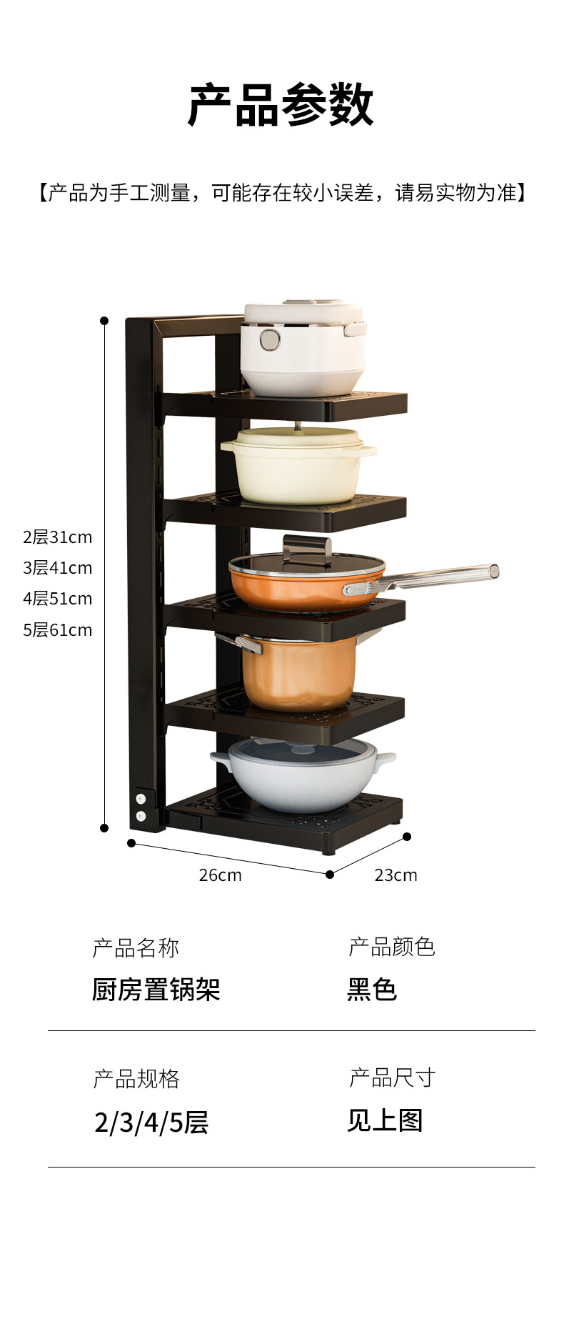 • 블랙 - 5단 [주방냄비/수납 1단]