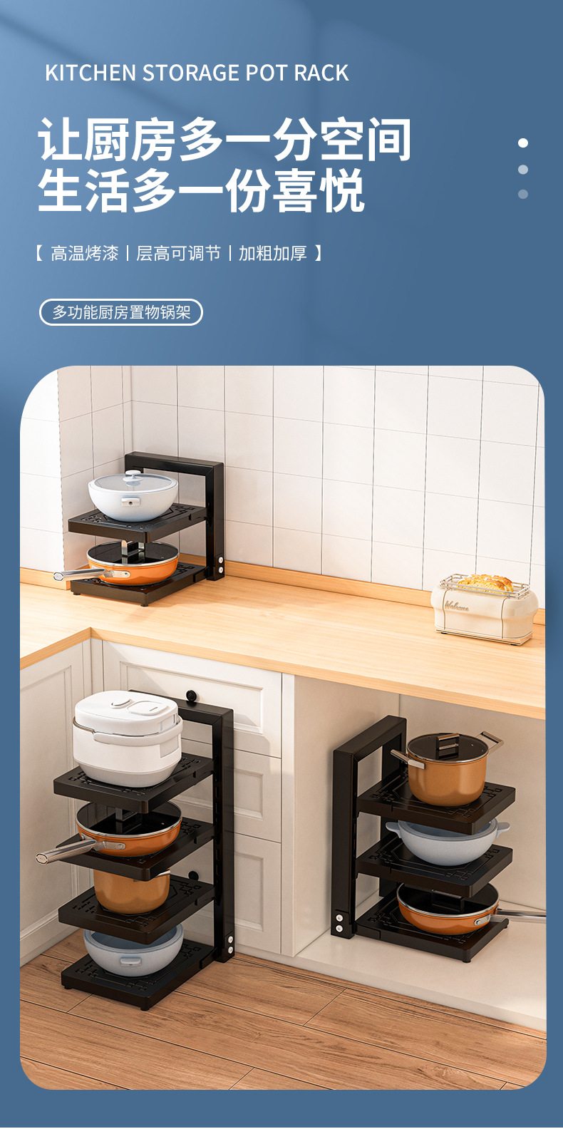 주방 가정용 멀티 레이어 스토리지 랙 캐비닛 싱크 포트 스토브 레이어 냄비 랙 스토리지 랙
