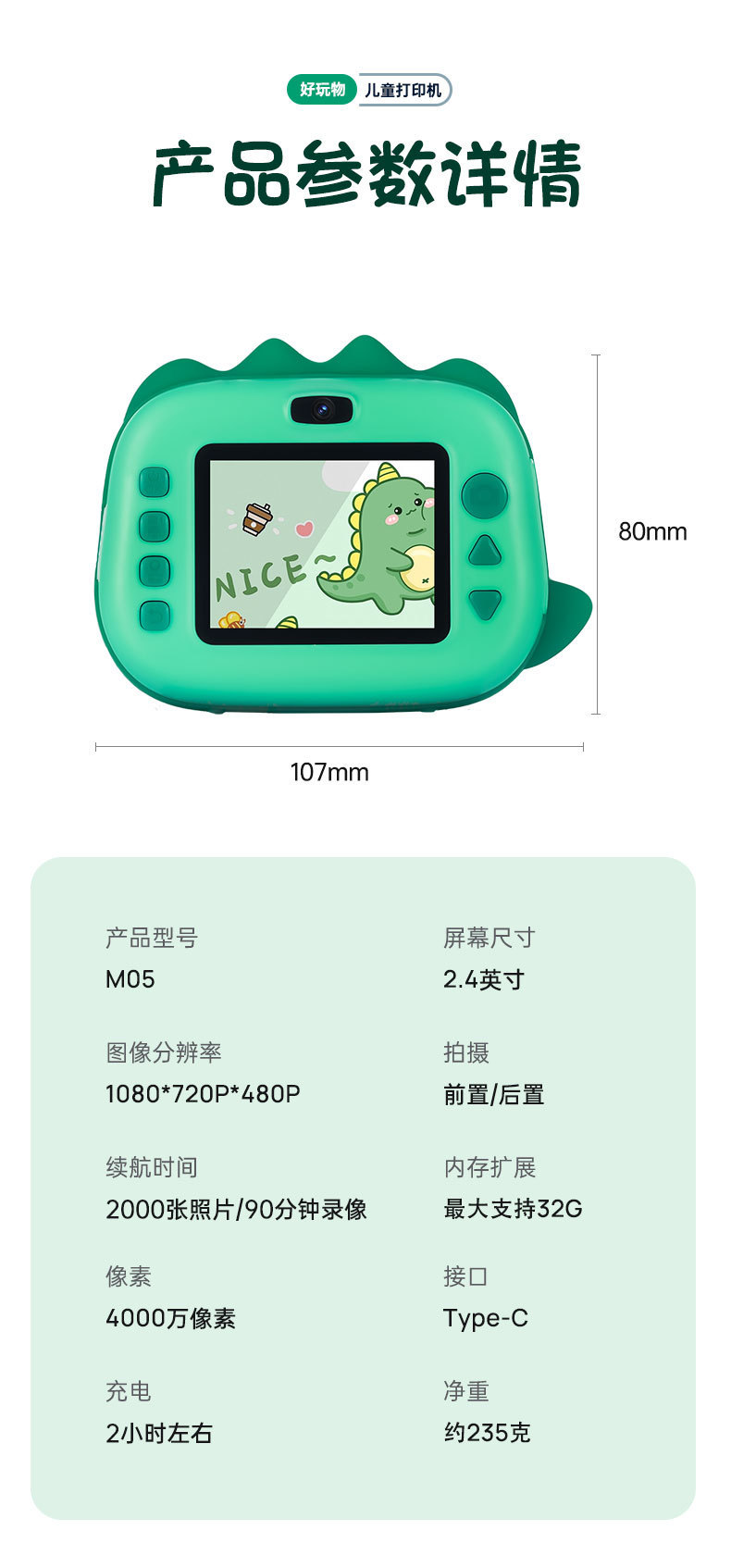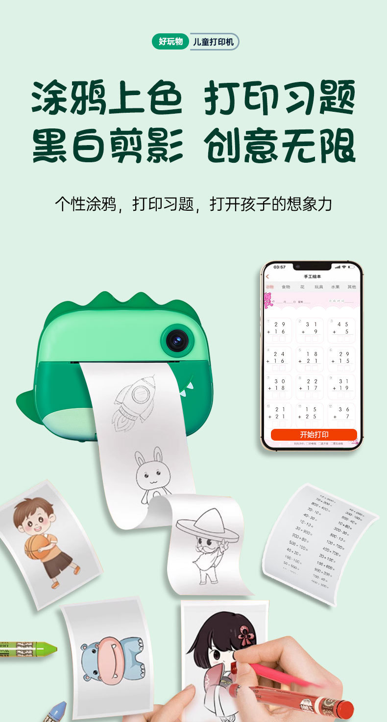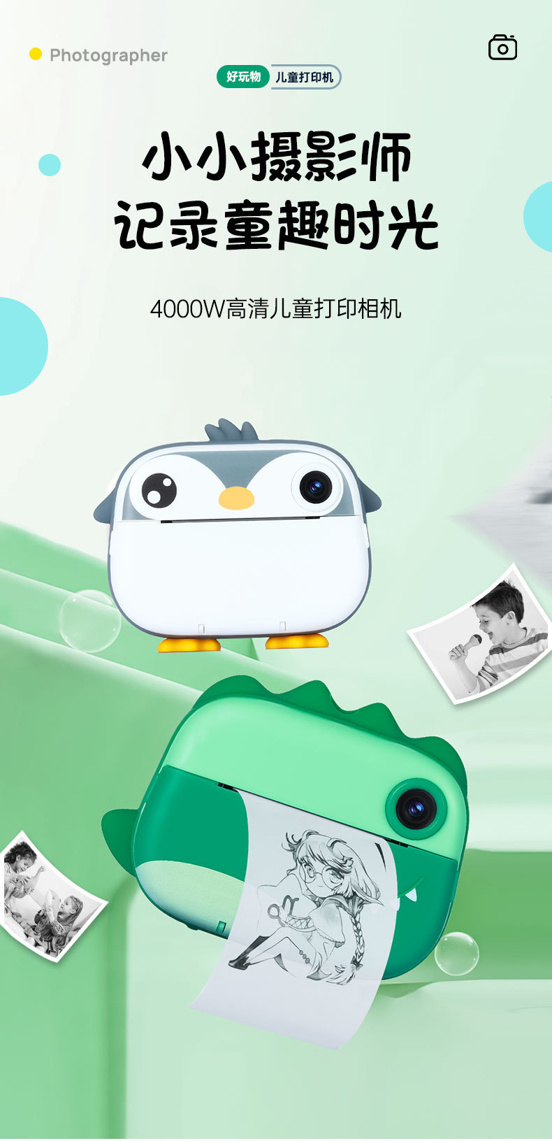어린이 폴로노이드 카메라 사진 인쇄 가능한 사진 작은 미니 디지털 컬러 소년과 소녀 장난감스토어 가기
