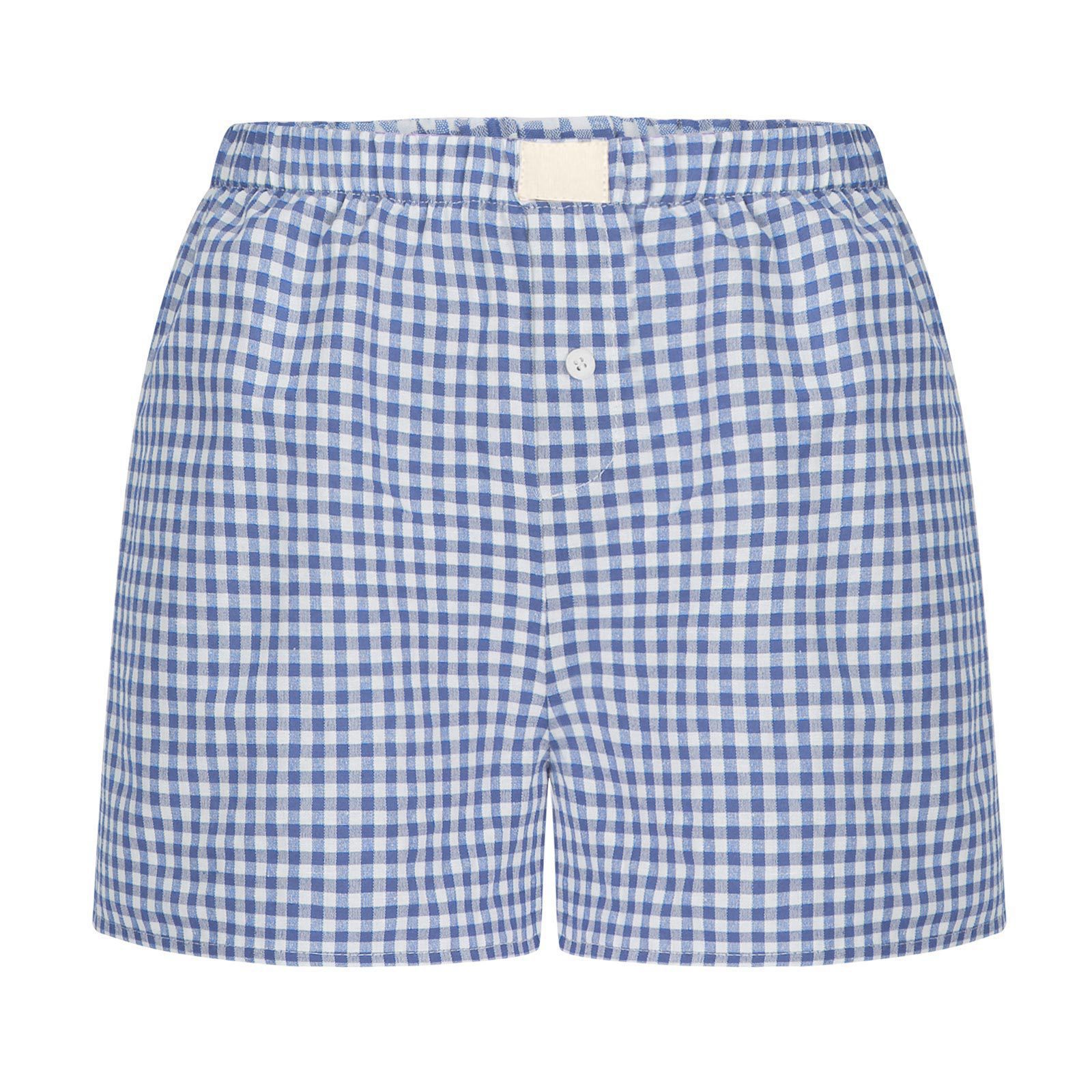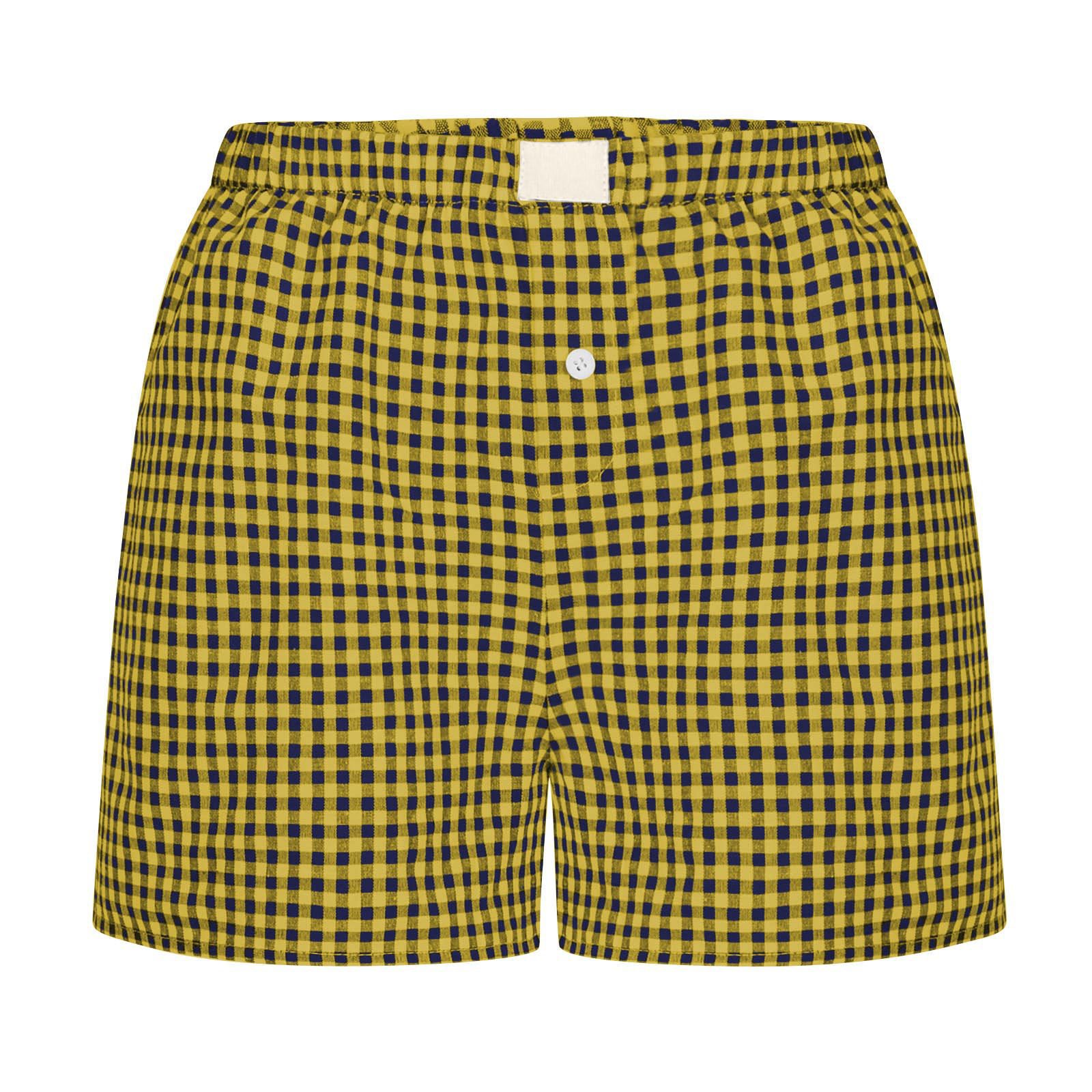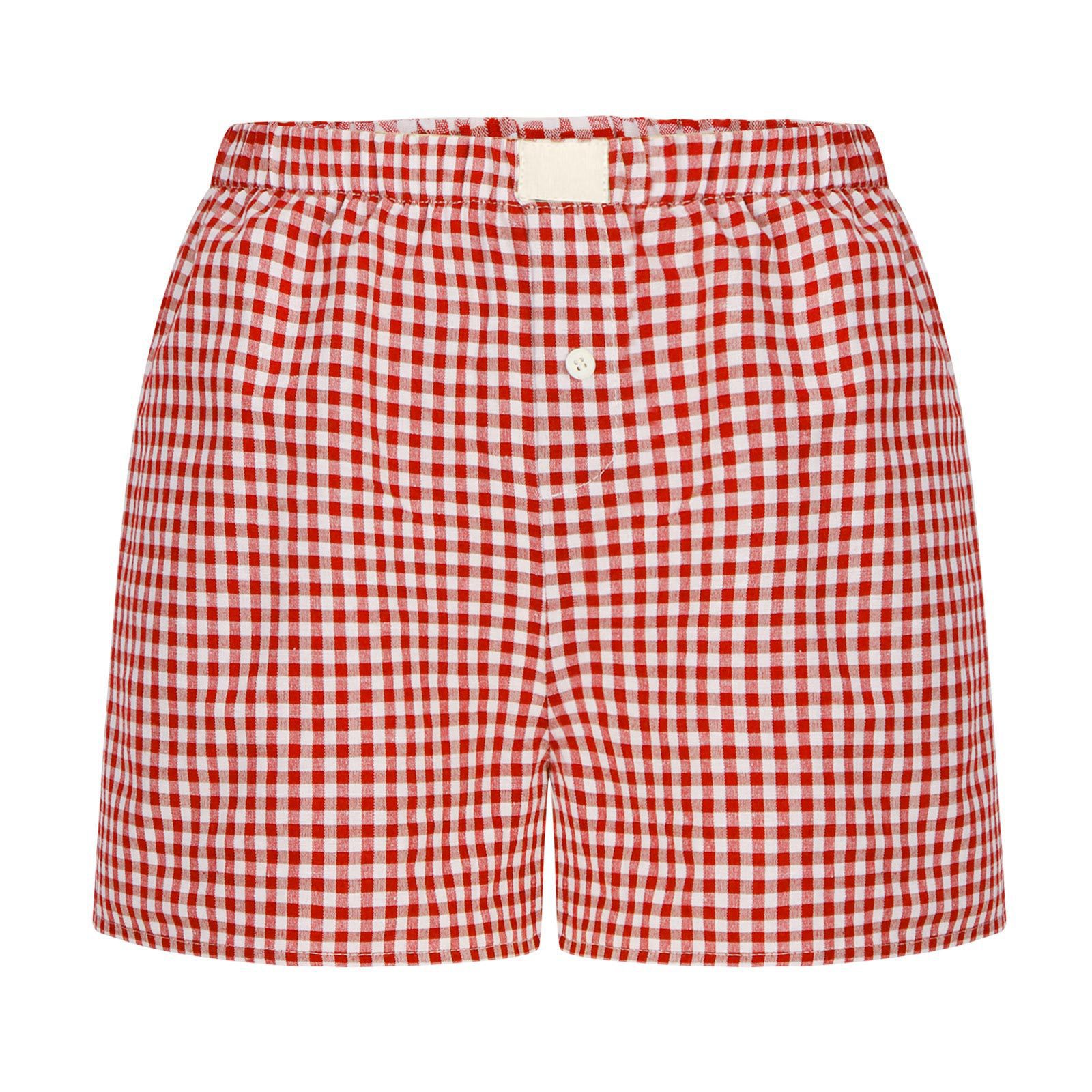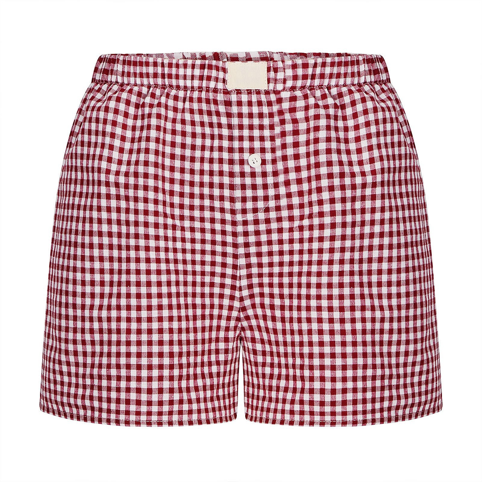 여름 2024 새로운 국경 AliExpress 여성 캐주얼 편안한 높은 허리 느슨한 넓은 다리 빈티지 격자 무늬 반바지스토어 가기