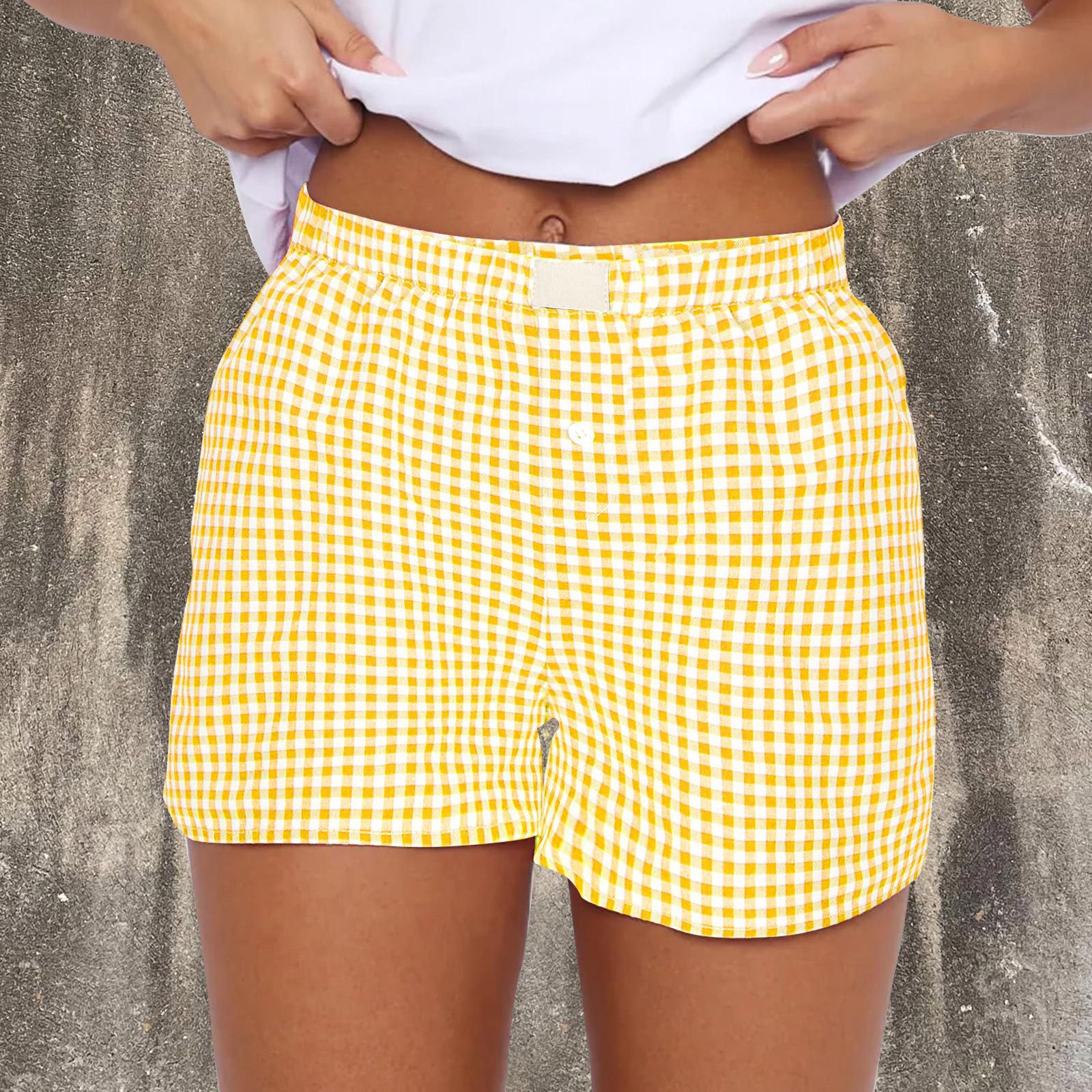 2024新款跨境女士休闲舒适高腰宽松阔腿复古格子短裤