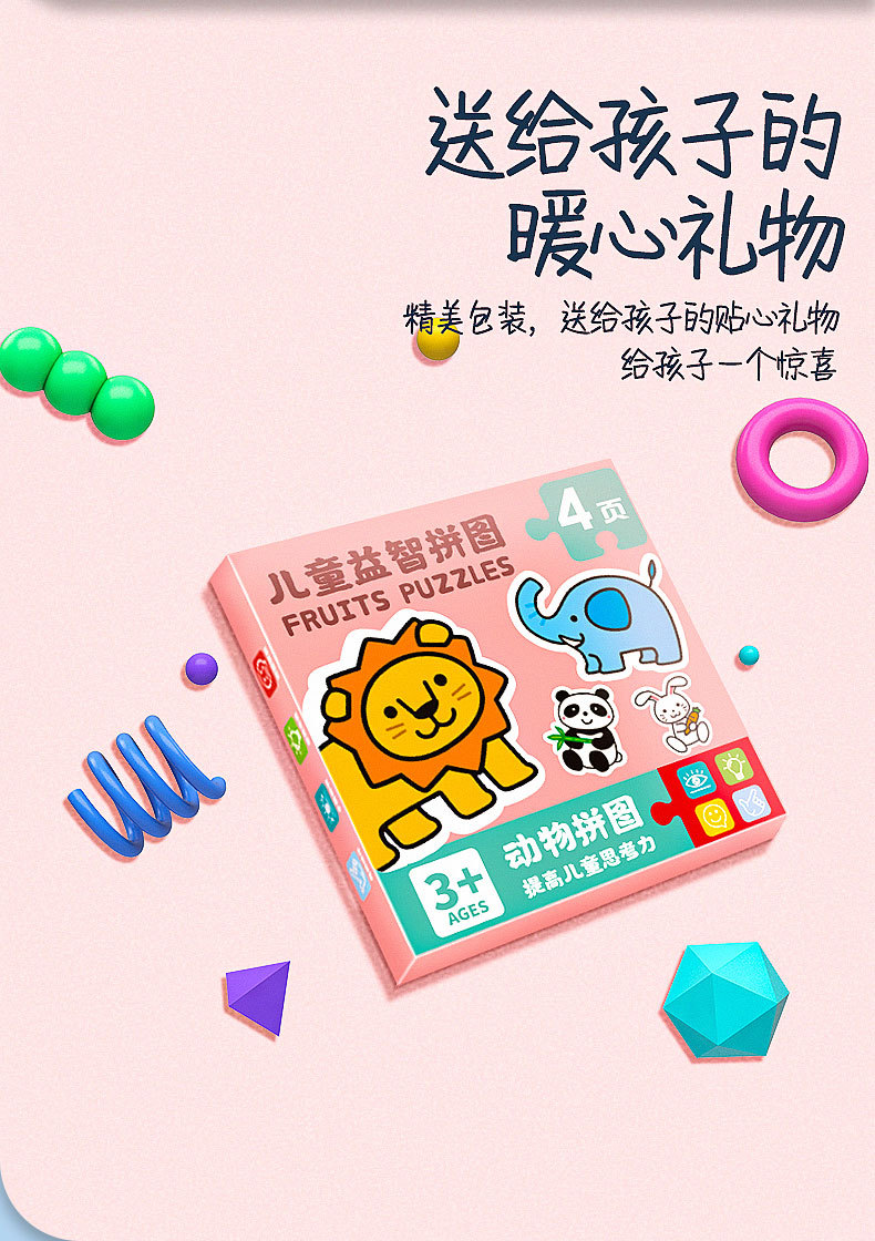 어린이 퍼즐 퍼즐 2 세 아기 3 ~ 6 어린이 지능 개발 0-3 소년 동물 2 명의 여성 4 개 항목 장난감스토어 가기