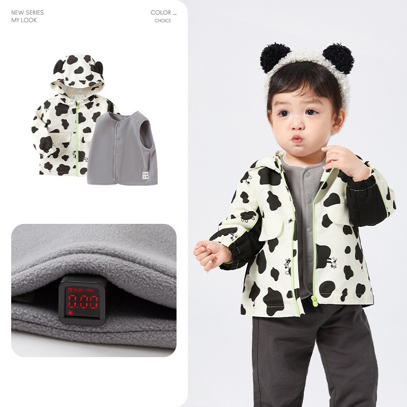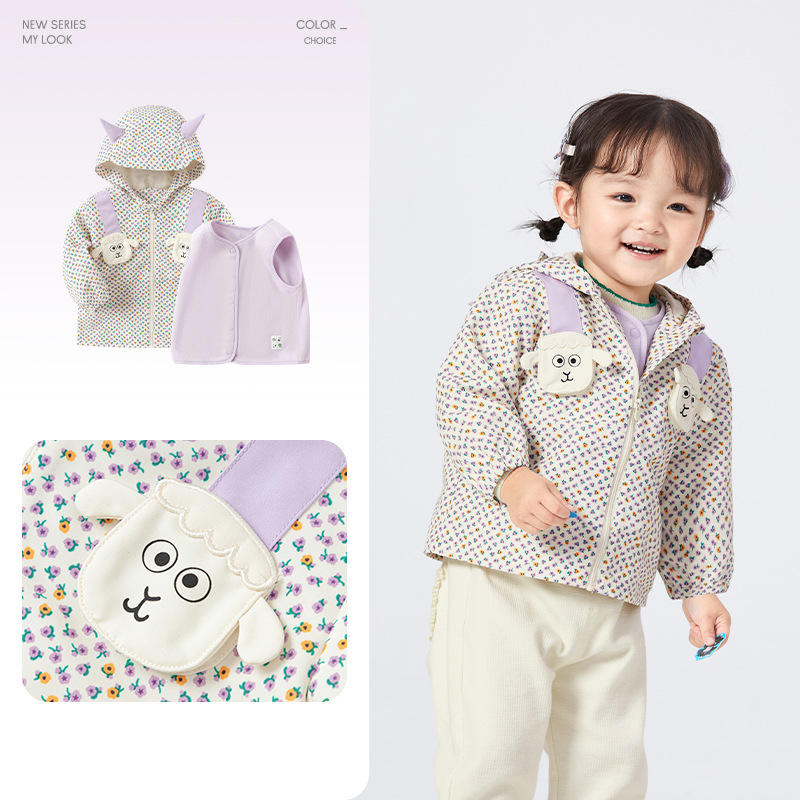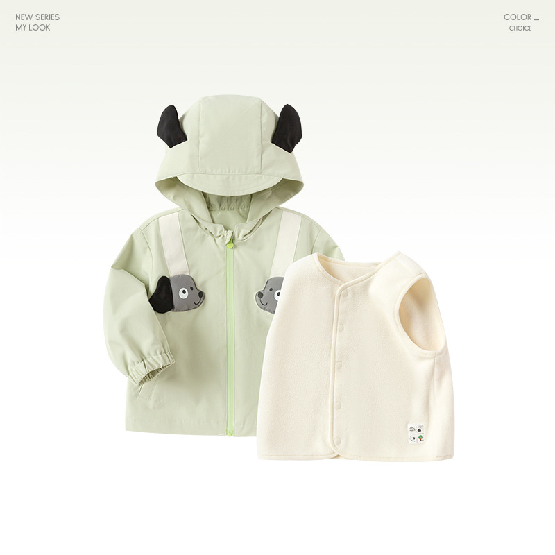 도매 아동복 2024 아기 코트 봄과 가을 새로운 남성과 여성 아기 외국 스타일 외부 착용 후드 탑 투피스 세트