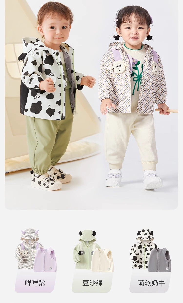 도매 아동복 2024 아기 코트 봄과 가을 새로운 남성과 여성 아기 외국 스타일 외부 착용 후드 탑 투피스 세트스토어 가기