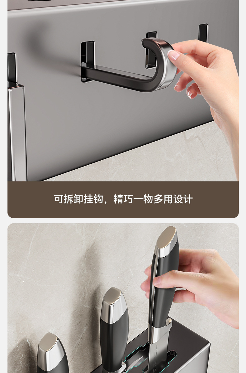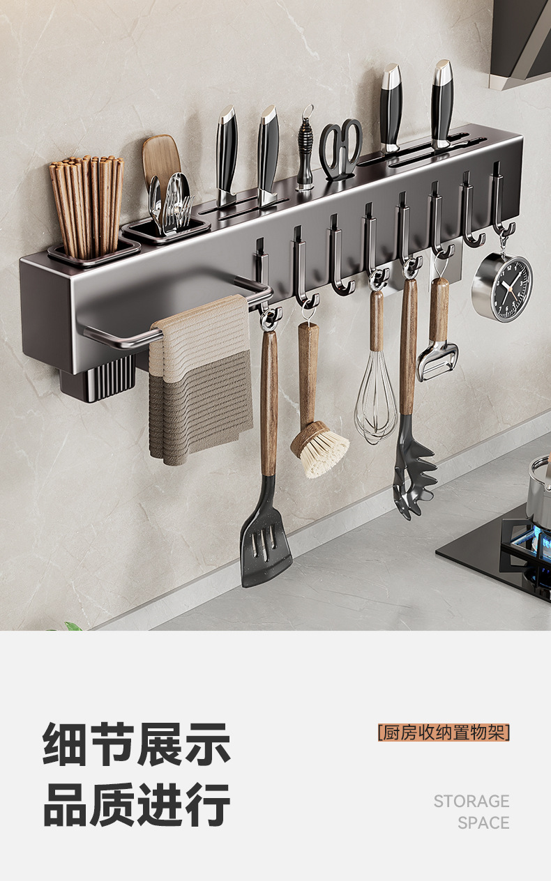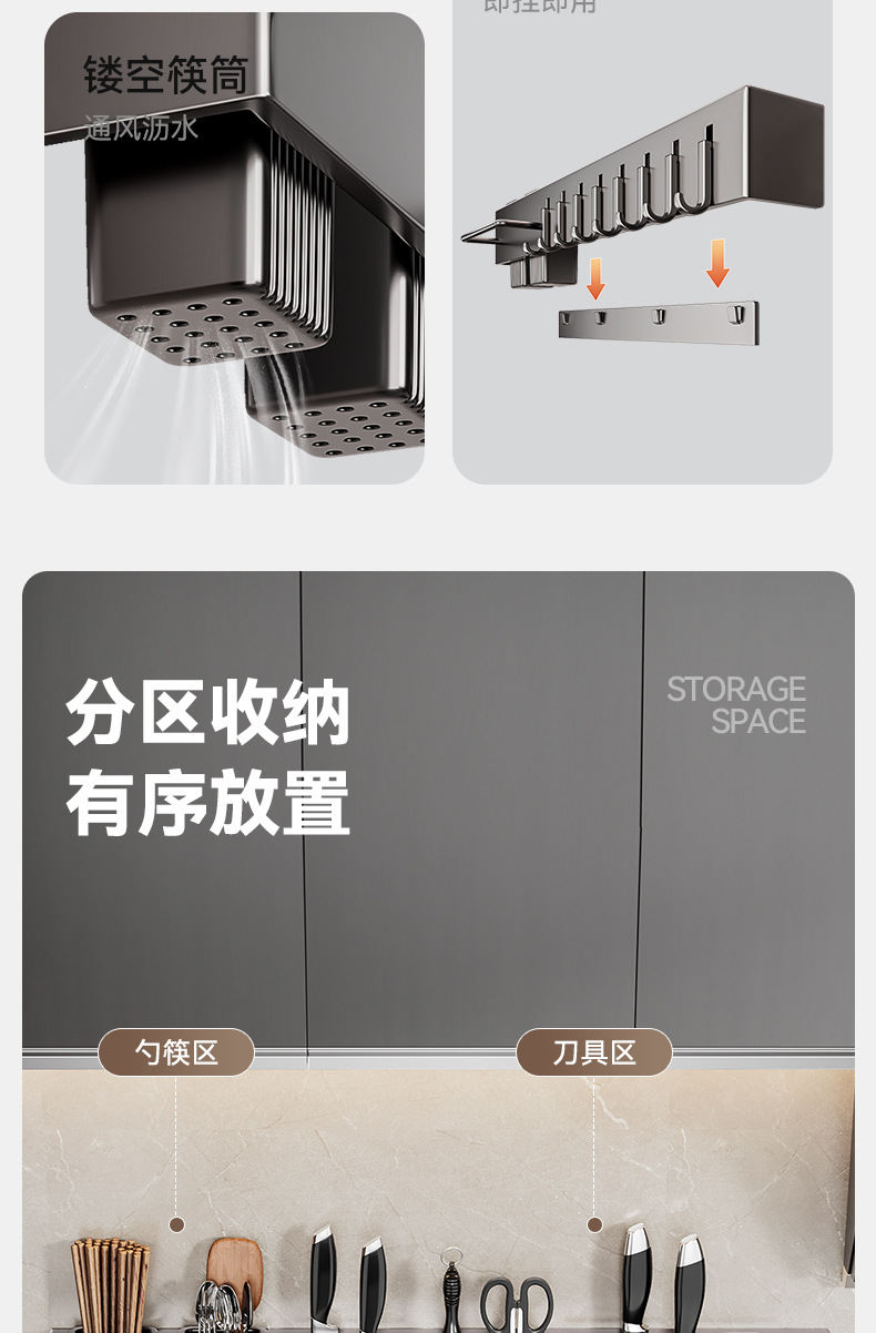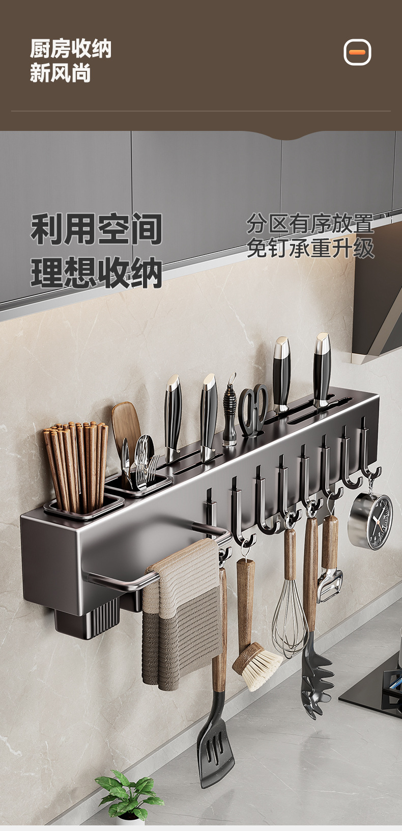 • 60CM 건그레이 다기능 칼 홀더 [젓가락통 3개 + 고리 10개]