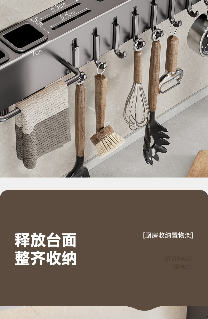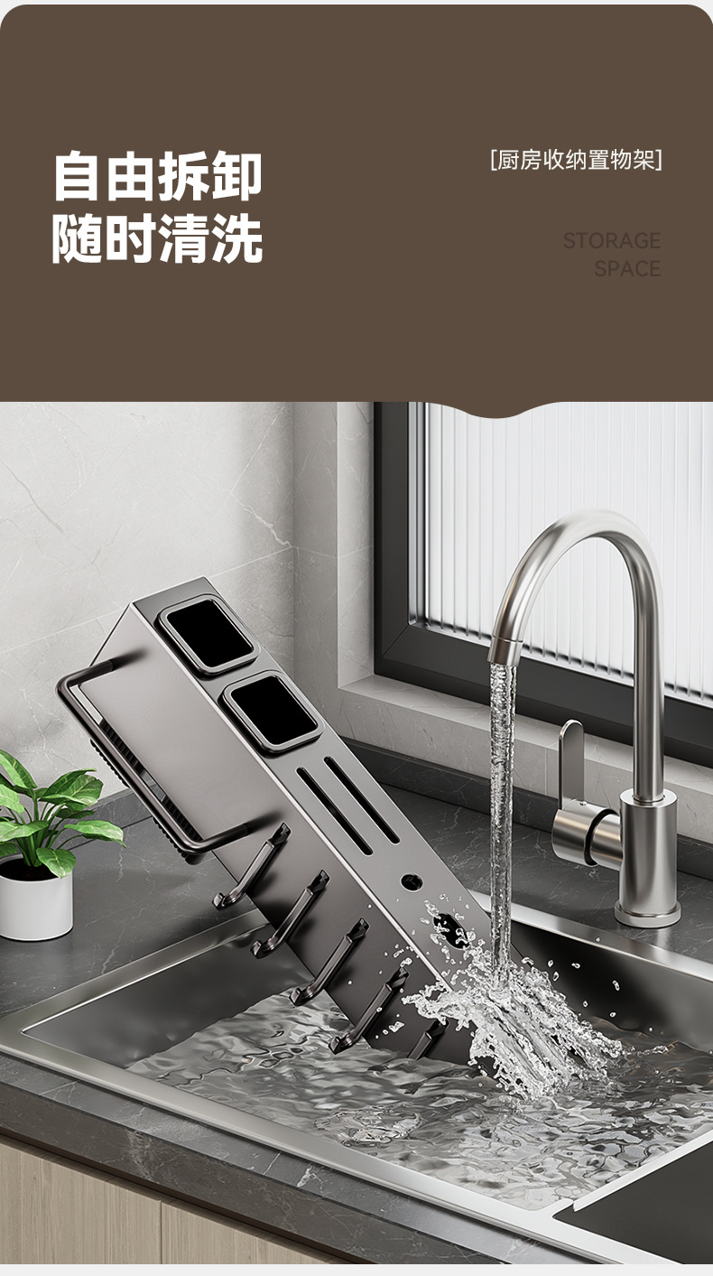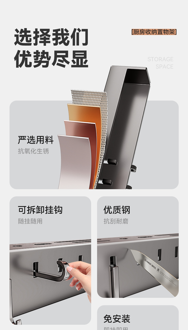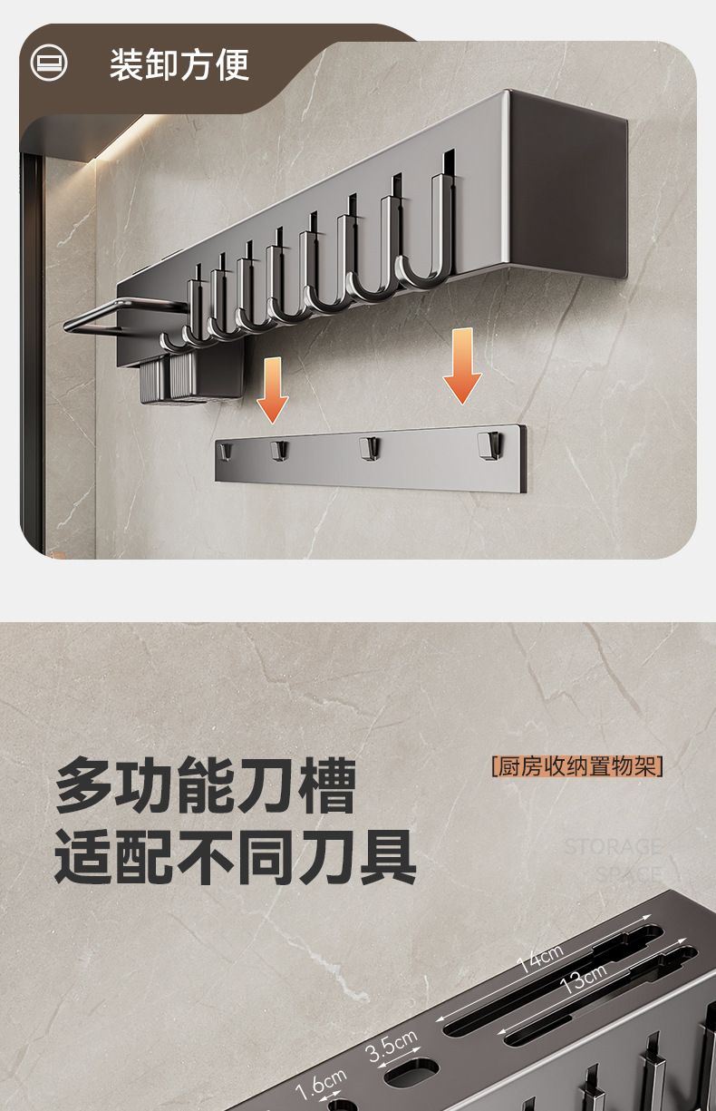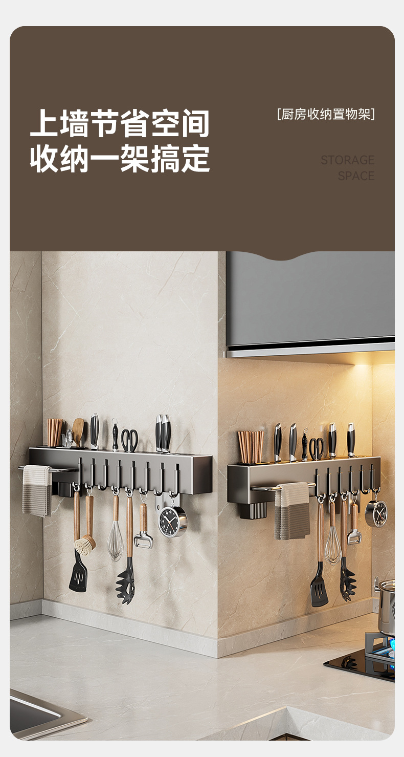 • 60CM 건그레이 다기능 칼 홀더 [젓가락통 3개 + 고리 10개]