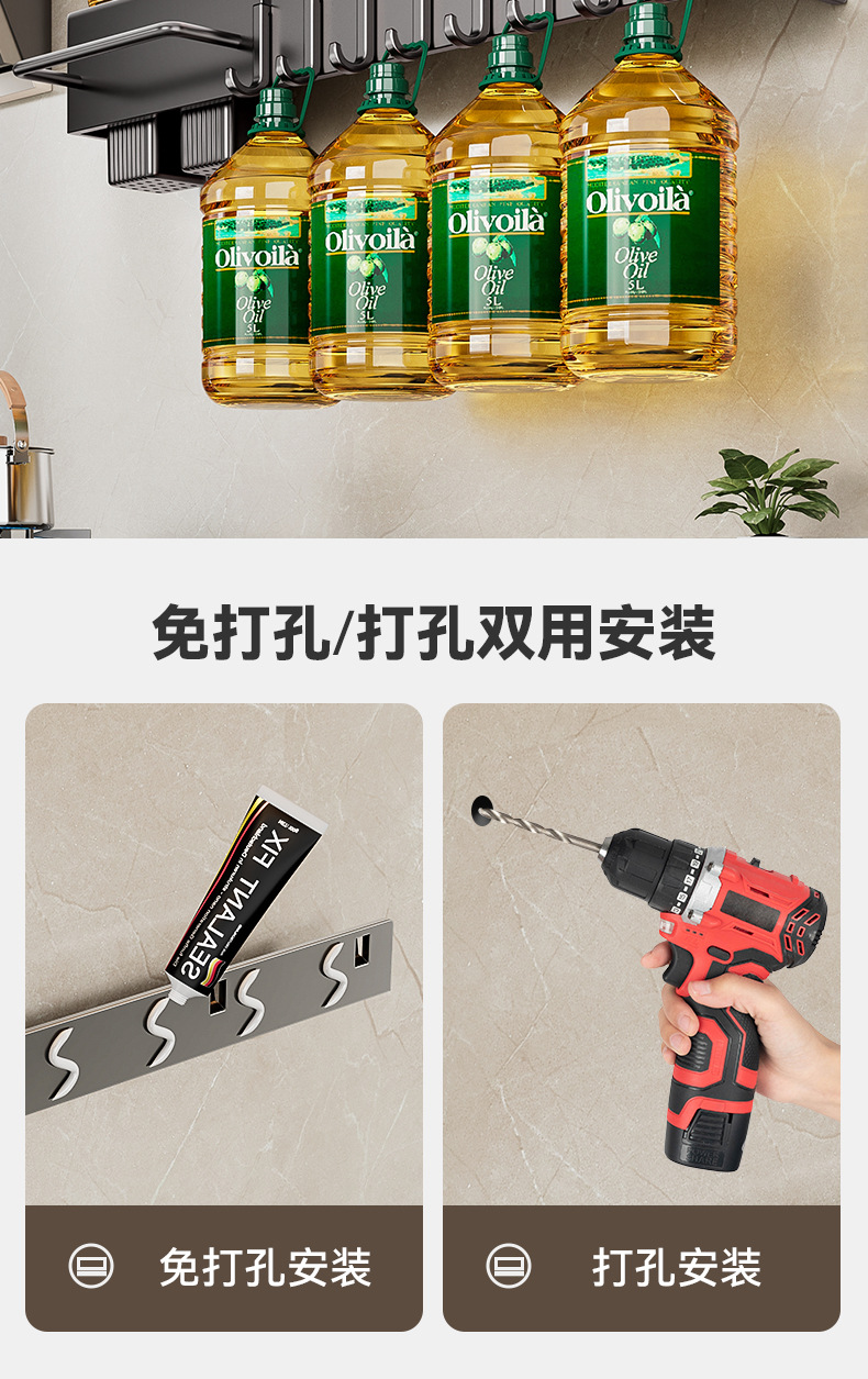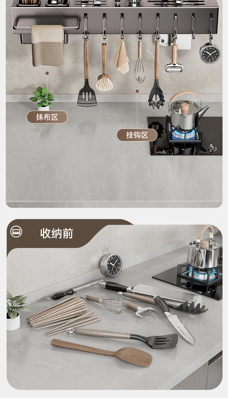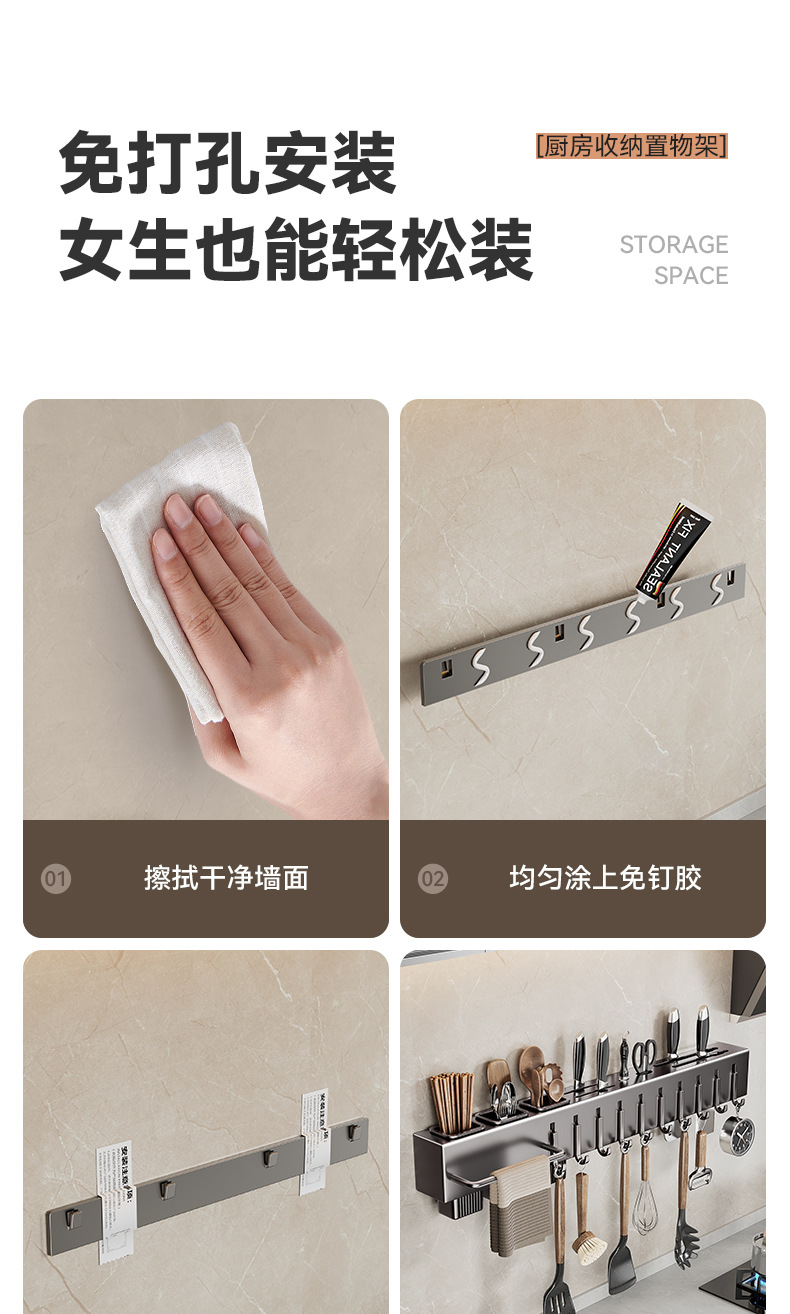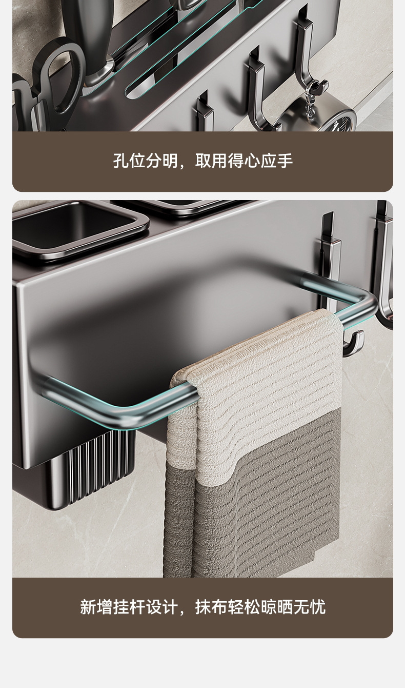 • 60CM 건그레이 다기능 칼 홀더 [젓가락통 3개 + 고리 10개]