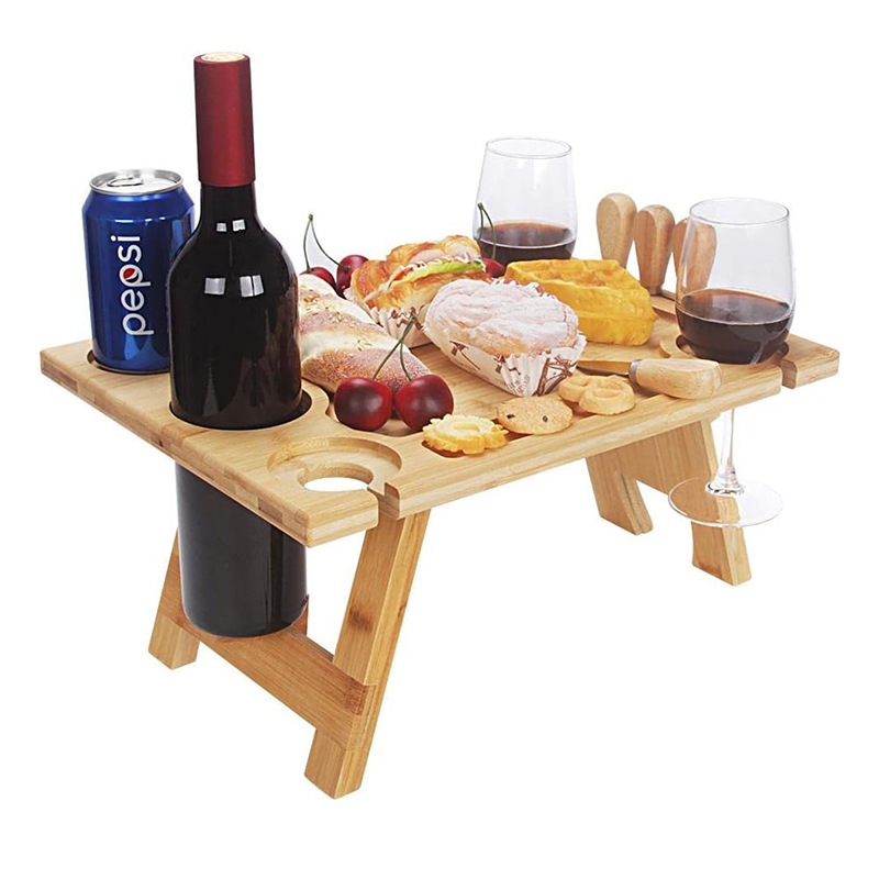 국경 간 야외 캠핑 휴대용 피크닉 테이블 대나무 캠핑 접이식 레드 와인 테이블 창조적 인 나무 레드 와인 비치 테이블