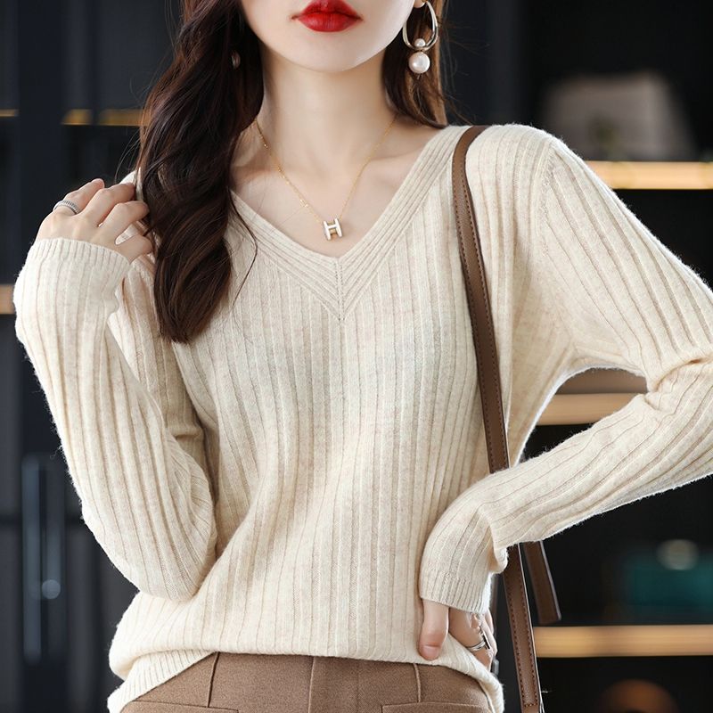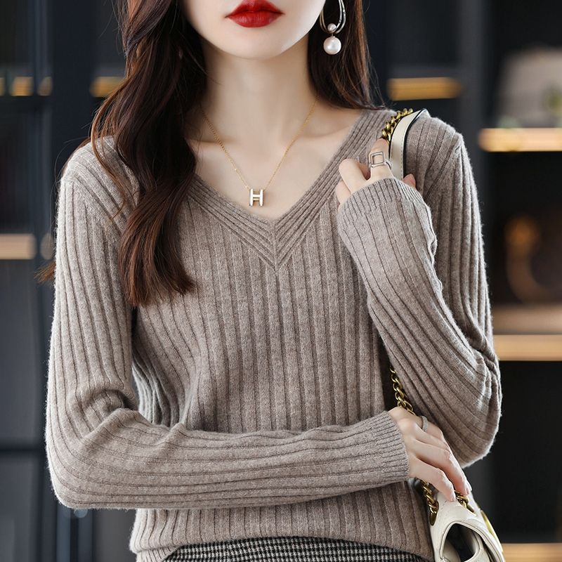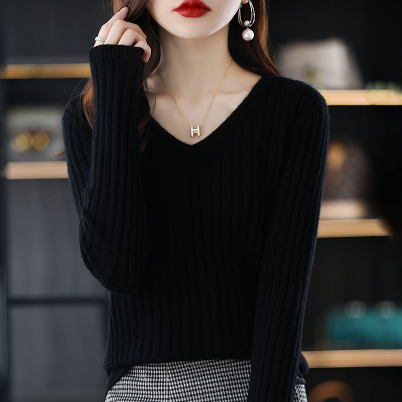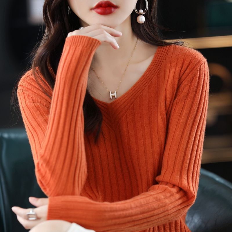 [봄, 가을 핫 세일] 가을, 겨울 V 넥 풀오버 긴팔 니트 바닥 셔츠 여성용 스웨터 다목적 내부 스웨터 탑스토어 가기