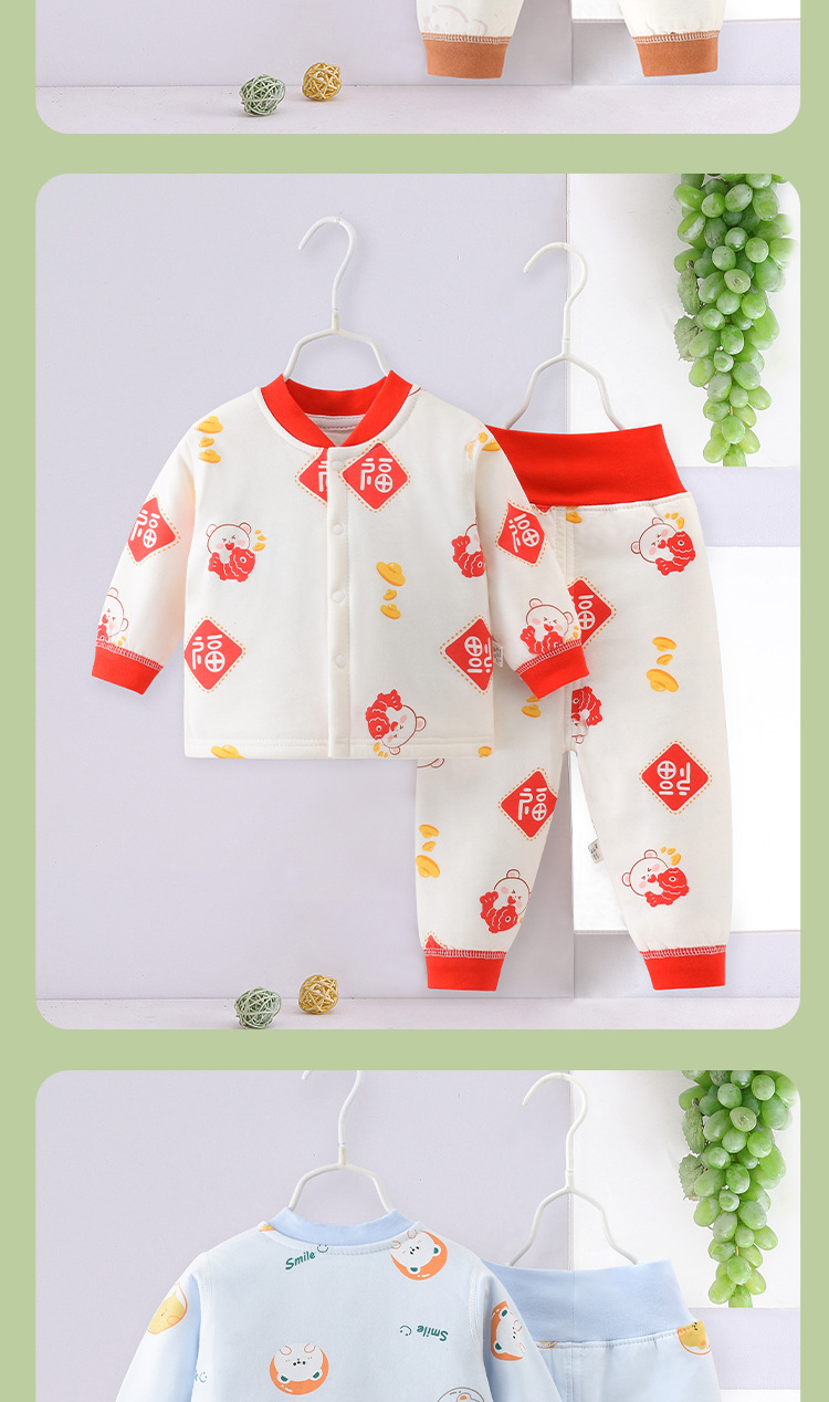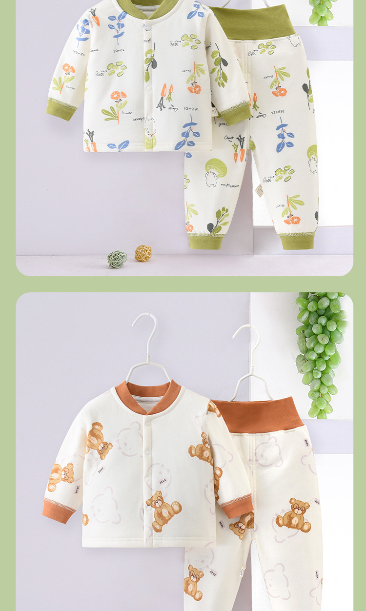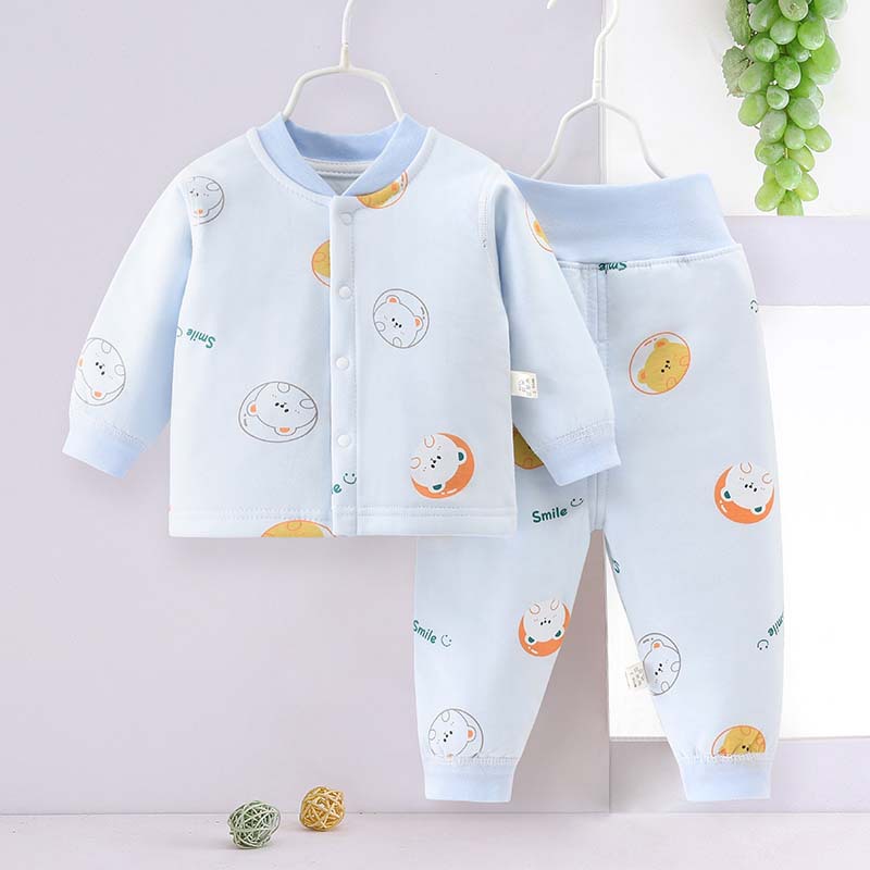 아기 따뜻한 세트 봄과 가을 얇은 면화 아기 분할 옷 순면 속옷 어린이 가을 옷 가을 바지 면-패딩 된 봄 옷