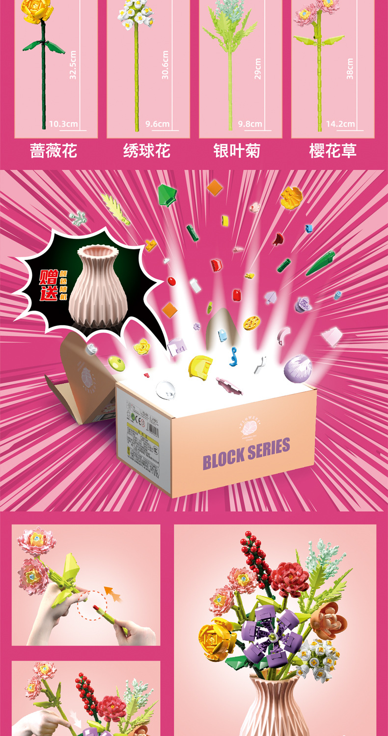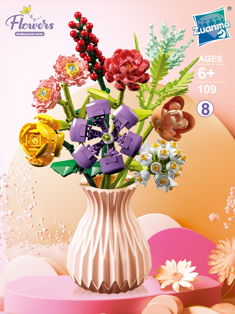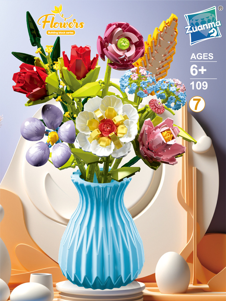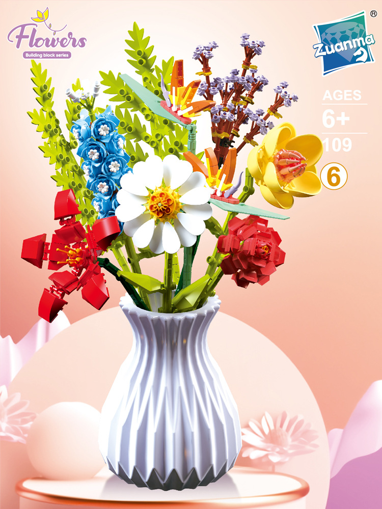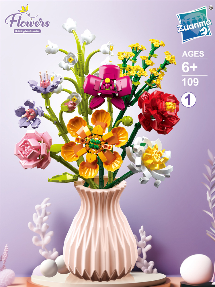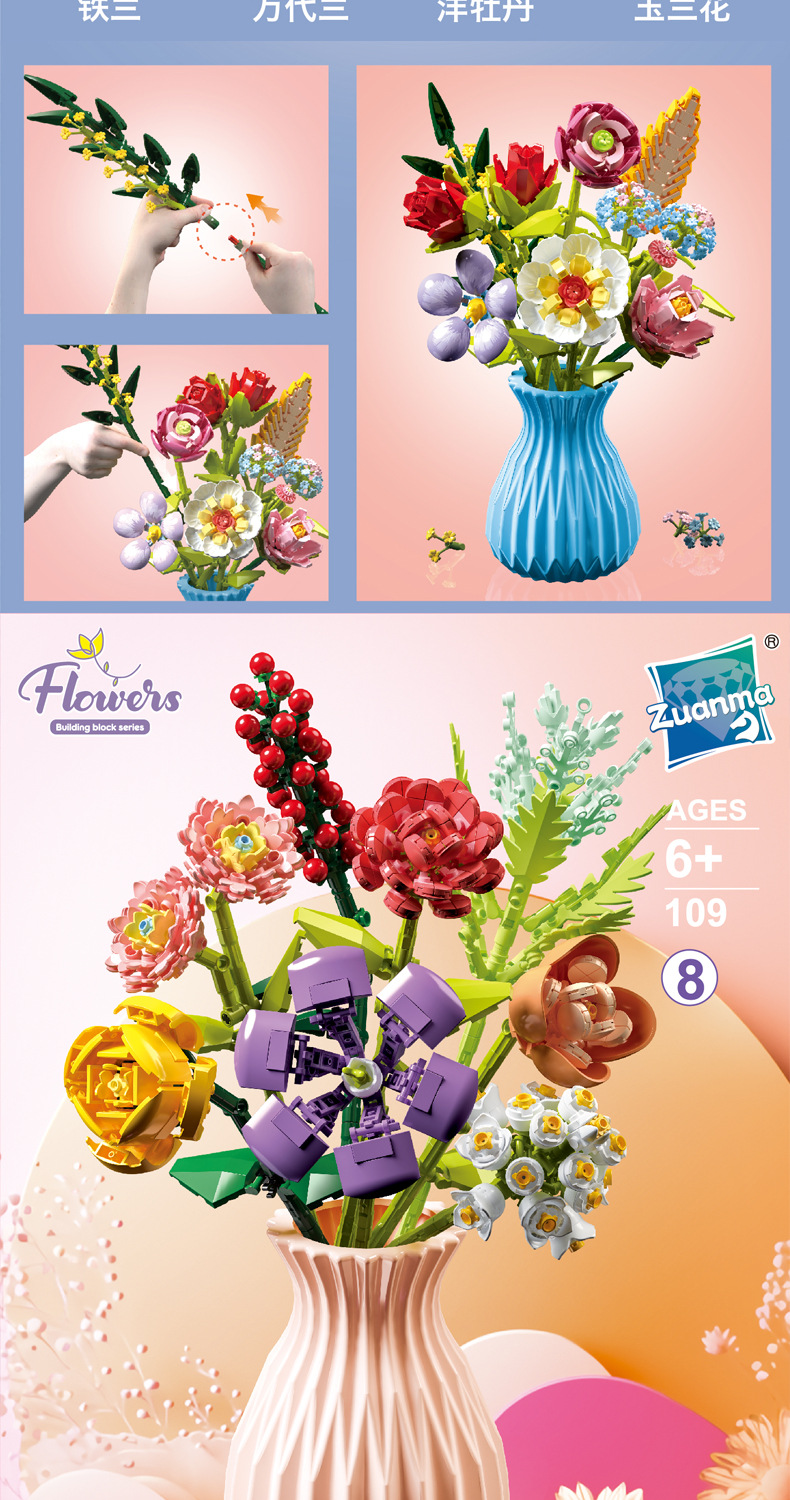 드릴마109 조립식 블록 꽃다발 영구꽃 장미 꽃다발 어린이 교육용 조립 장난감 블록 도매