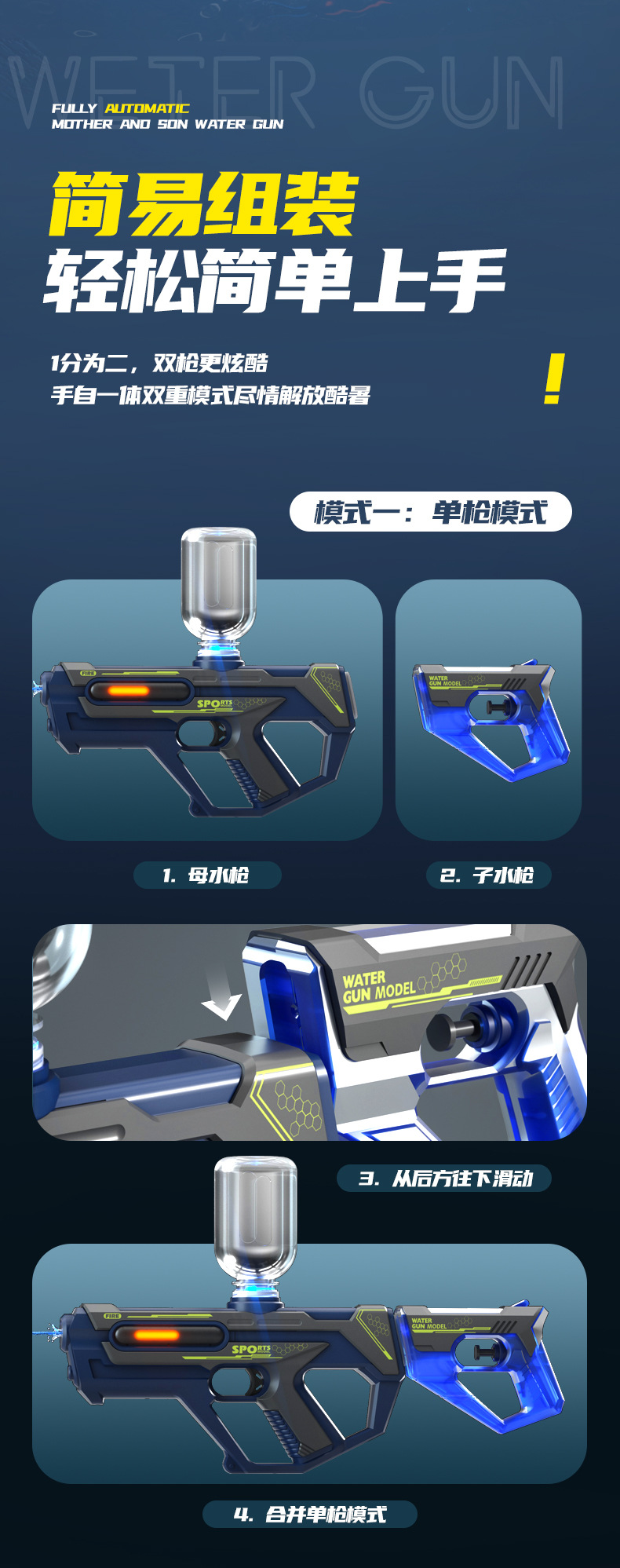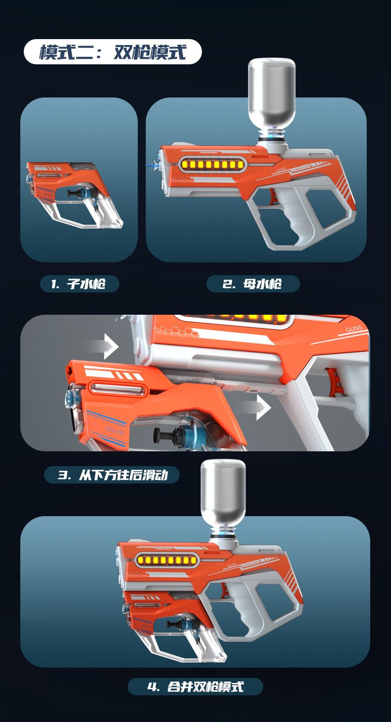 국경 간 어린이 물 총 장난감 아이-어머니 듀얼 건 자체 통합 듀얼 모드 대용량 물 총 전투기 장난감스토어 가기