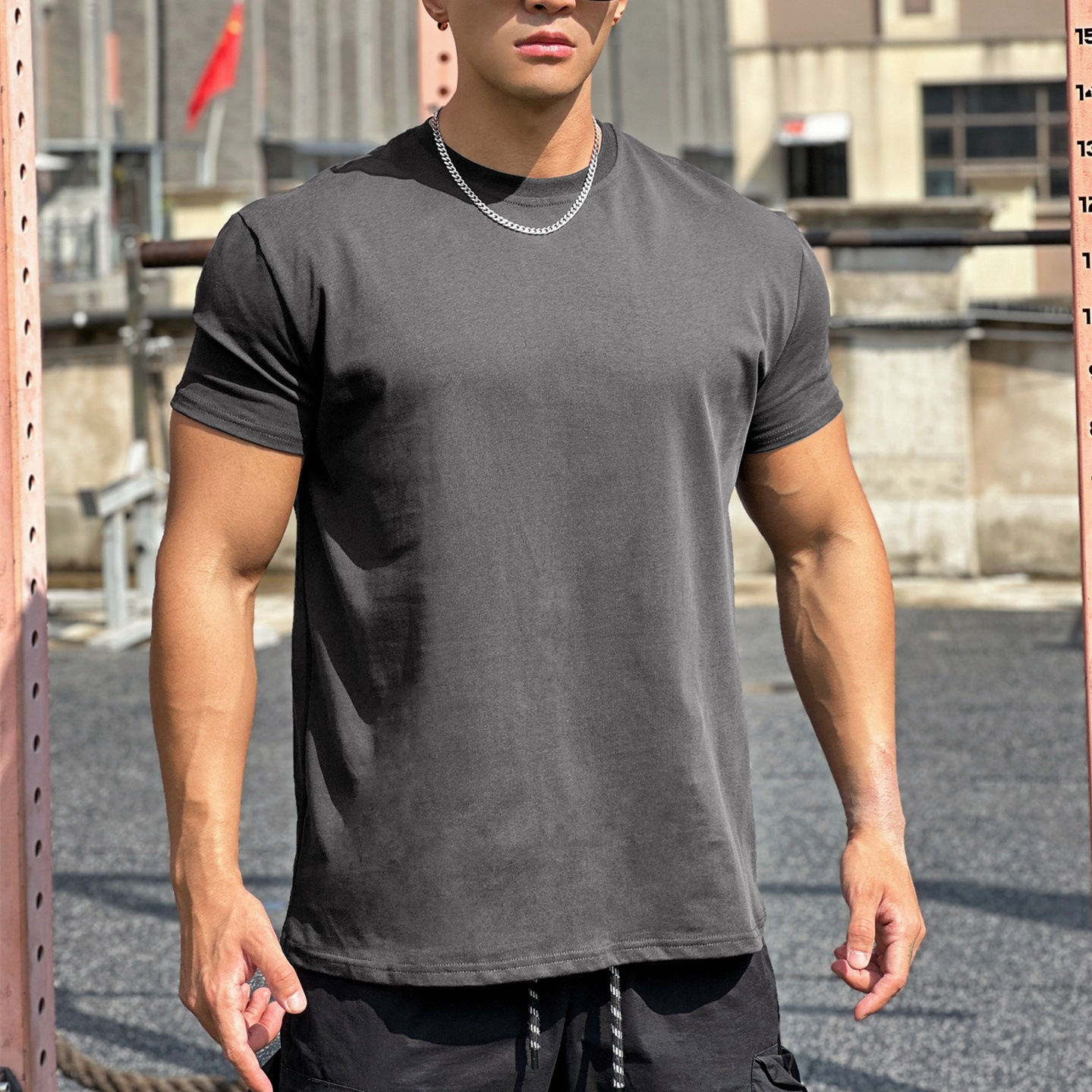 运动短袖男T恤垫肩收袖口健身跑步训练肌肉撸铁狗兄弟美式纯色潮