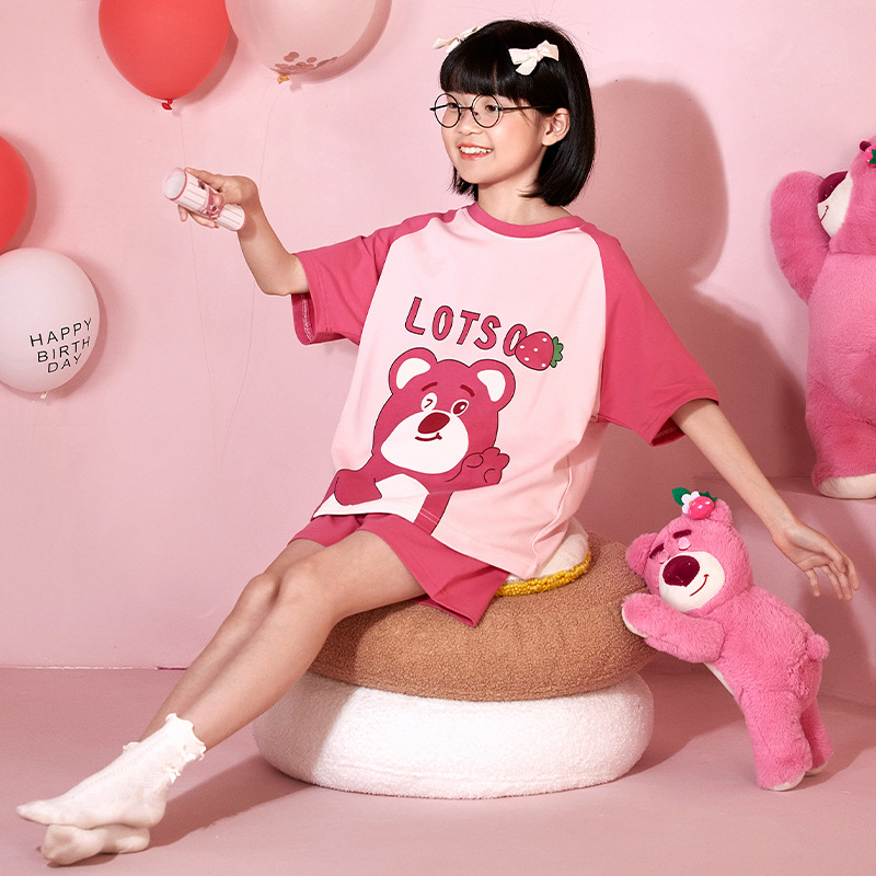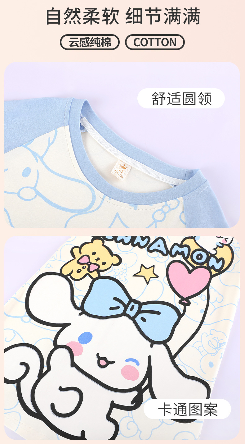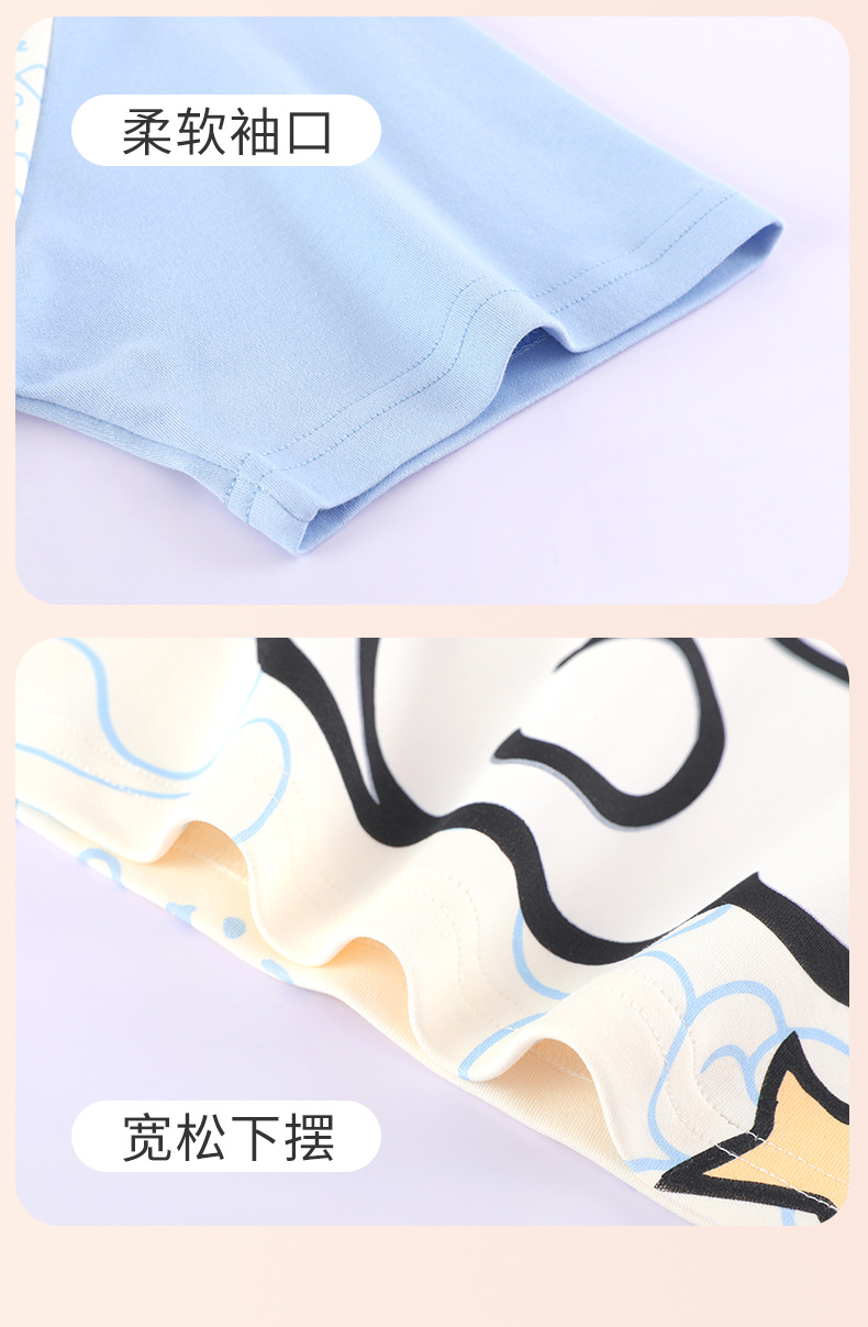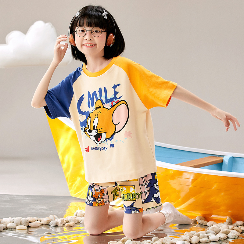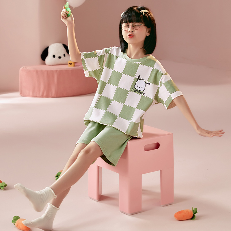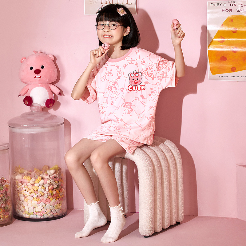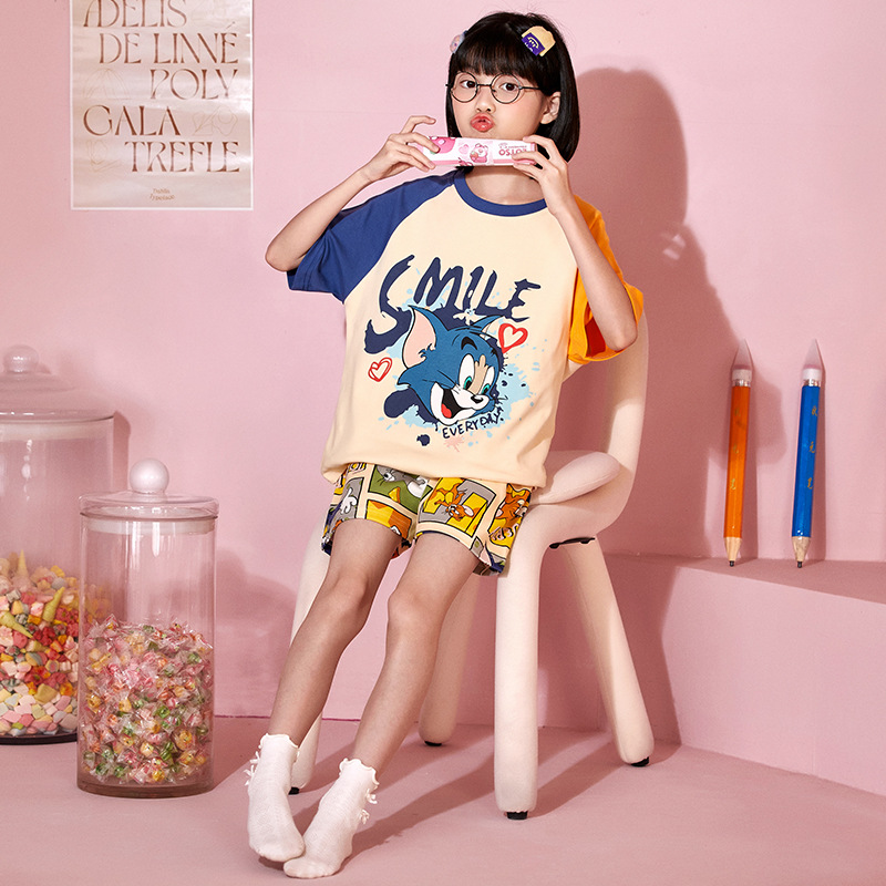 귀여운 만화 소녀 잠옷 반팔 반바지 세트, 중소 및 대형 어린이를위한 여아 집 옷을 풀 수 있습니다스토어 가기