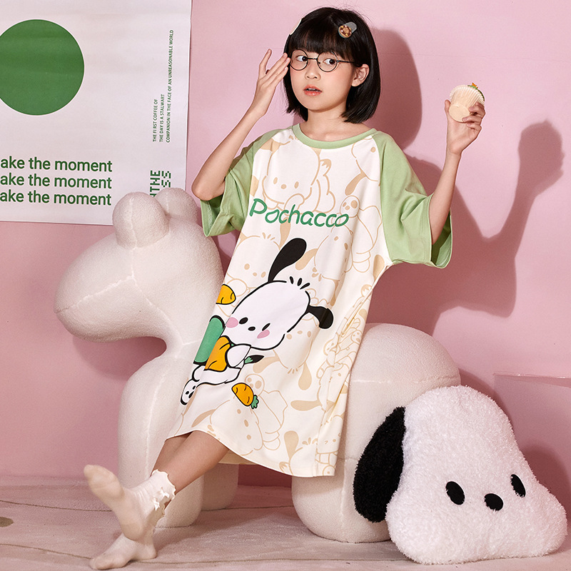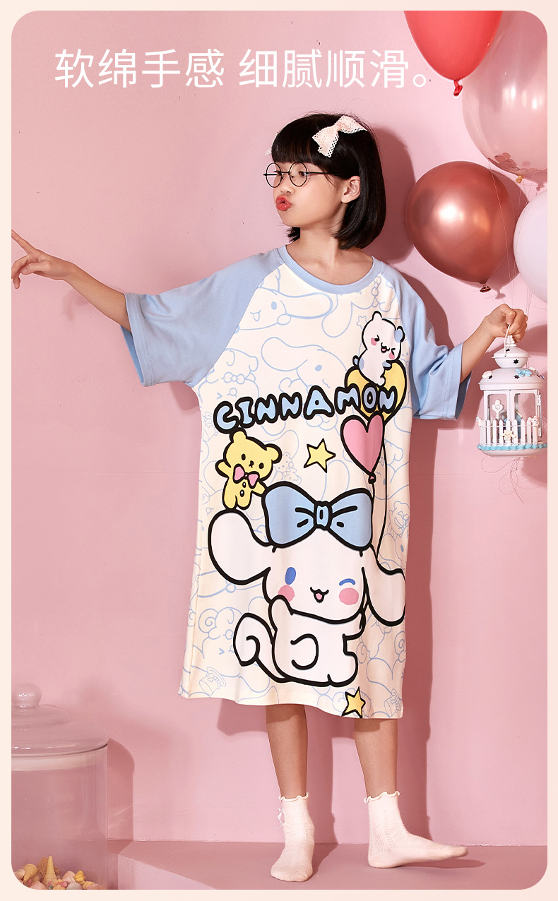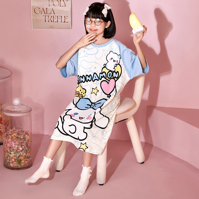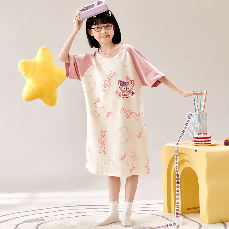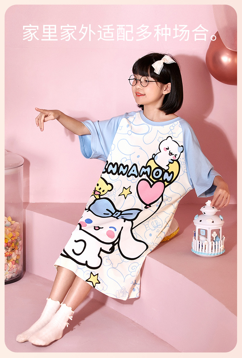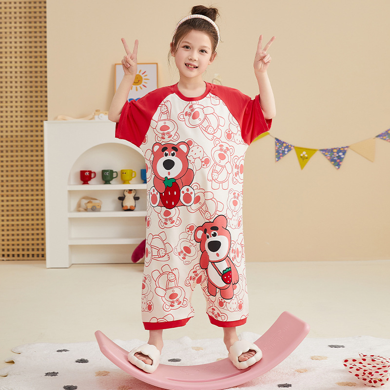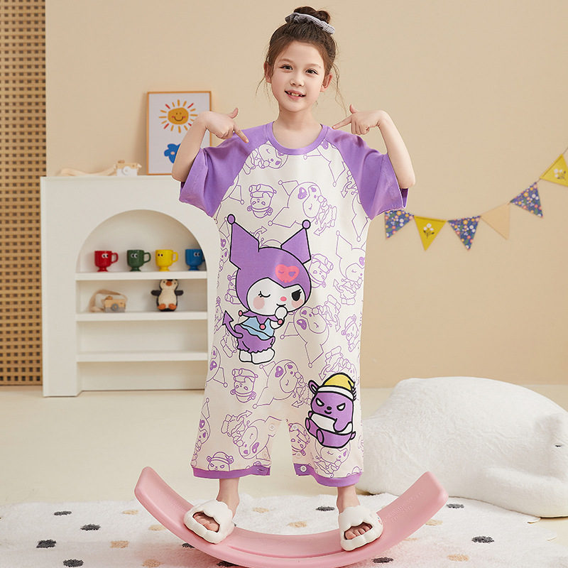 귀여운 만화 소녀 잠옷 반팔 반바지 세트, 중소 및 대형 어린이를위한 여아 집 옷을 풀 수 있습니다스토어 가기