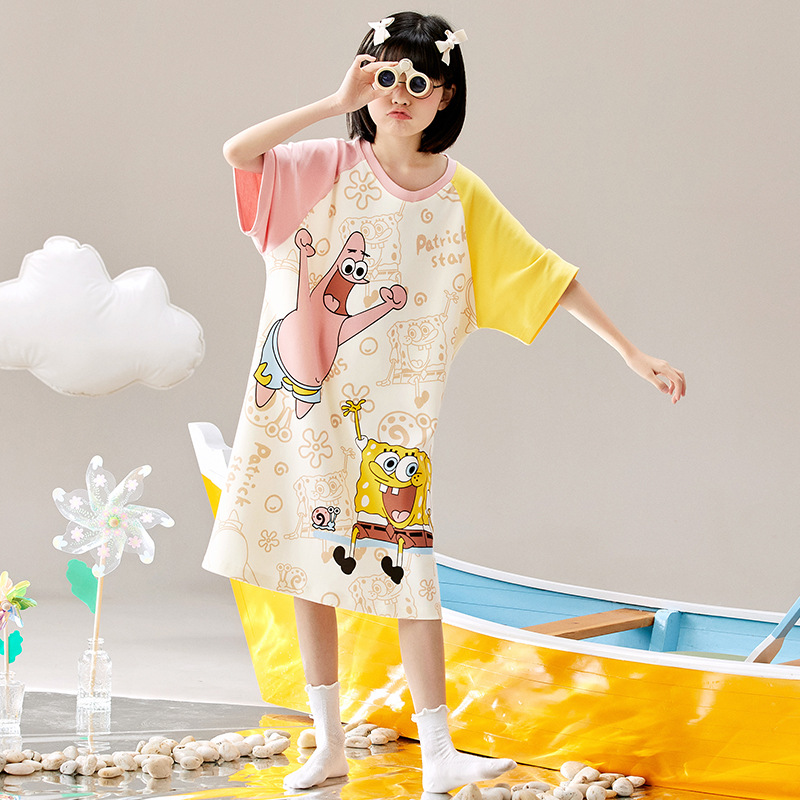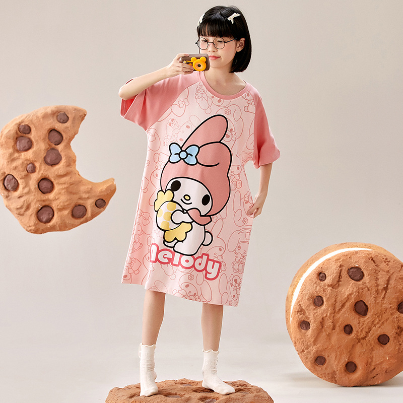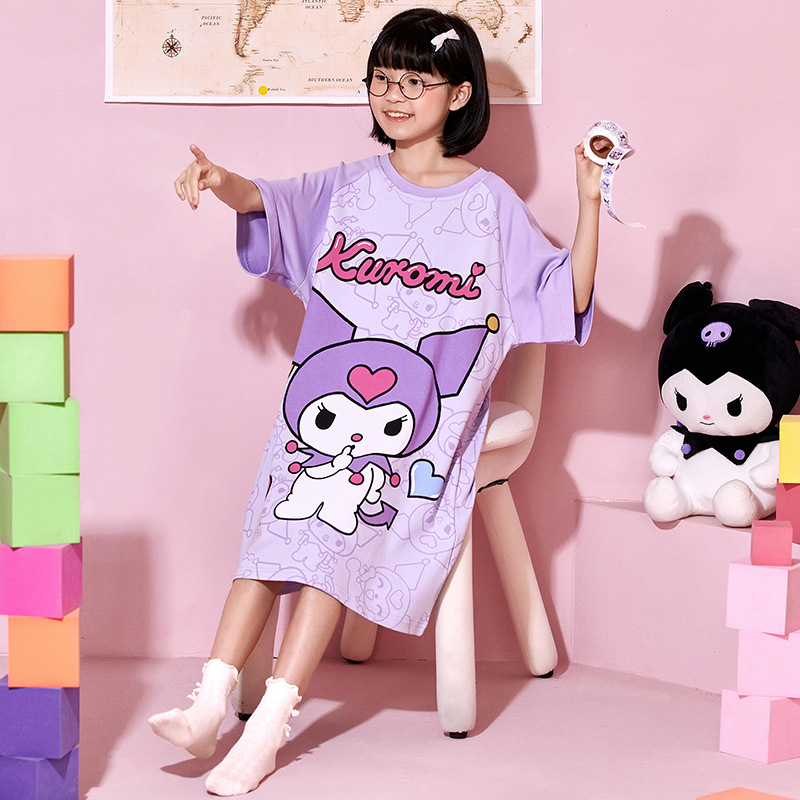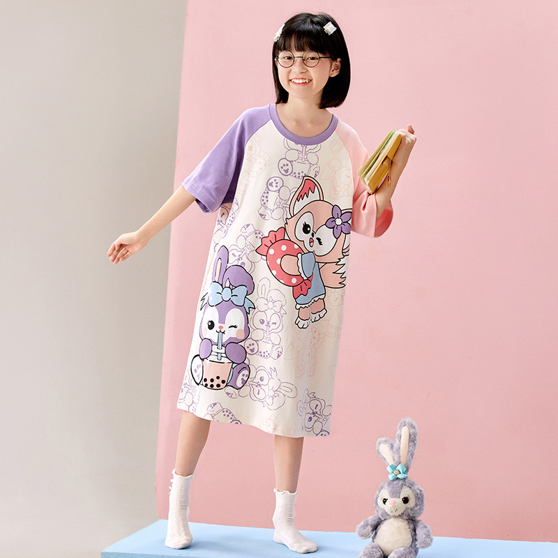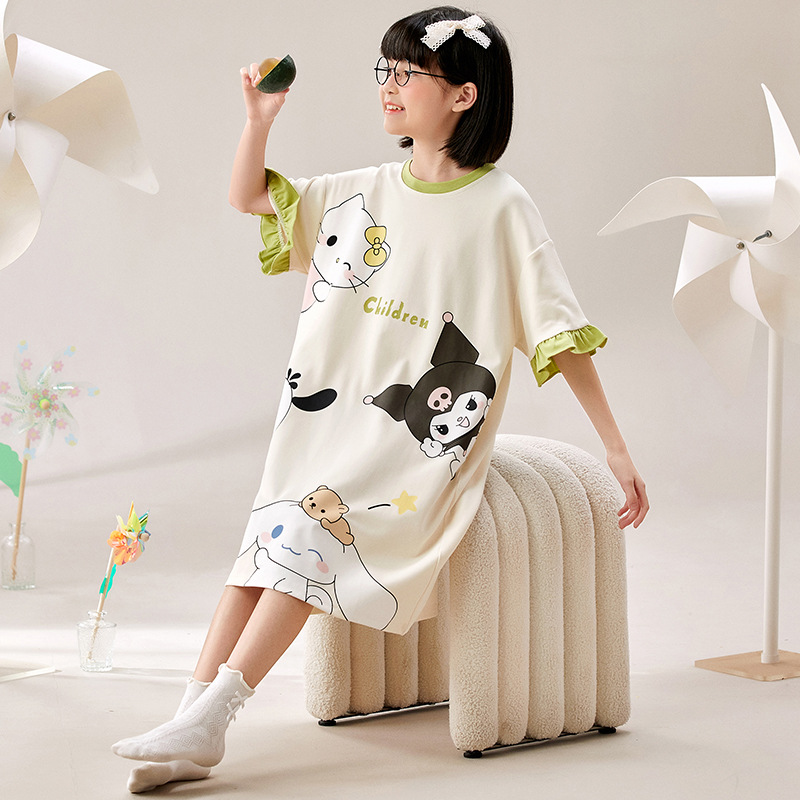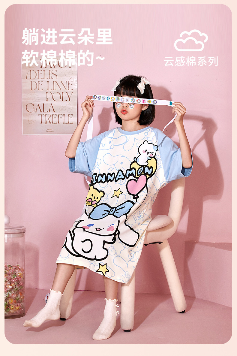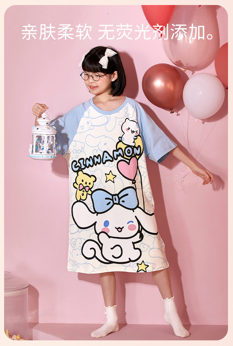 귀여운 만화 소녀 잠옷 반팔 반바지 세트, 중소 및 대형 어린이를위한 여아 집 옷을 풀 수 있습니다스토어 가기