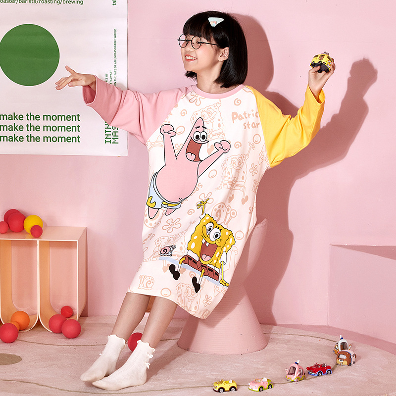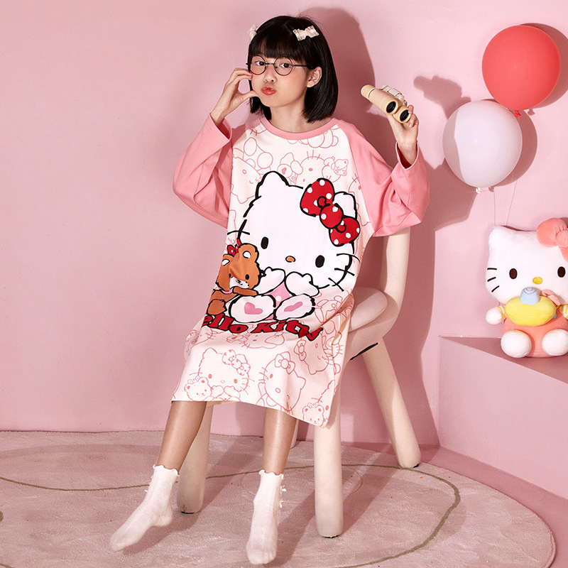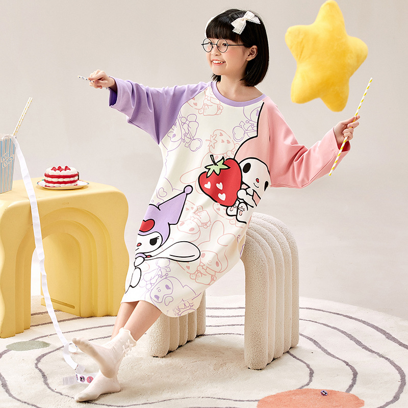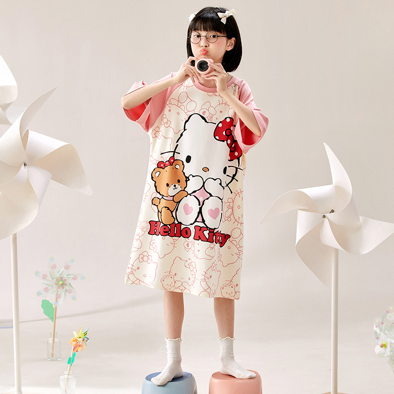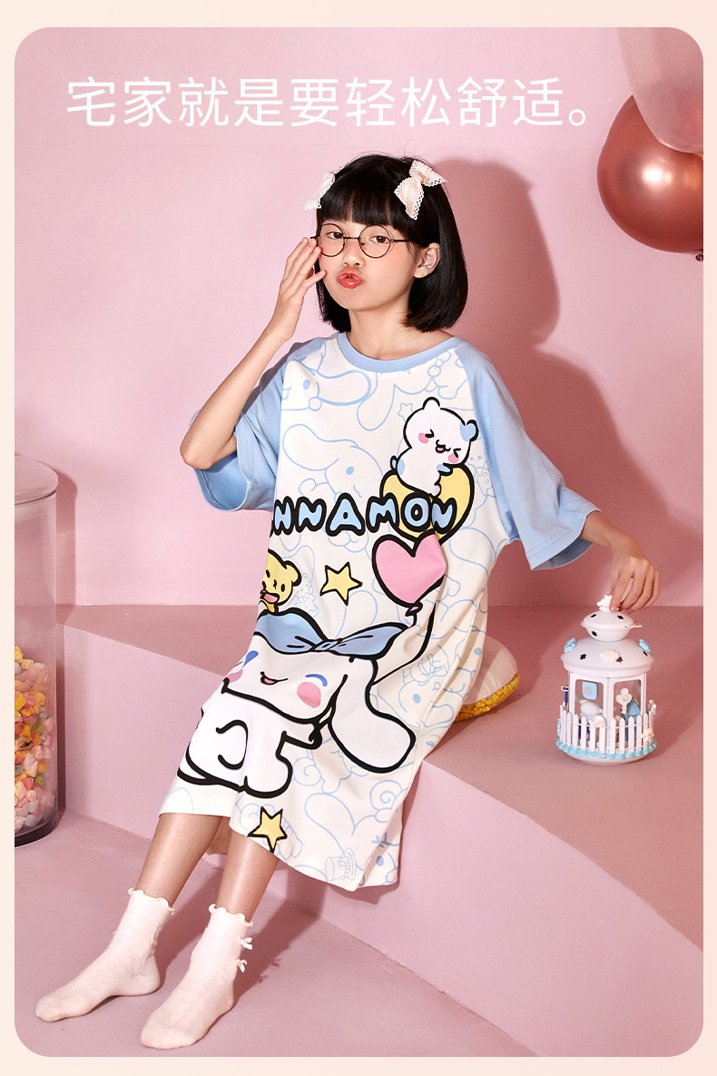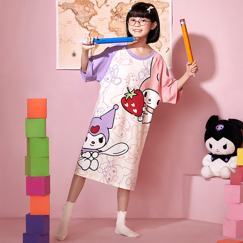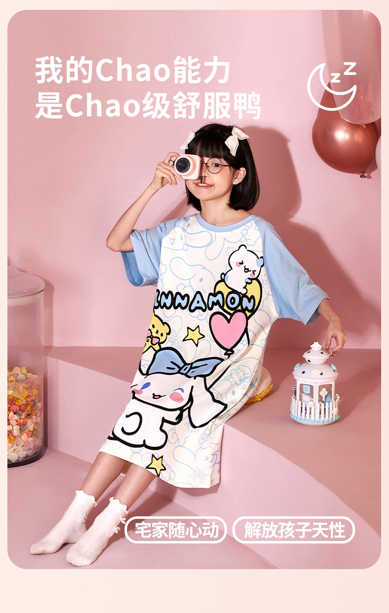 귀여운 만화 소녀 잠옷 반팔 반바지 세트, 중소 및 대형 어린이를위한 여아 집 옷을 풀 수 있습니다스토어 가기