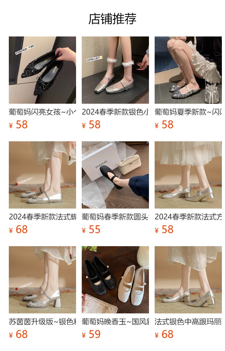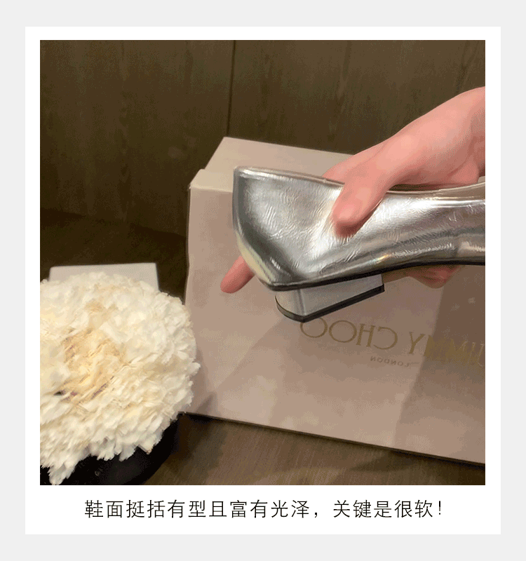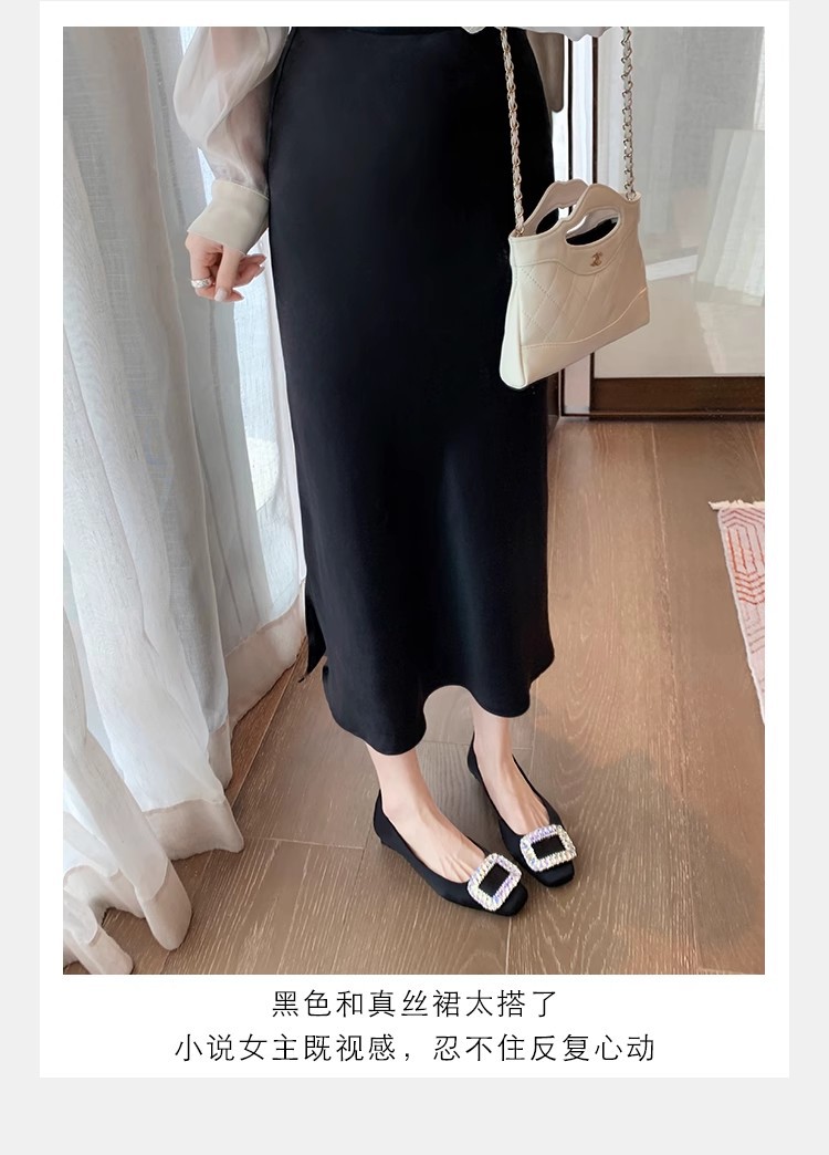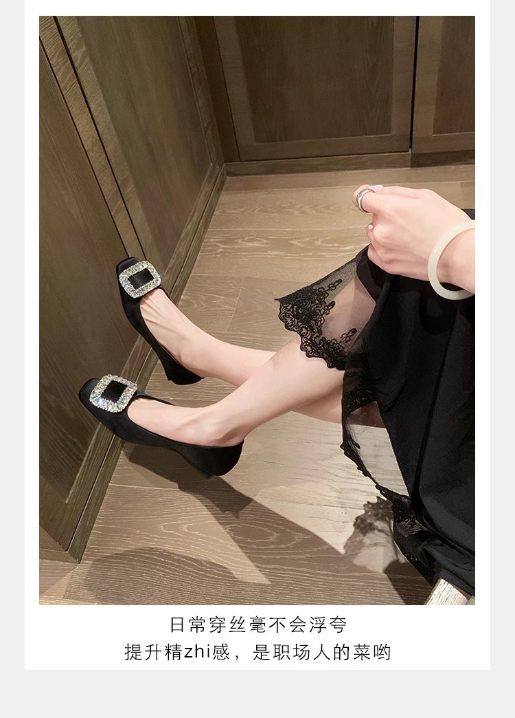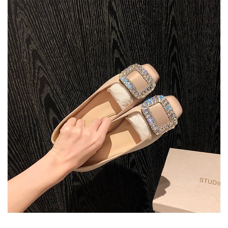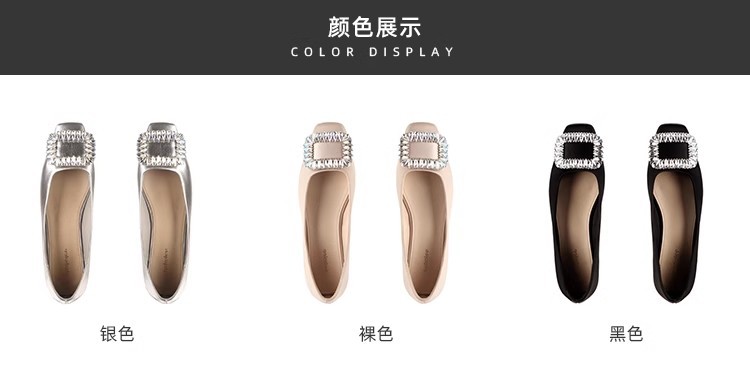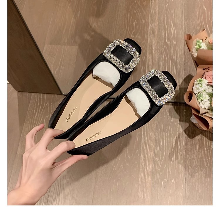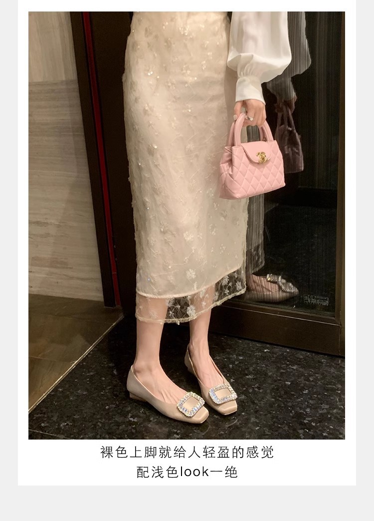 새로운 봄 스타일의 라인스톤 스퀘어토 얕은굽 실버 플랫 슈즈, 부드러운 가죽 소재로 우아한 분위기의 여성 통근화스토어 가기