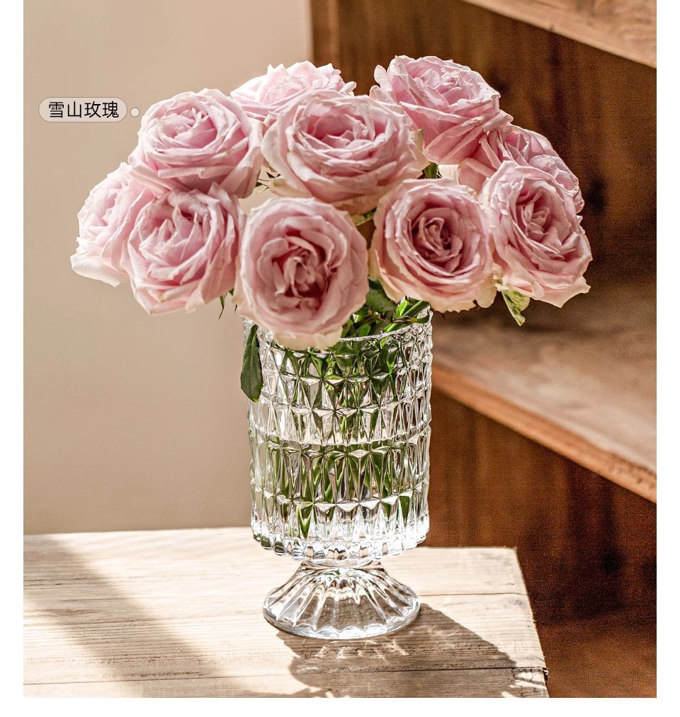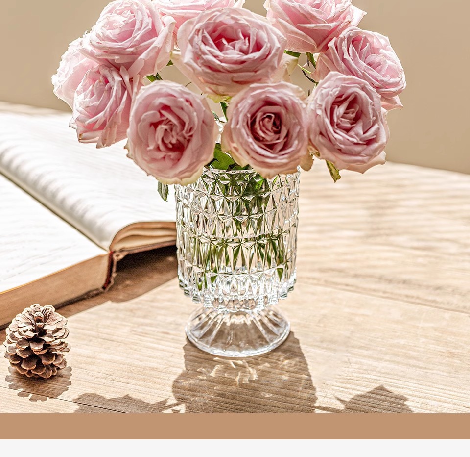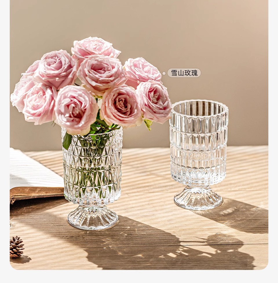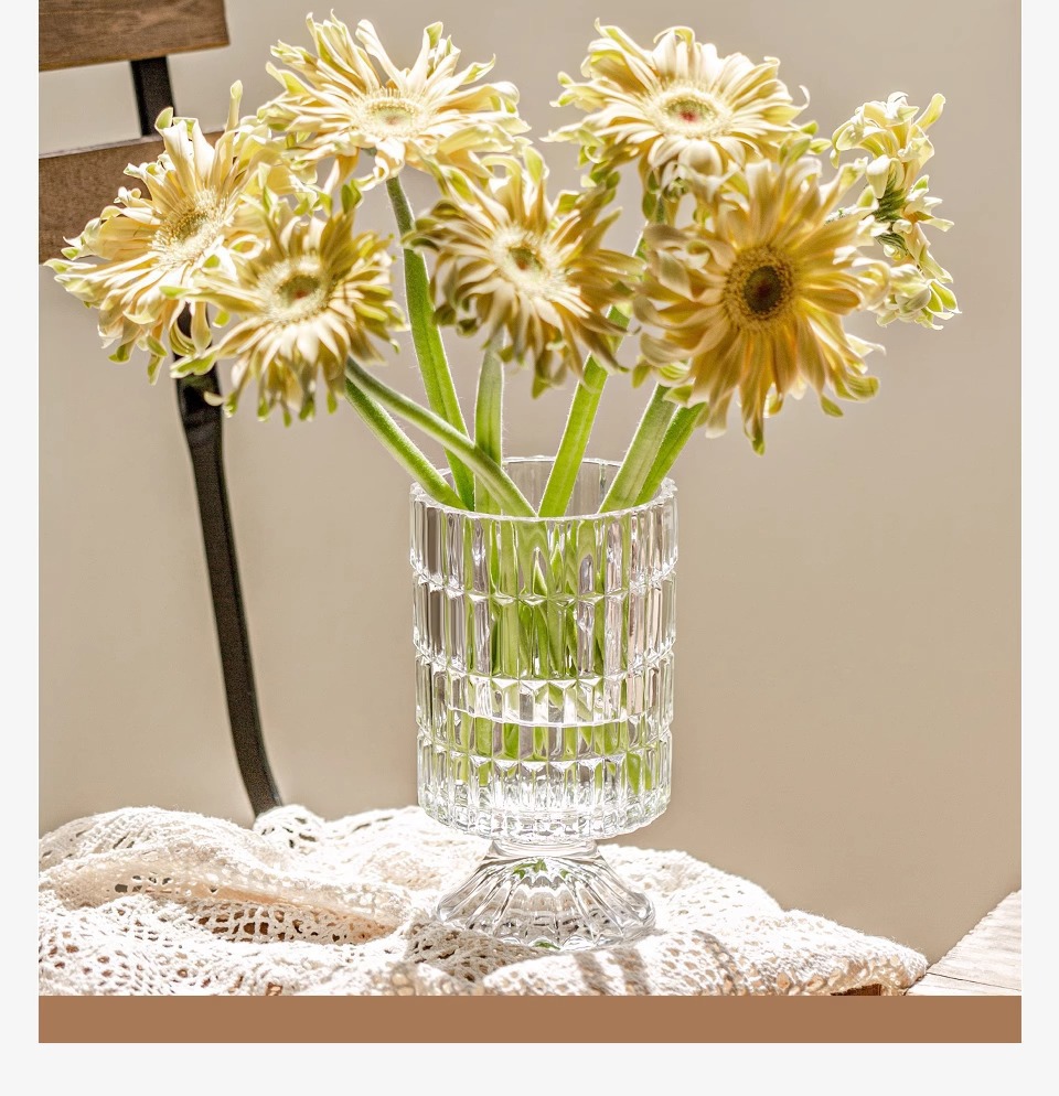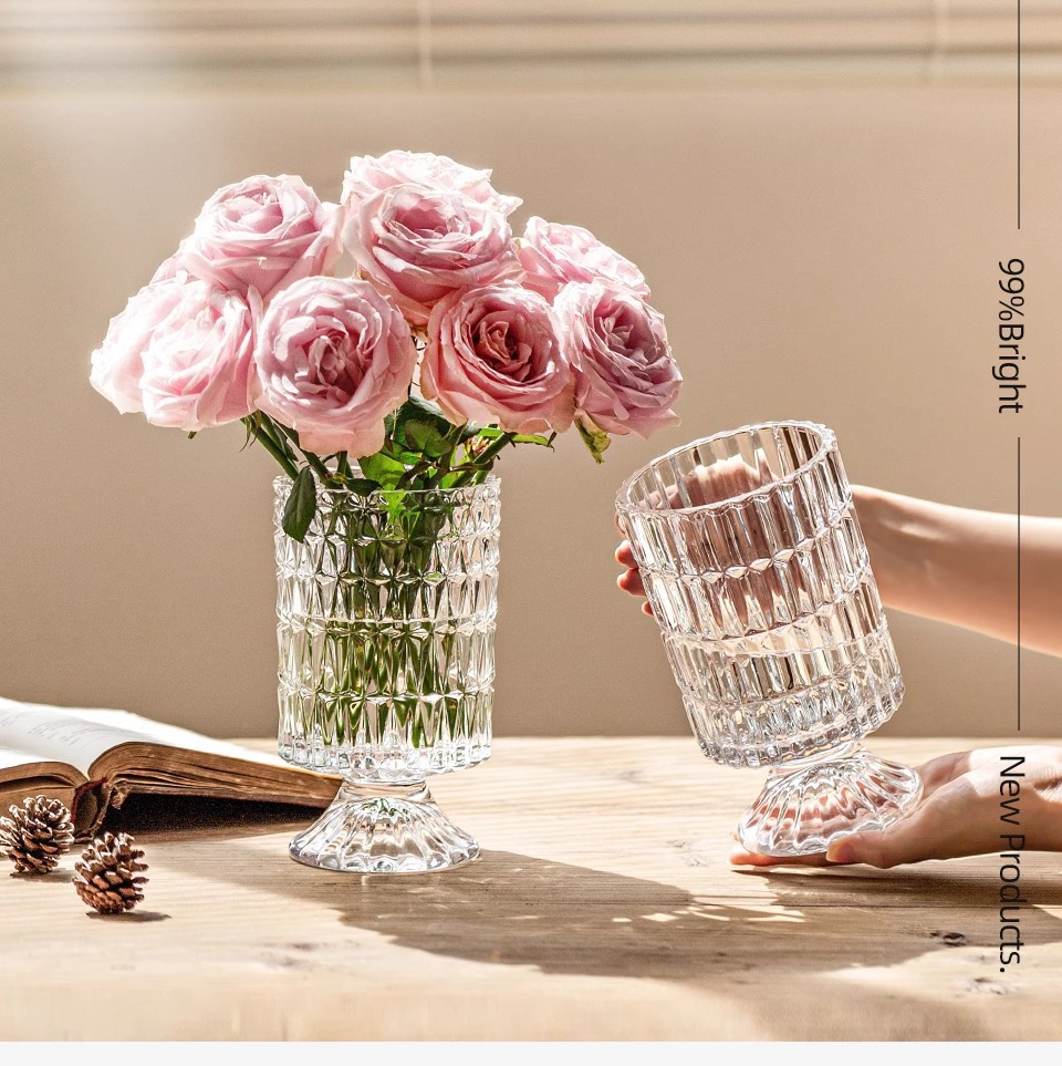 유럽식 투명 패턴 유리 꽃병 높은 발 고급 가정 침실 거실 높은 가치의 수경 장식 장식품스토어 가기
