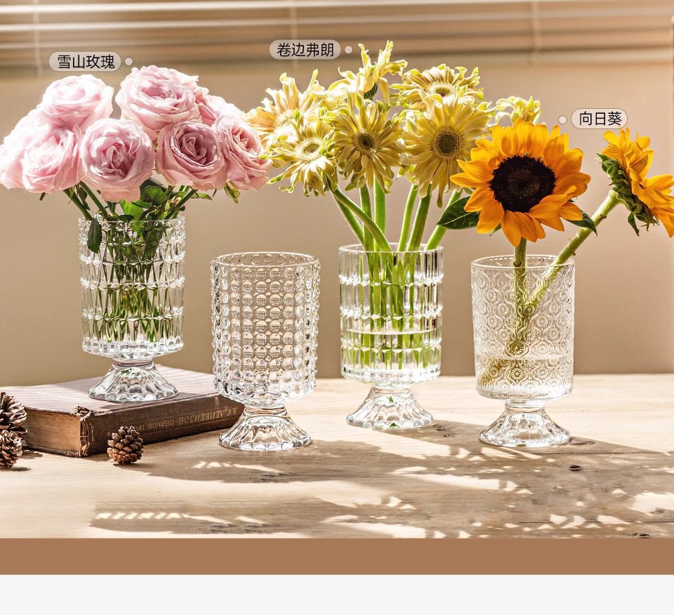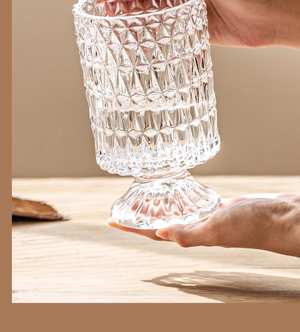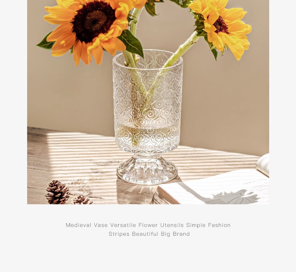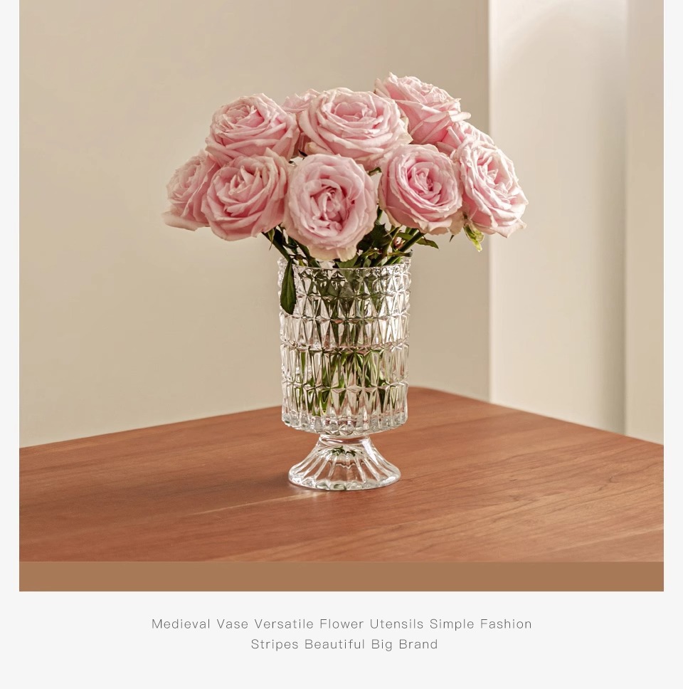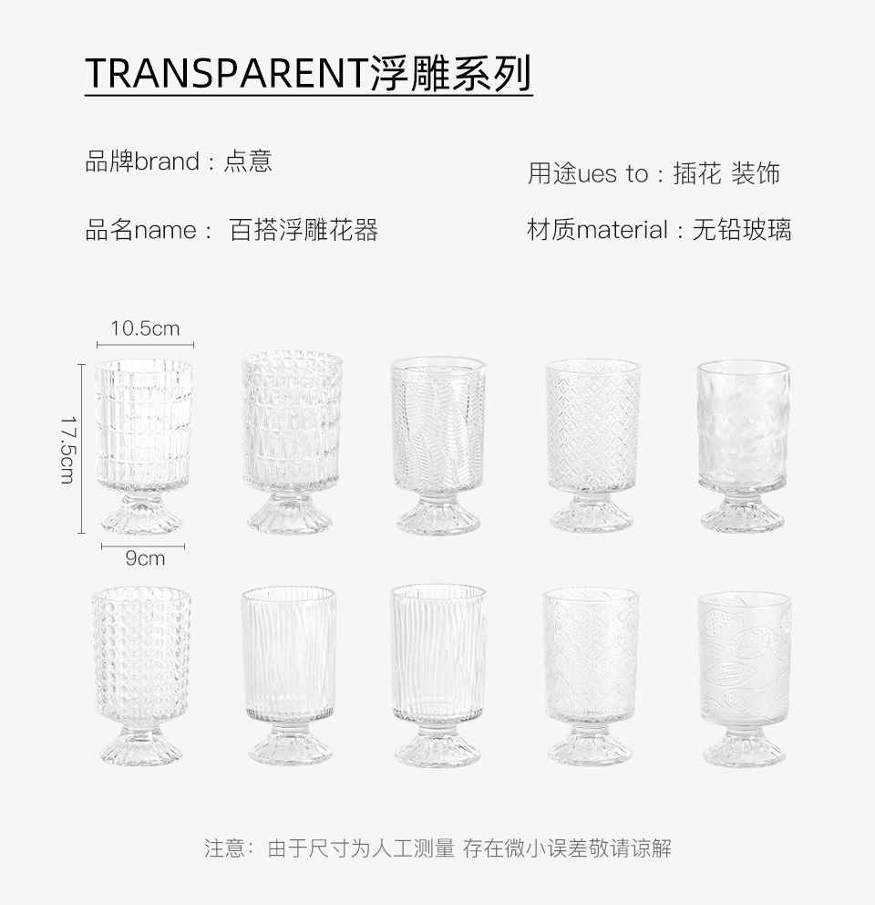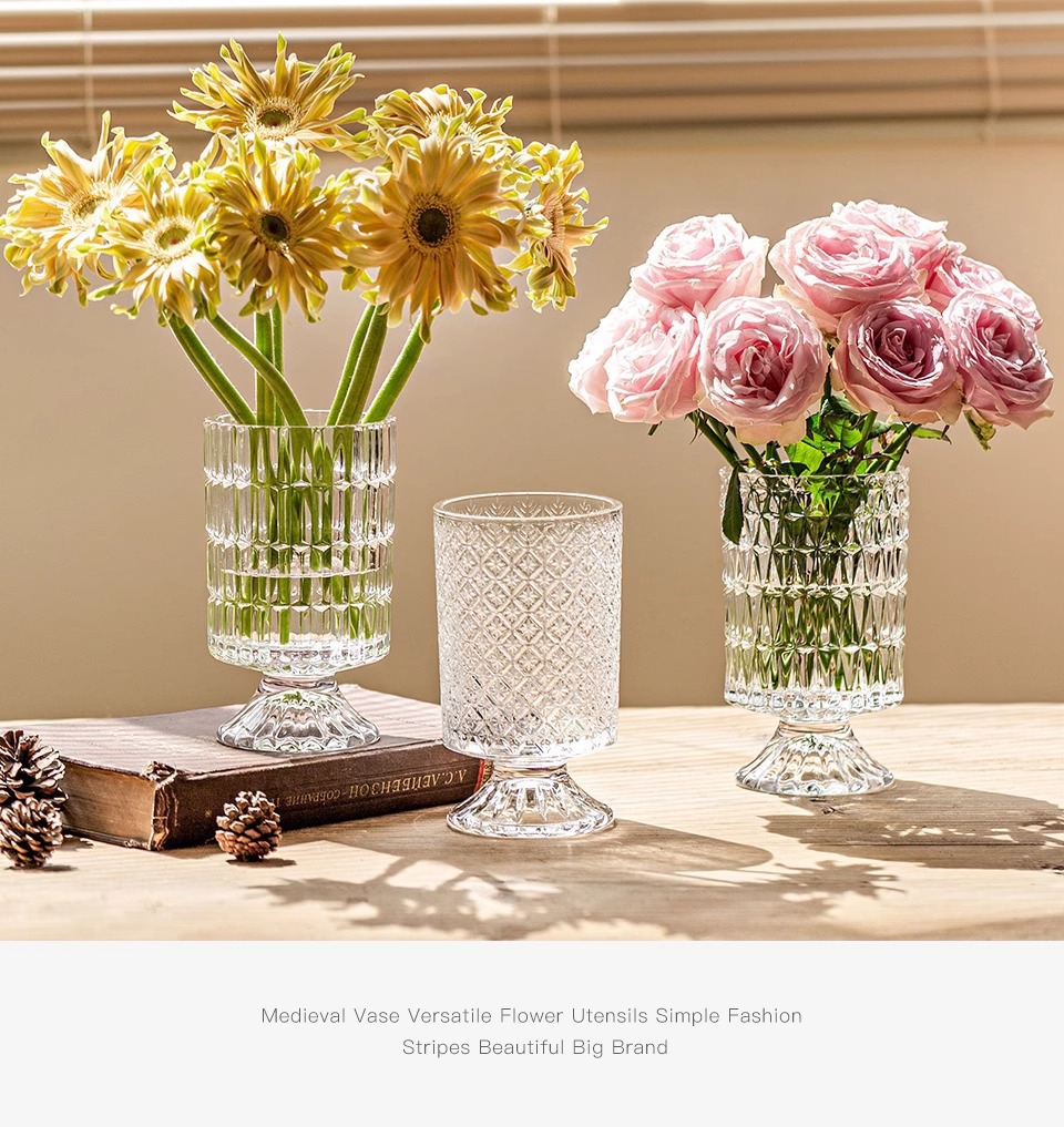 유럽식 투명 패턴 유리 꽃병 높은 발 고급 가정 침실 거실 높은 가치의 수경 장식 장식품스토어 가기