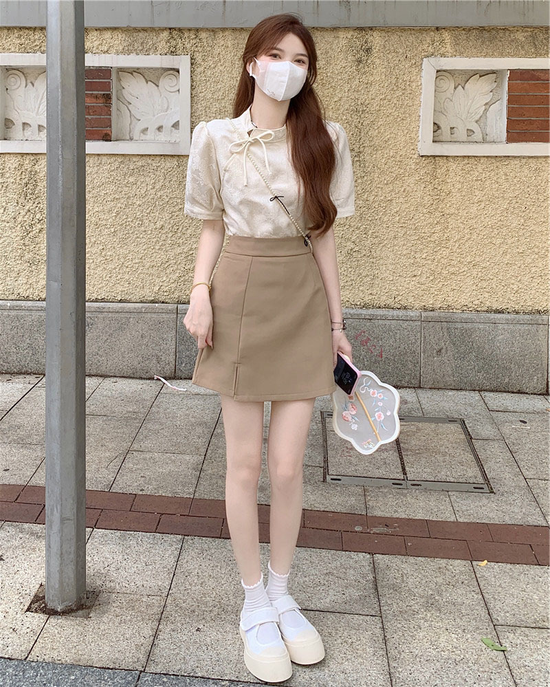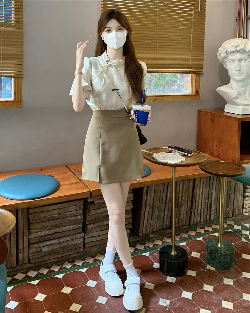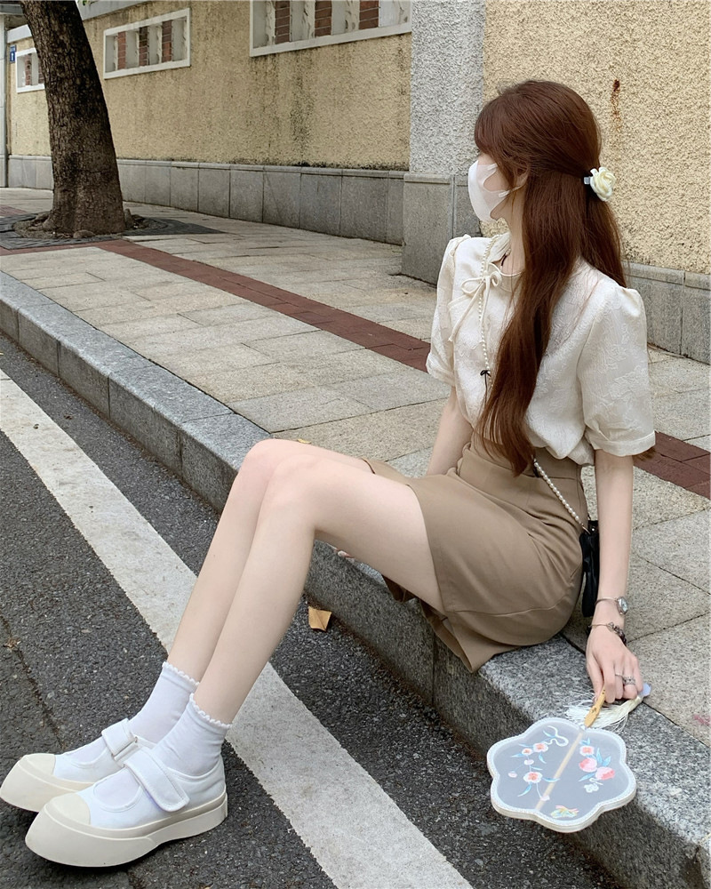 2026년 신상 패셔너블 캐주얼 슈트 스커트, 레트로 홍콩 스타일 셔츠, 차색의 스트리트 스타일, 나이를 줄여주는 힙 스커트, 여성용 투피스 세트