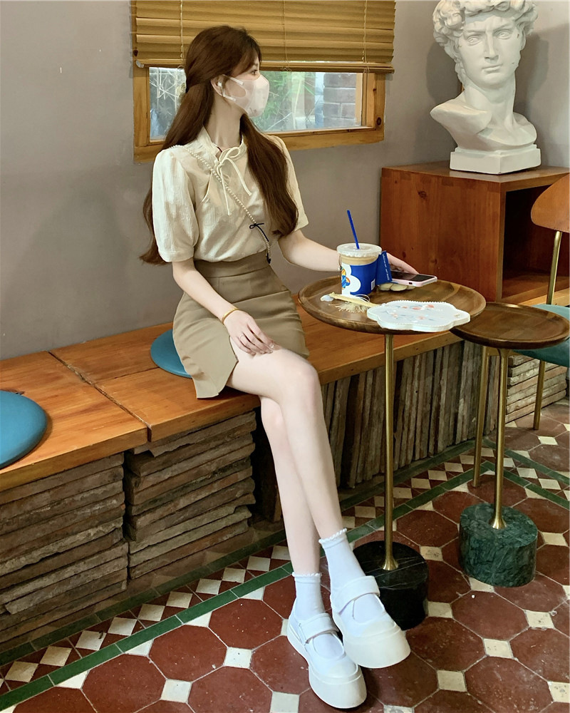 2026년 신상 패셔너블 캐주얼 슈트 스커트, 레트로 홍콩 스타일 셔츠, 차색의 스트리트 스타일, 나이를 줄여주는 힙 스커트, 여성용 투피스 세트스토어 가기