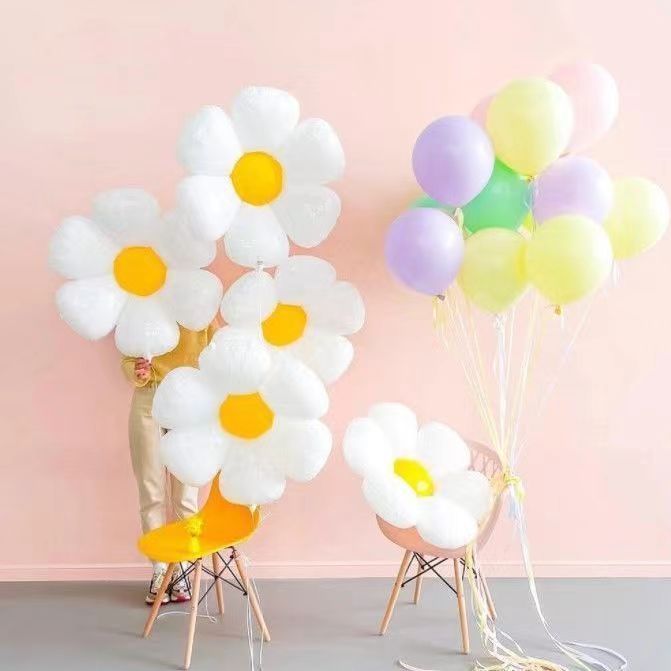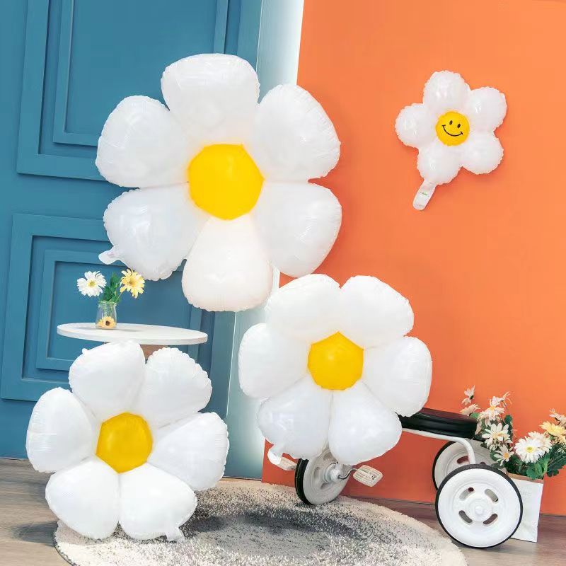 데이지 풍선 웃는 얼굴 해바라기 생일 파티 장식 알루미늄 필름 사진 소품 장면 배치 창의적 아이디어