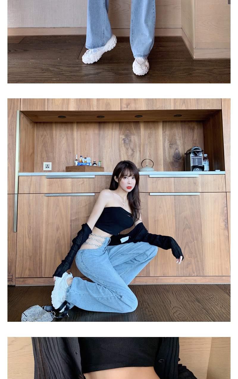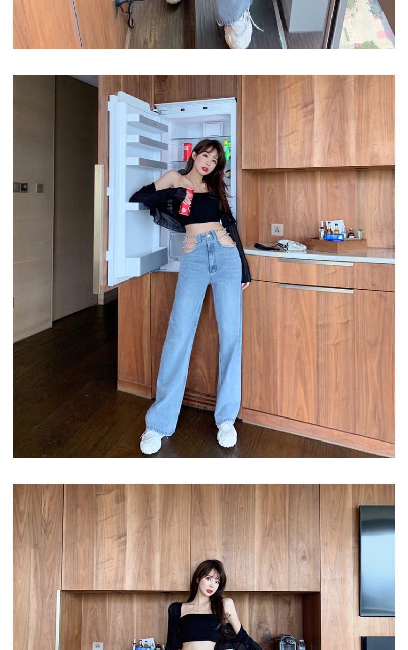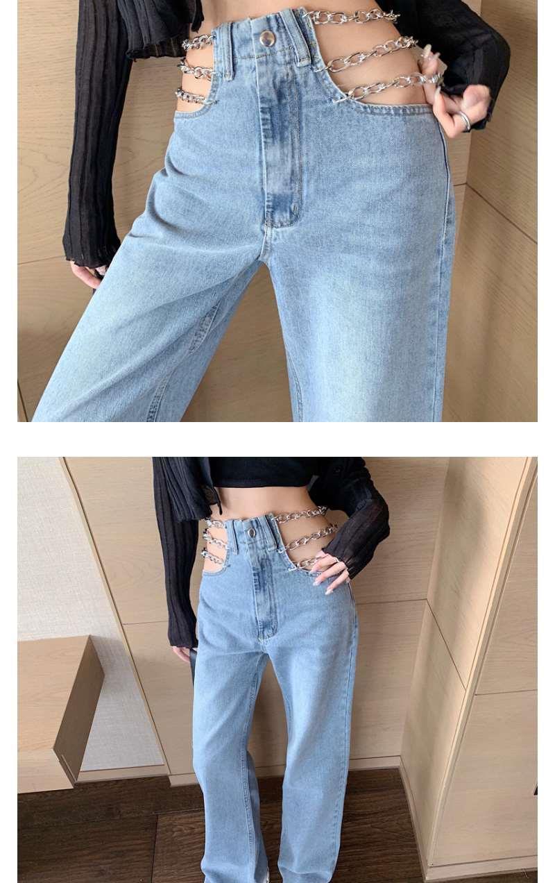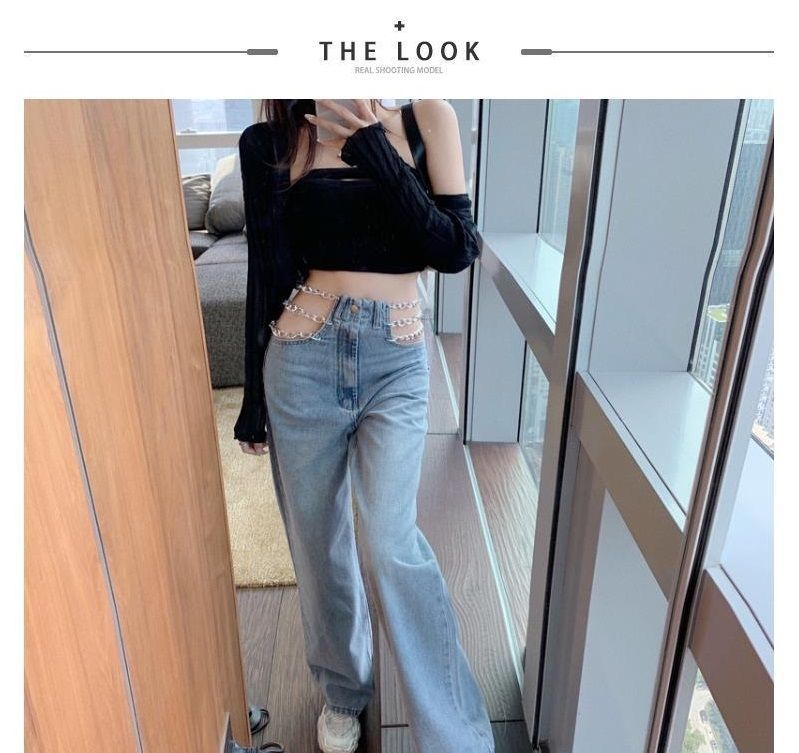 디자인 센스 체인 높은 허리 빈 섹시한 느슨한 스트레이트 청바지 여성의 봄 한국 스타일 뜨거운 소녀 넓은 다리 트렌디 바지스토어 가기
