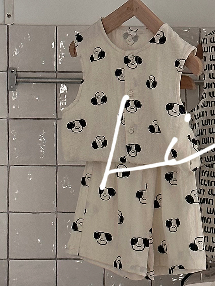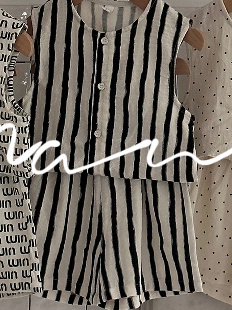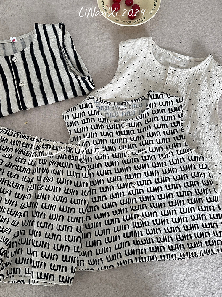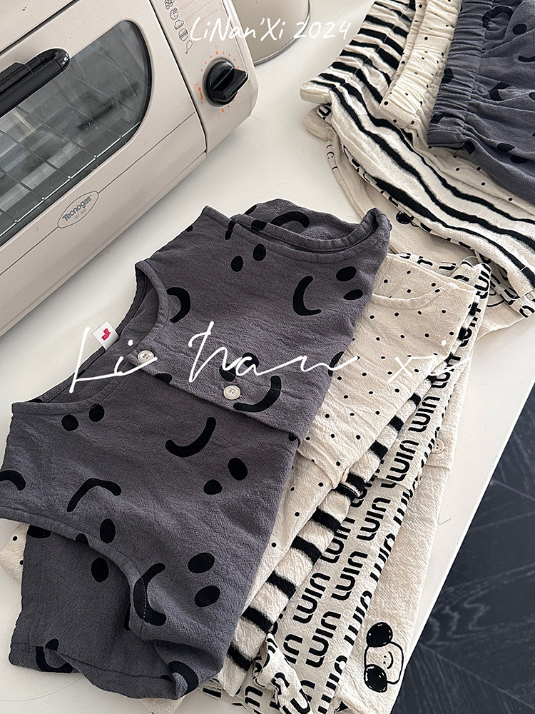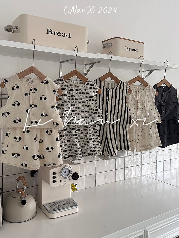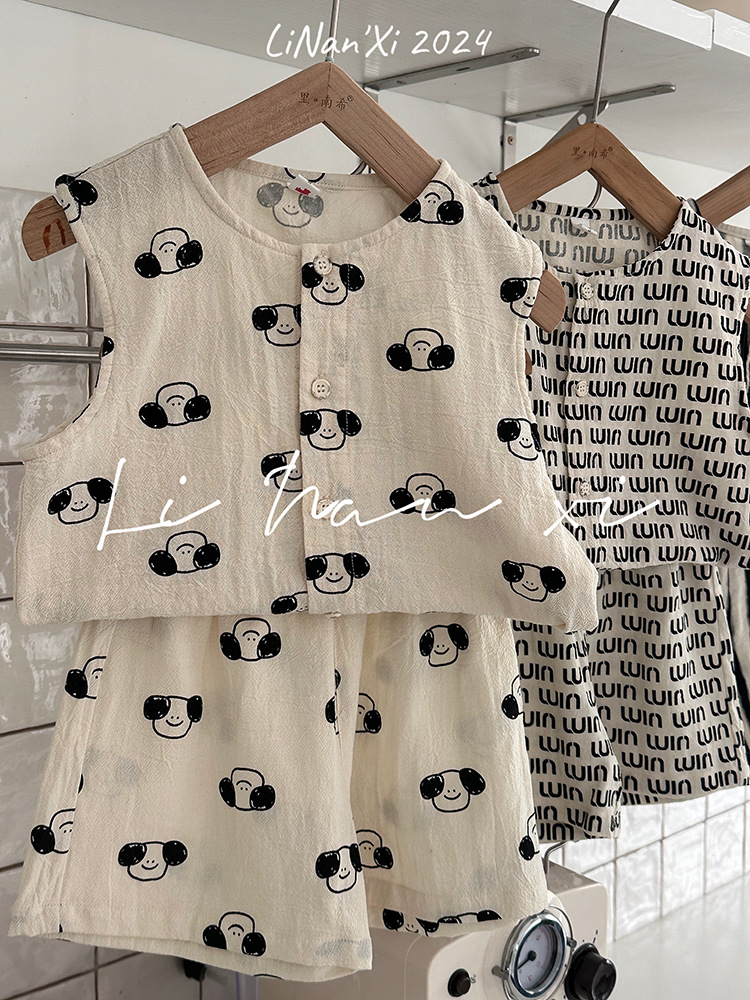남아복 세트 26 여름 신상품 면 린넨풍 인스타 스타일 투피스 세트 3-8세 아기 민소매 상의와 중간기장 바지스토어 가기