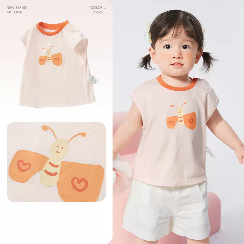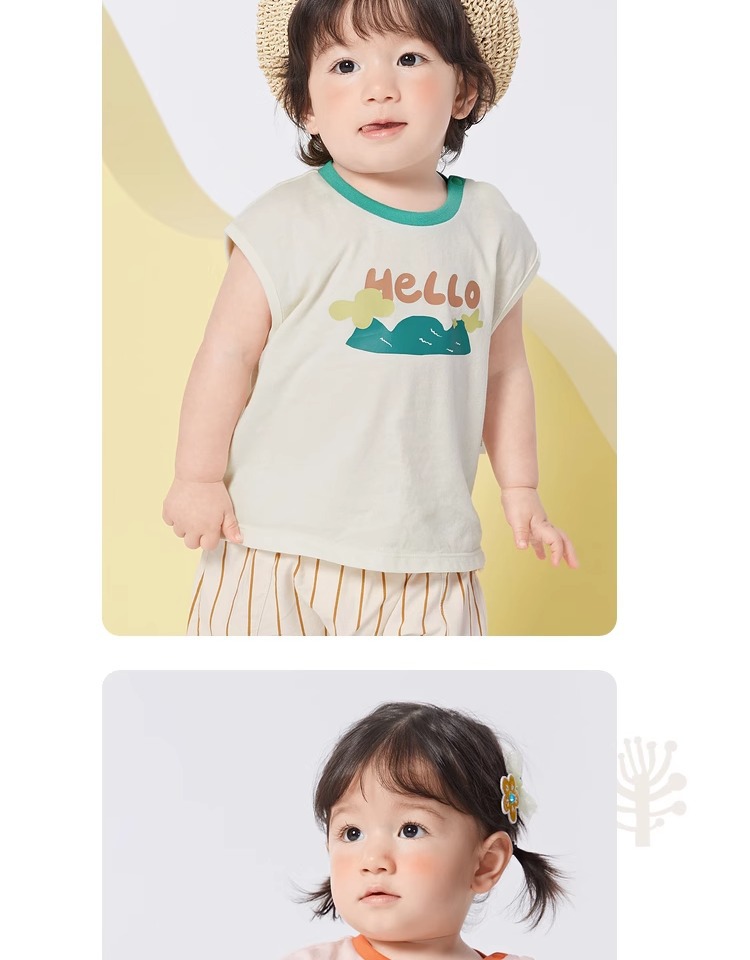 아기 조끼 아기 면화 민소매 남성용 여름복 소년 조끼 여학생 반팔 티셔츠 슬링 아우터웨어 귀여운