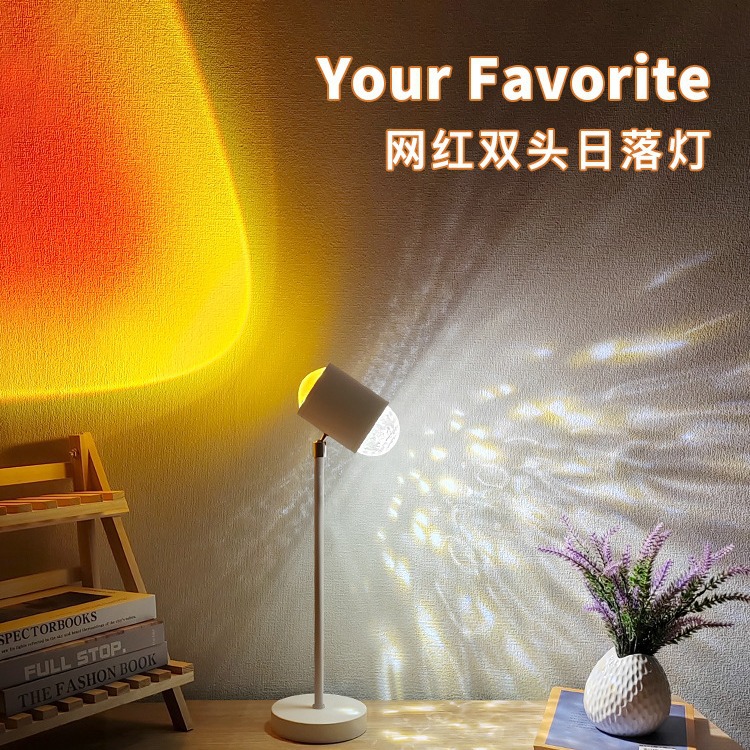 물 리플 분위기 램프 그물 레드 더블 헤드 일몰 테이블 램프 거실 침실 스튜디오 배경 일몰 테이블 램프스토어 가기