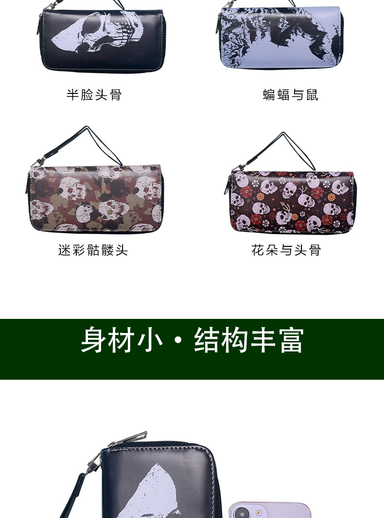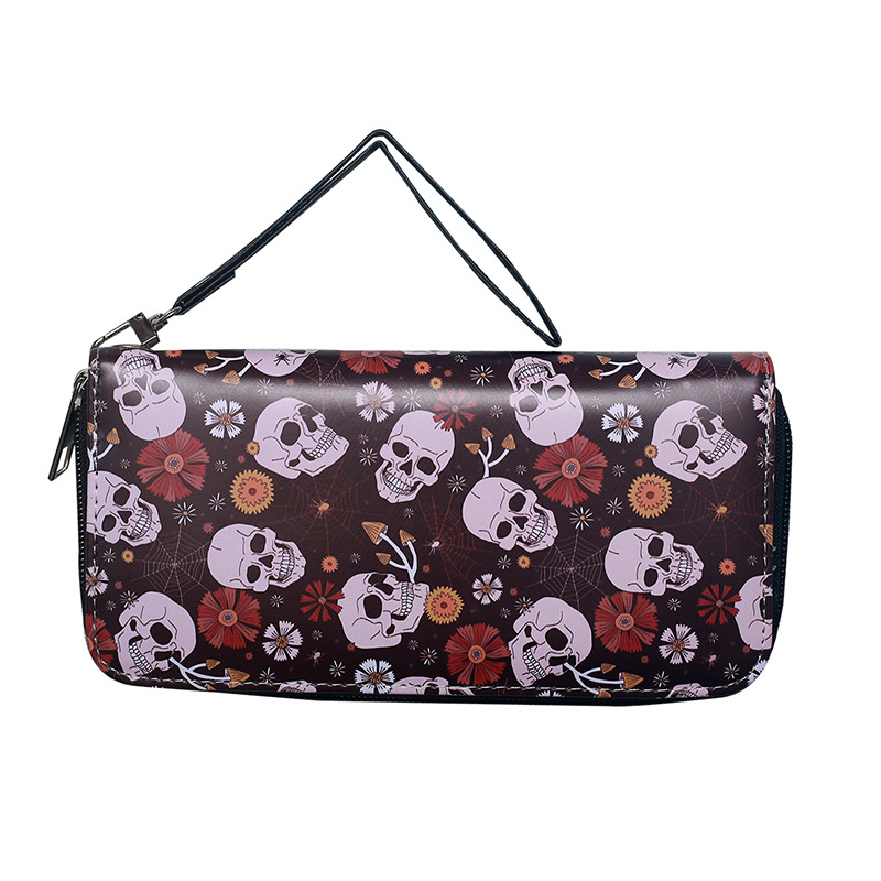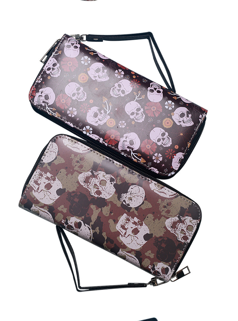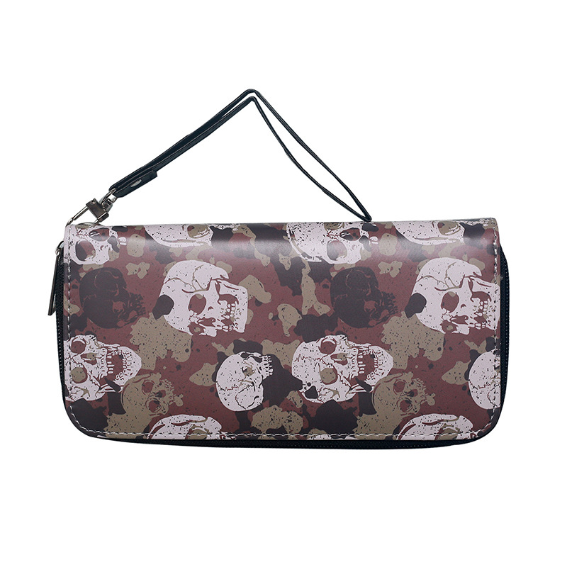 국경 간 독립 역 지갑 빈티지 두개골 맞춤형 남성 및 여성 지갑 긴 지퍼 대용량 지갑스토어 가기