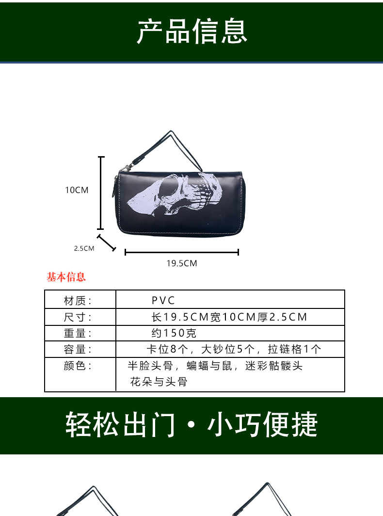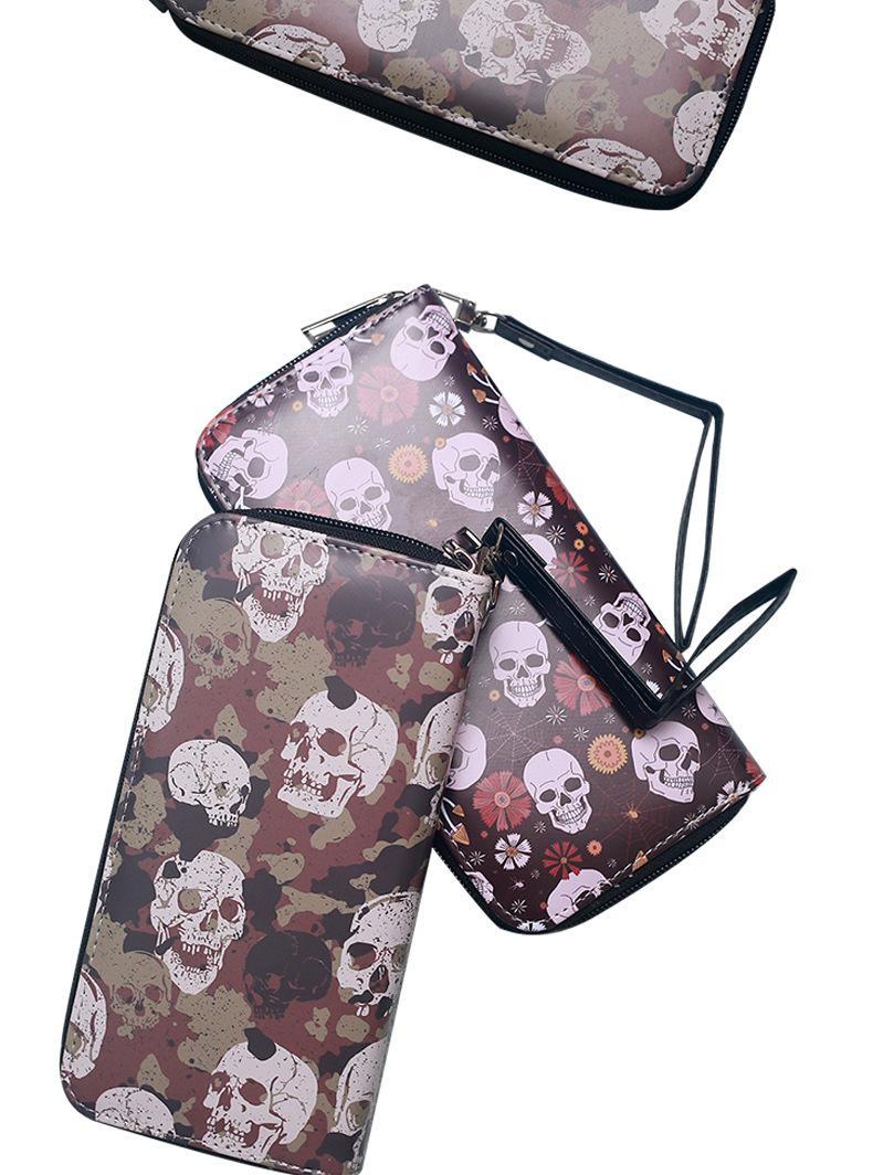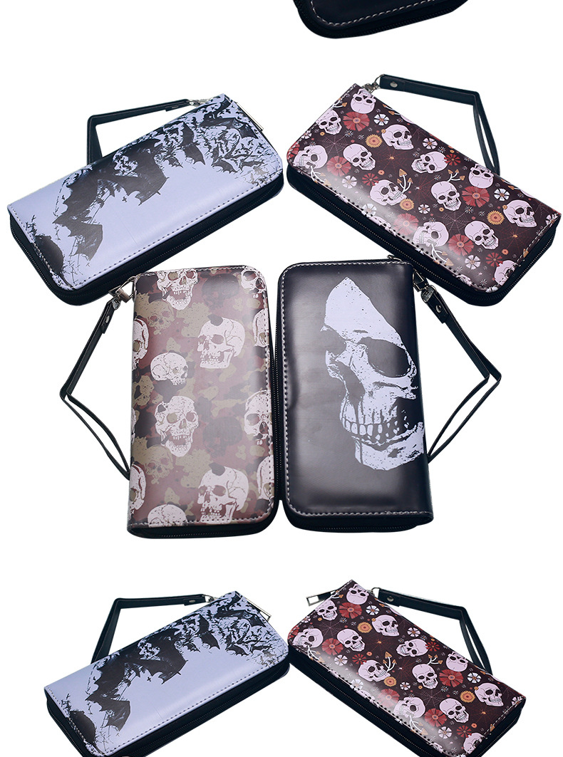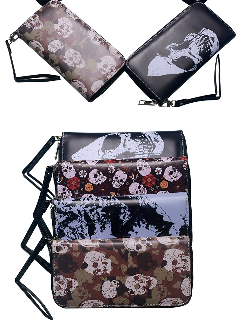 국경 간 독립 역 지갑 빈티지 두개골 맞춤형 남성 및 여성 지갑 긴 지퍼 대용량 지갑스토어 가기