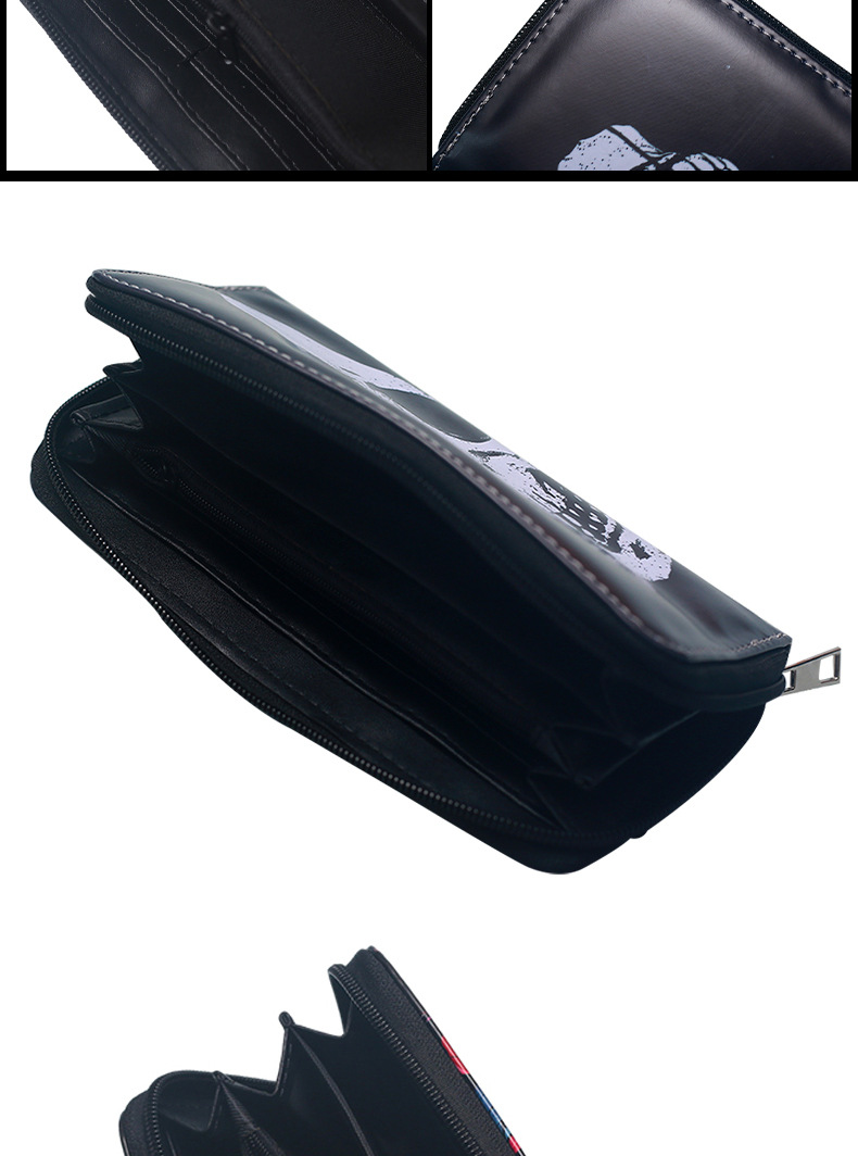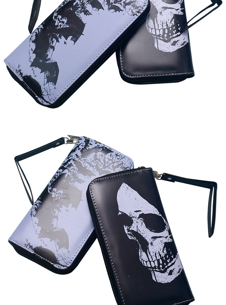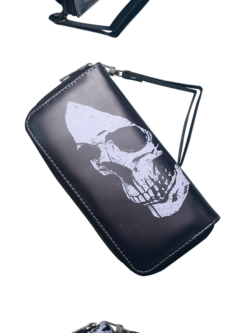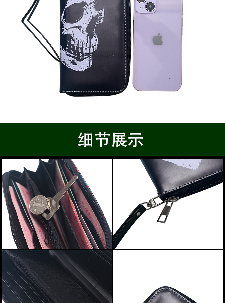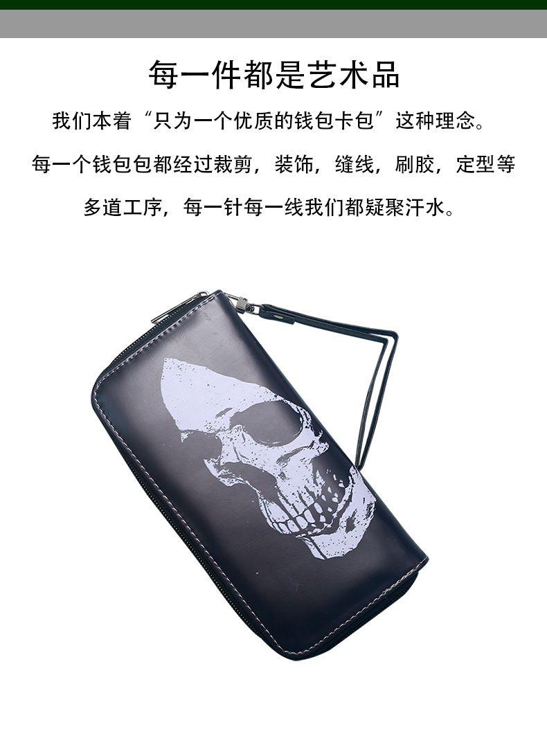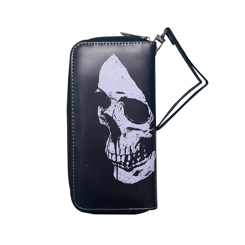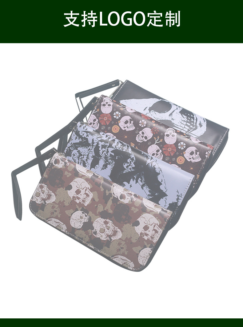 국경 간 독립 역 지갑 빈티지 두개골 맞춤형 남성 및 여성 지갑 긴 지퍼 대용량 지갑