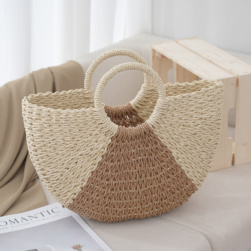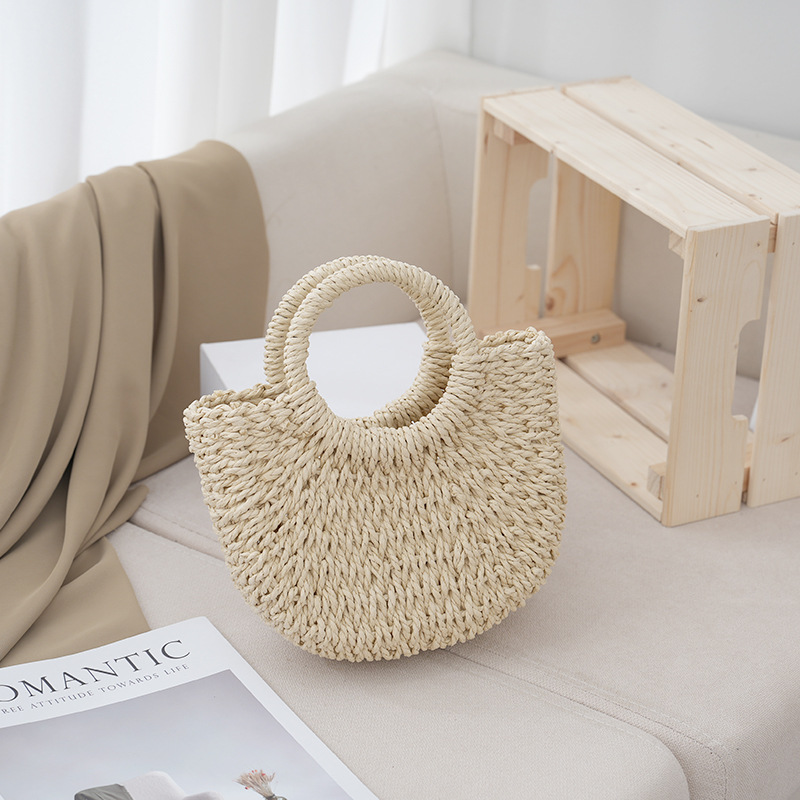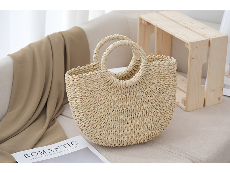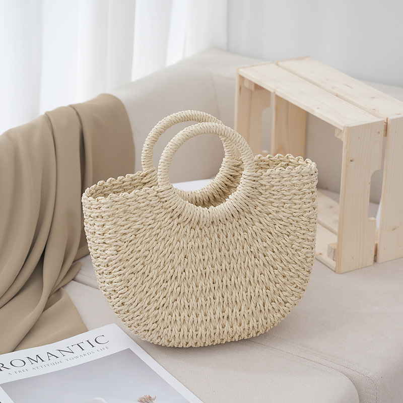 밀짚 가방 짠 가방 패션 밀짚 짠 가방 새 해변 가방 소년과 소녀 선물 가방 리본스토어 가기