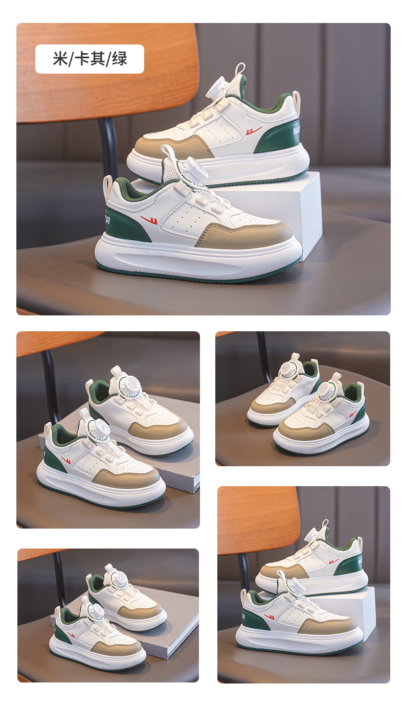 Huili 어린이 신발 어린이 버튼 운동화 2024 봄과 가을 새로운 가죽 방수 운동화 경량 소년 운동화스토어 가기