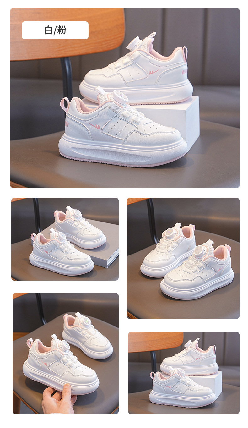 Huili 어린이 신발 어린이 버튼 운동화 2024 봄과 가을 새로운 가죽 방수 운동화 경량 소년 운동화