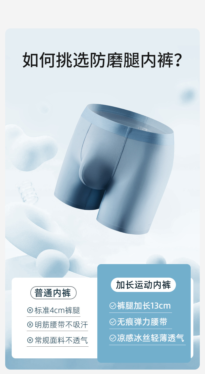 남성용 아이스 실크 스포츠 레깅스 팬티, 긴 다리 팬티, 무봉제 플랫 팬티, 엑스트라 롱