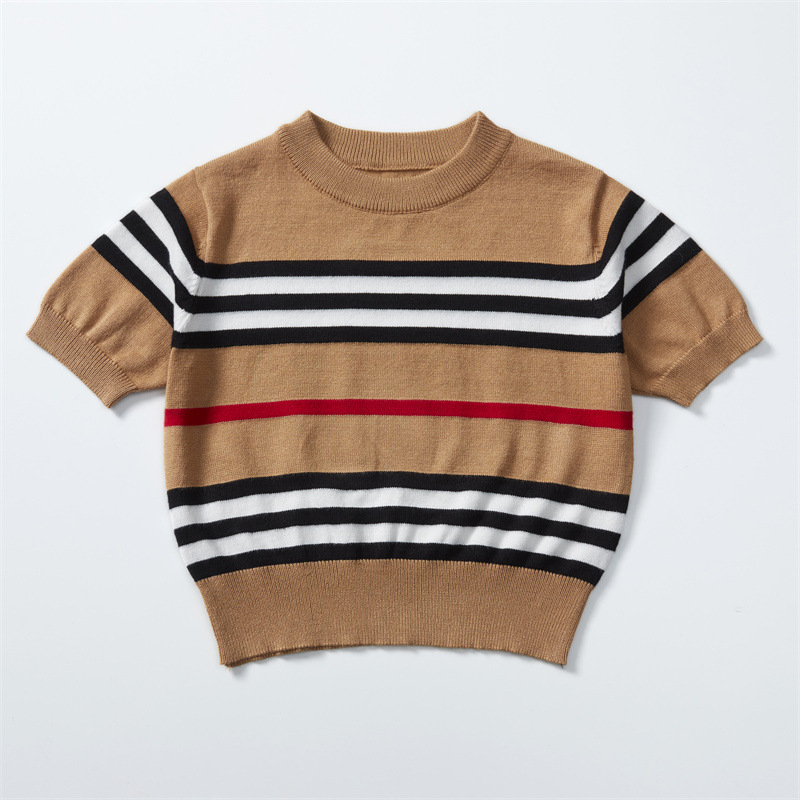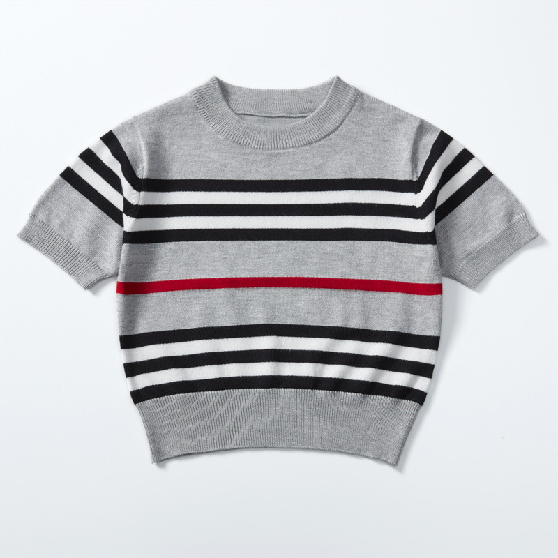시의원 새 여름 반팔 니트웨어 어린이 크루 넥 스트라이프 풀오버 패셔블 올매치 베이스 셔츠