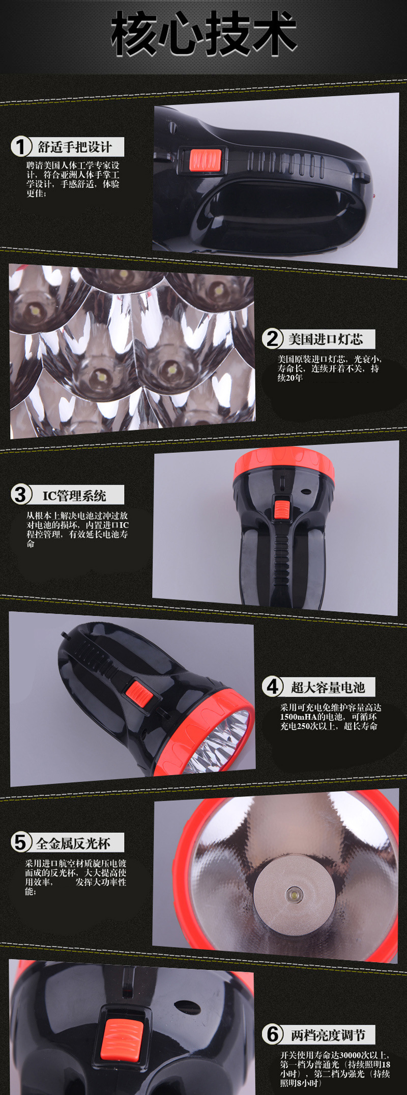 충전식 손전등 휴대용 램프 탐조등 플라스틱 광부의 램프 장거리 야외 순찰 비상 공장 도매스토어 가기