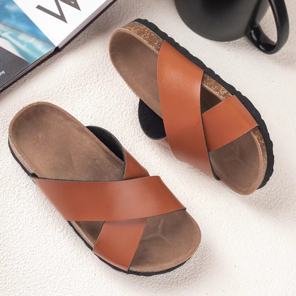 2024년 여름 모델 크로스 플랫 샌들, 캐주얼한 코르크 밑창, 다용도 남녀 아동화, 여름 스타일