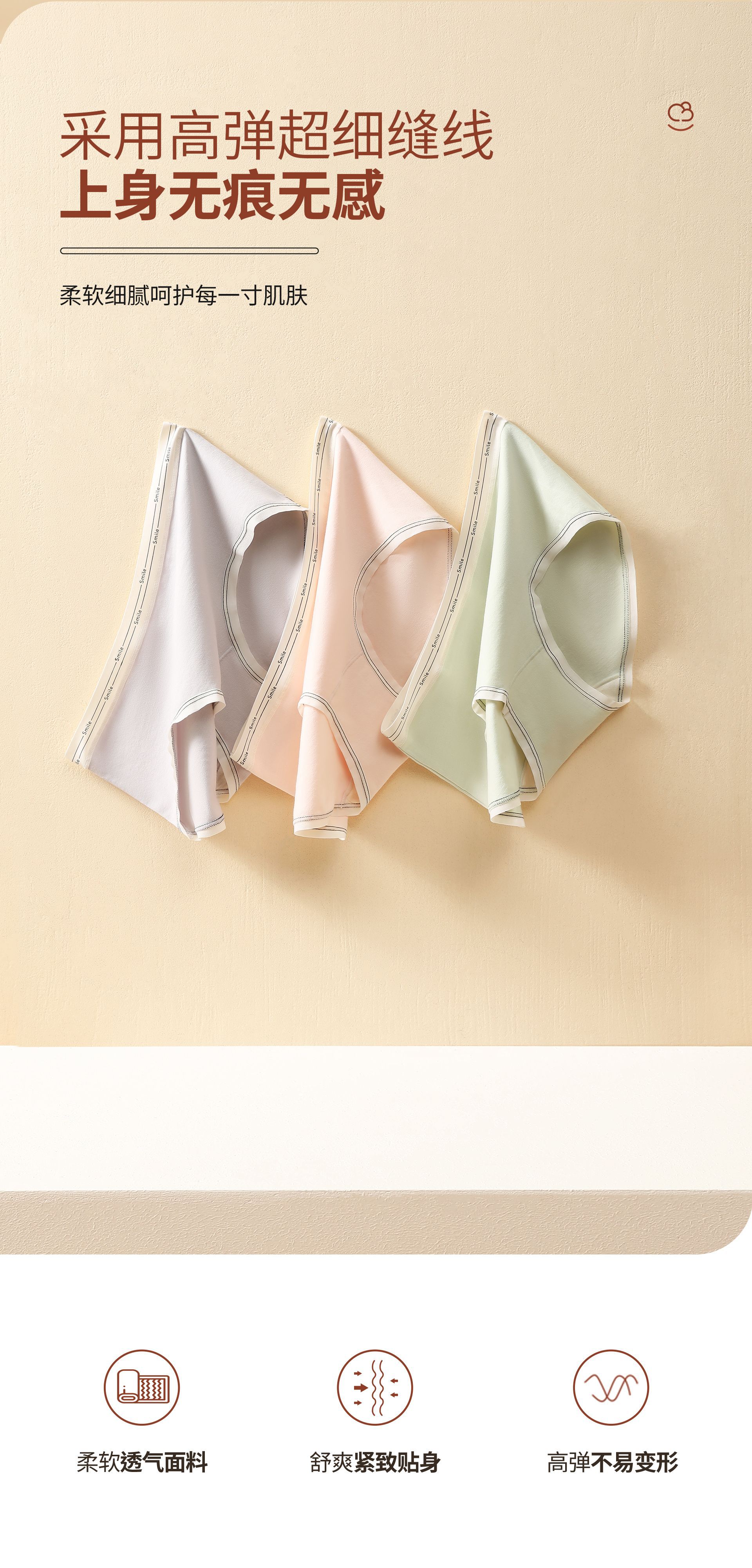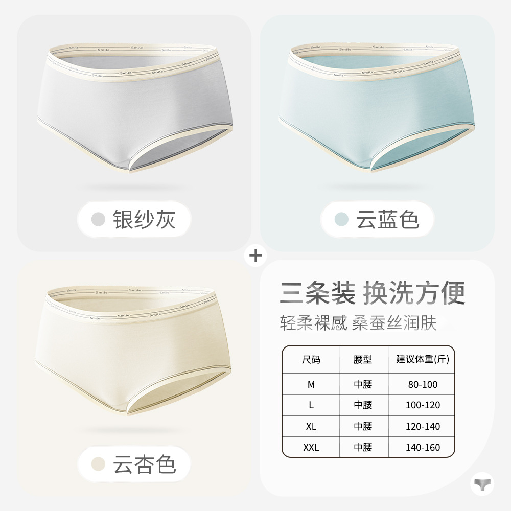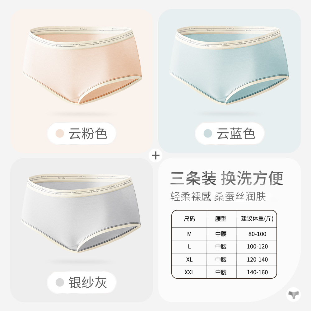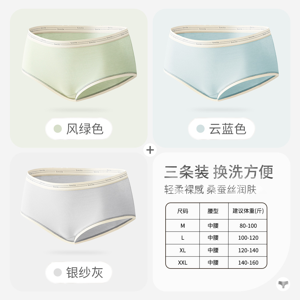 女士纯棉内裤女桑蚕丝抗菌裆大码中腰透气纯色三角短舒适无痕裤头