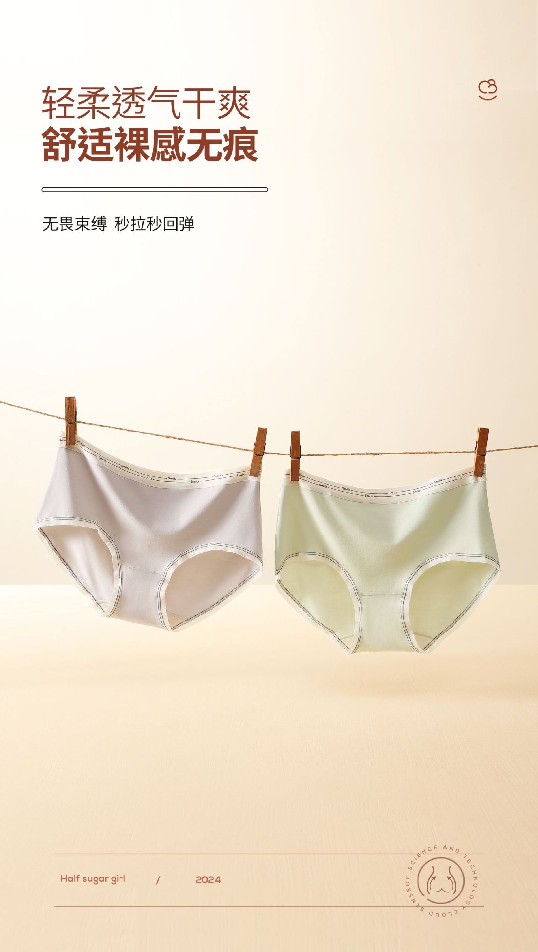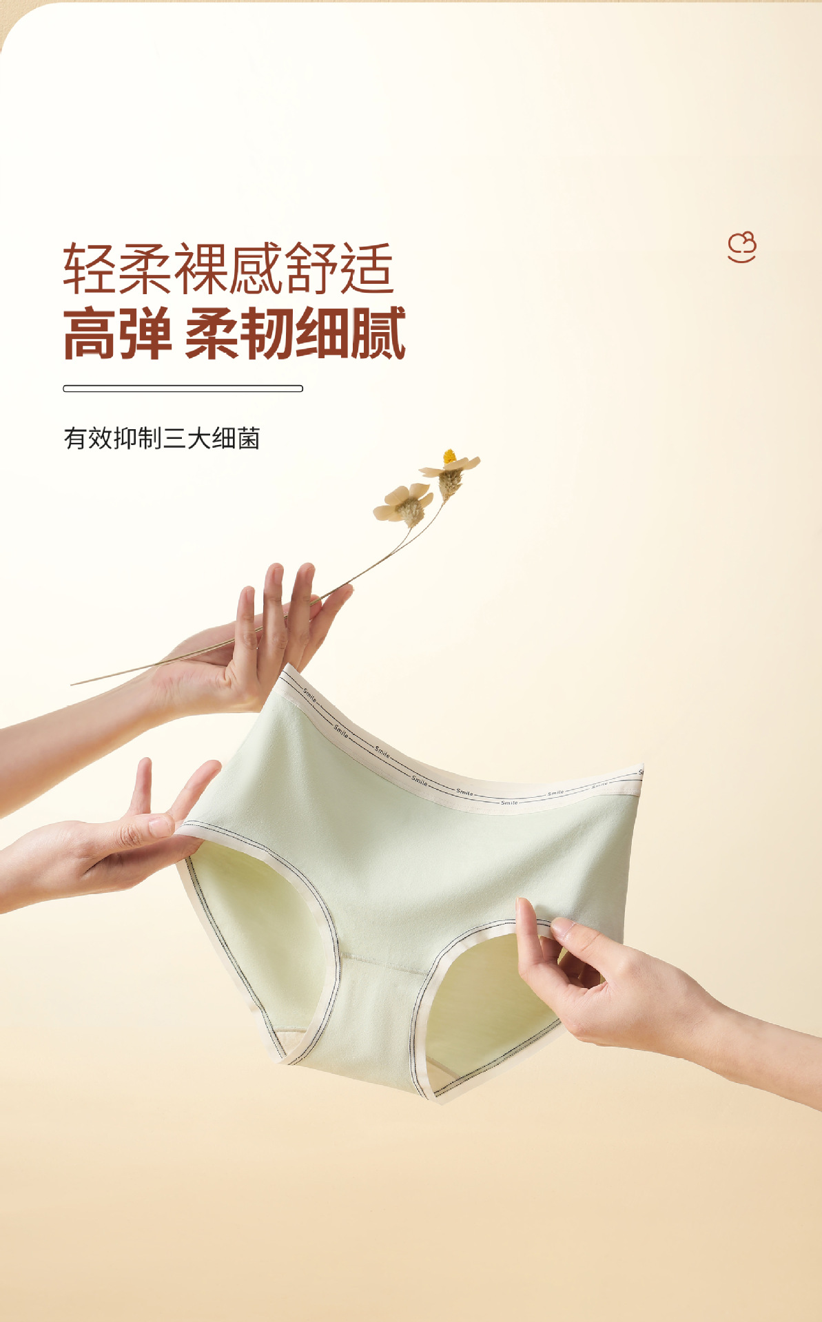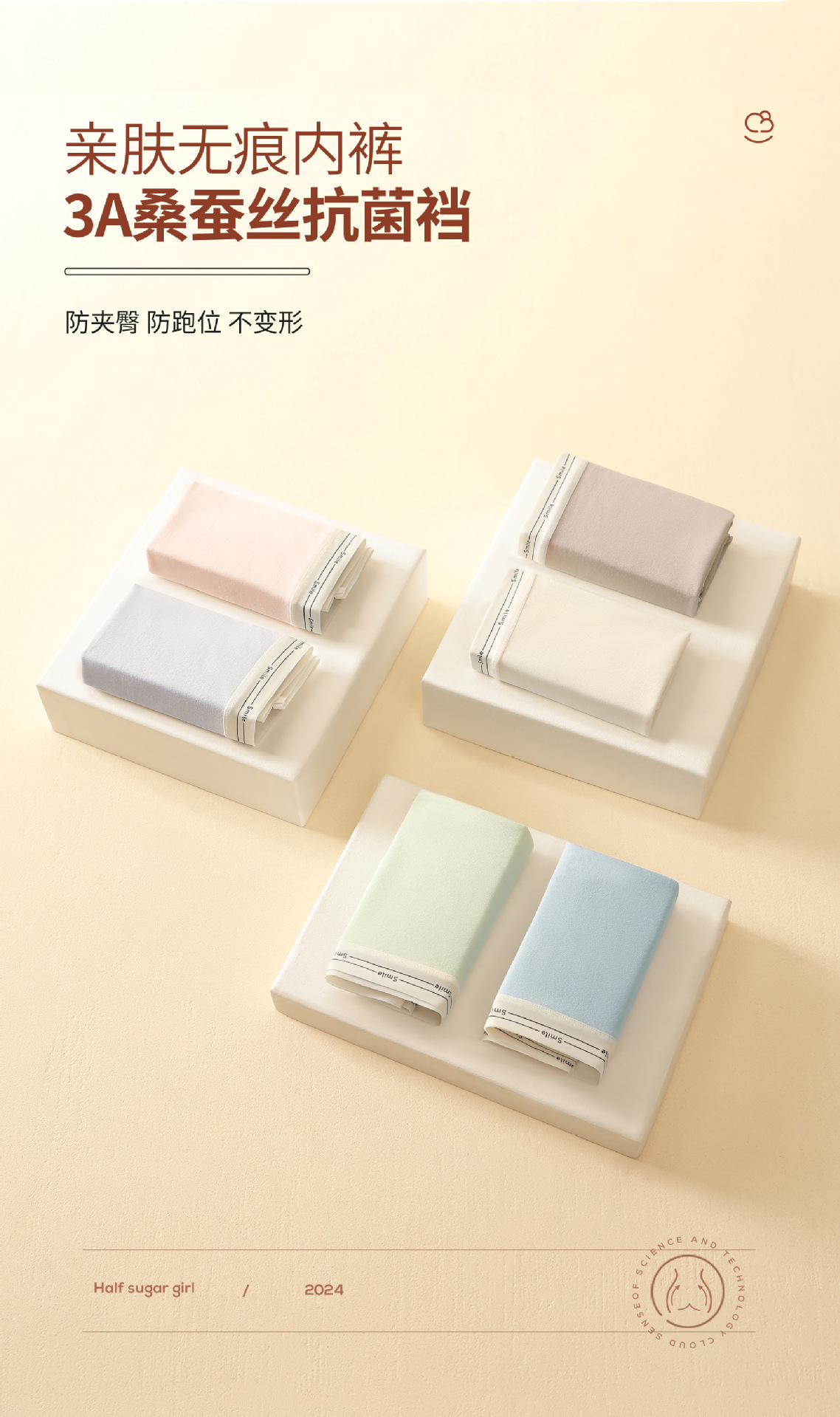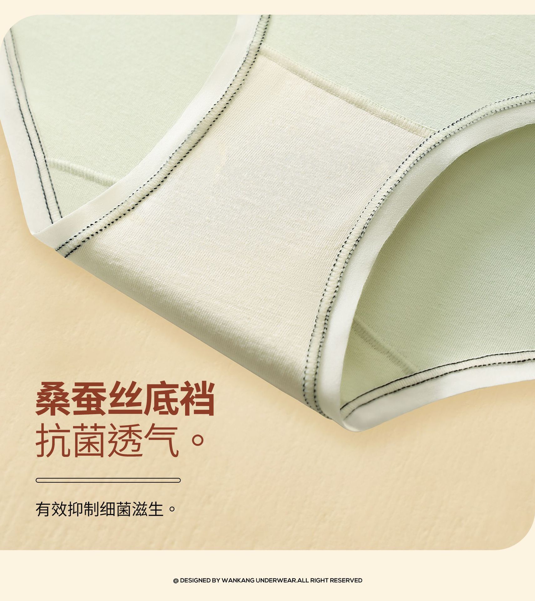 女士纯棉内裤女桑蚕丝抗菌裆大码中腰透气纯色三角短舒适无痕裤头