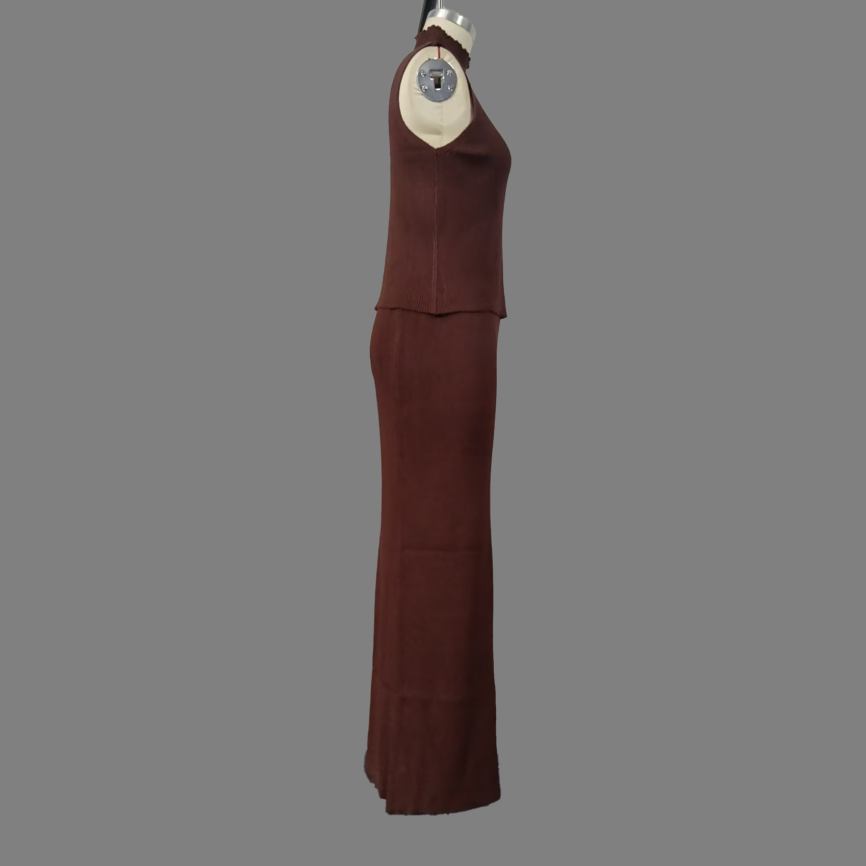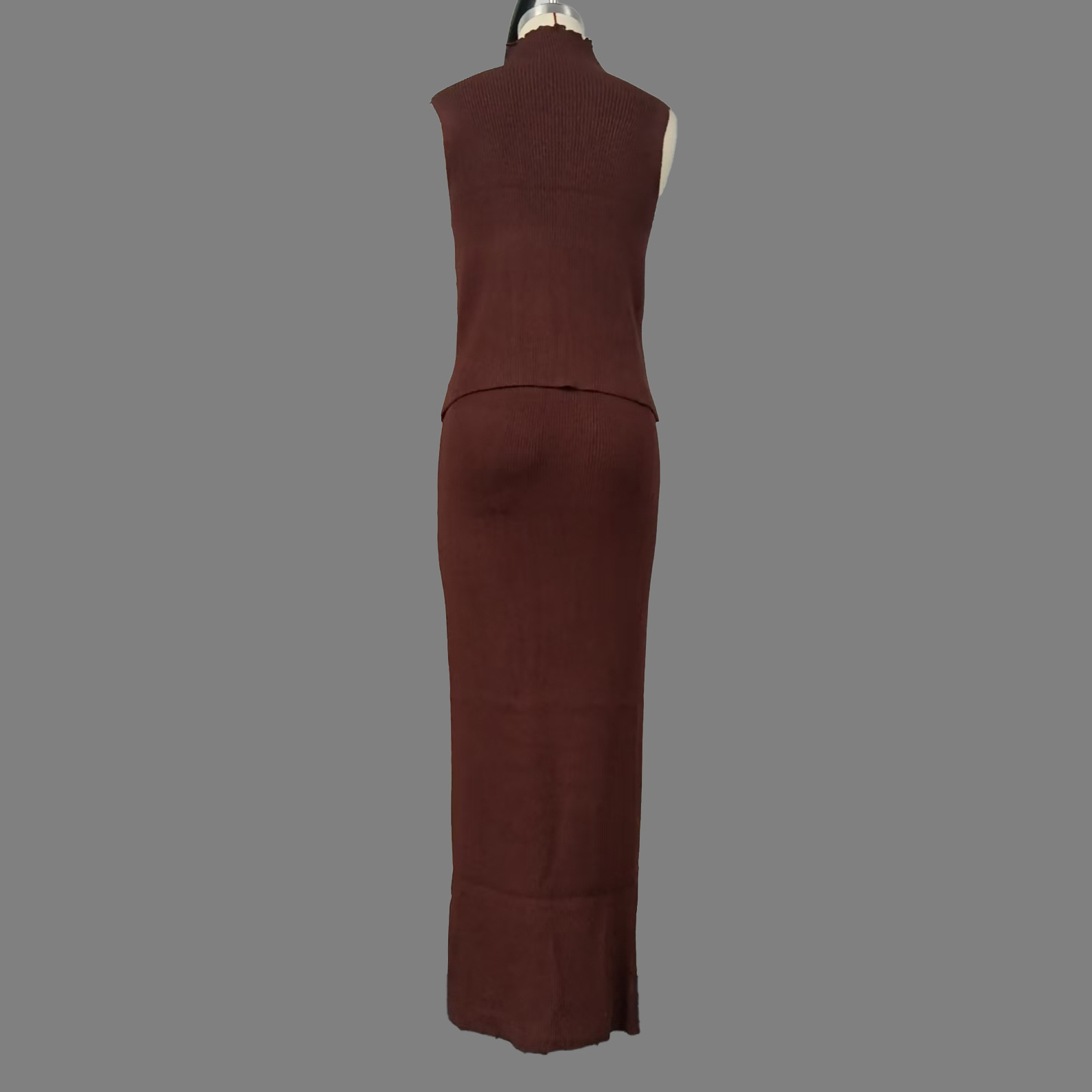 그린 스타일 프렌치 투피스 세트, 달콤하고 시크한 니트 하이넥 탱크탑과 스커트 세트, 여성용 디자인 여름 스타일