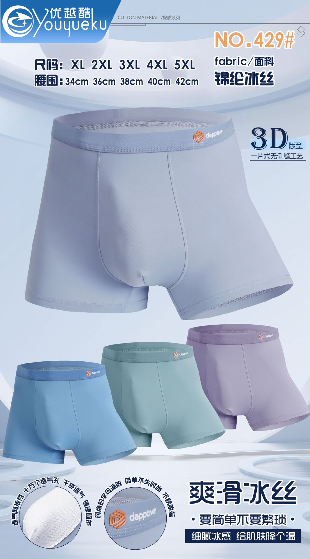 슈페리어 쿨 429 남자 복서 바지 나일론 아이스 실크 빠른 건조 스트레치 가방 성인 비즈니스 바지 남성 속옷